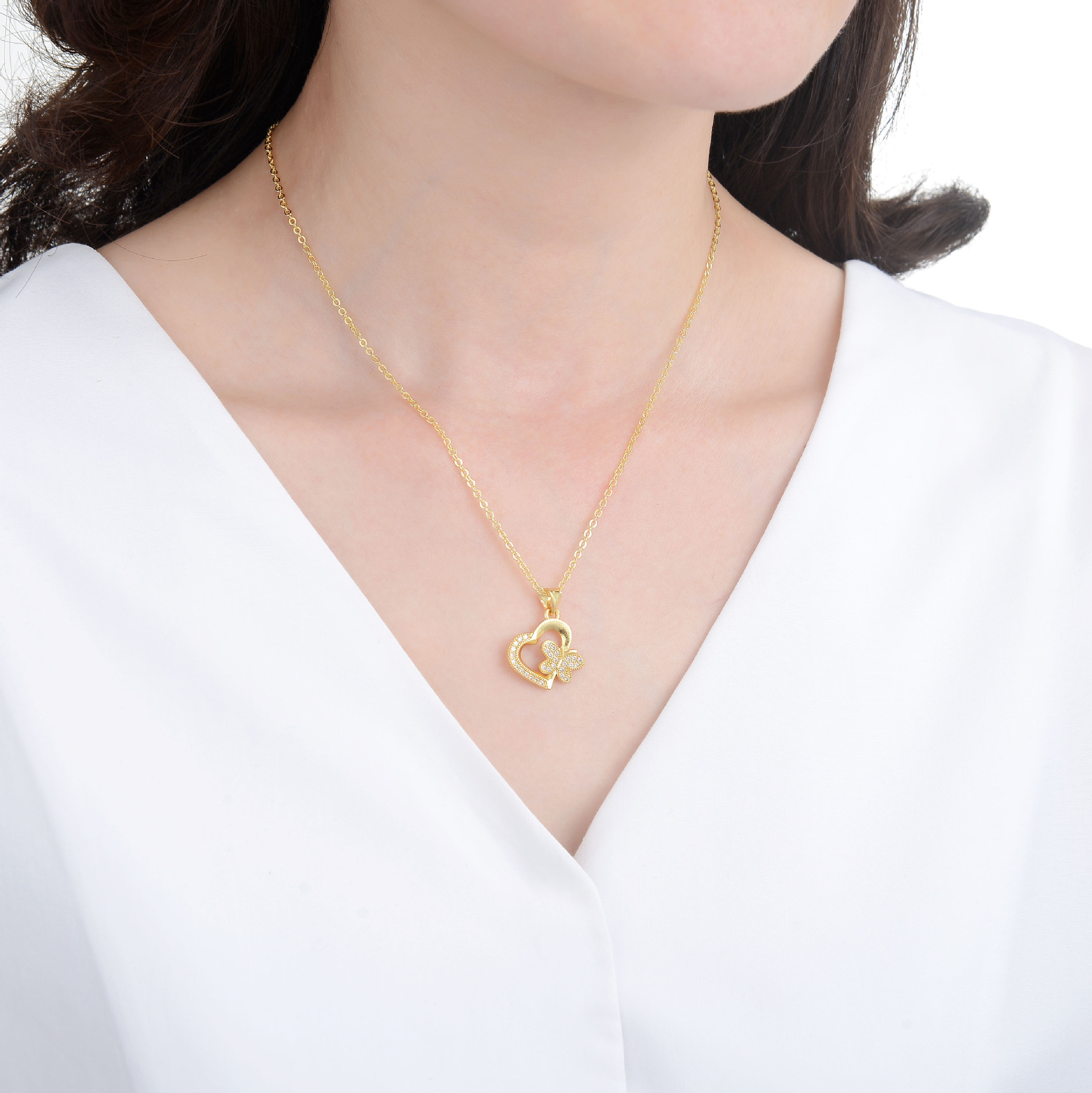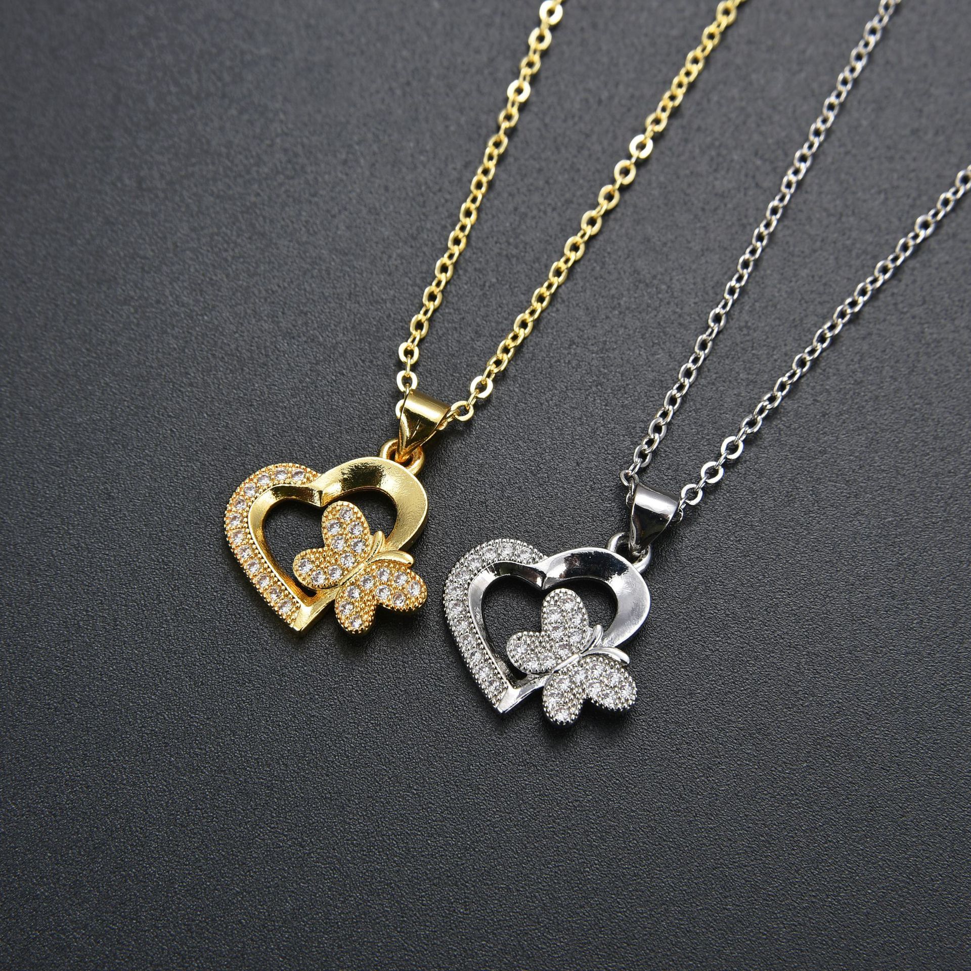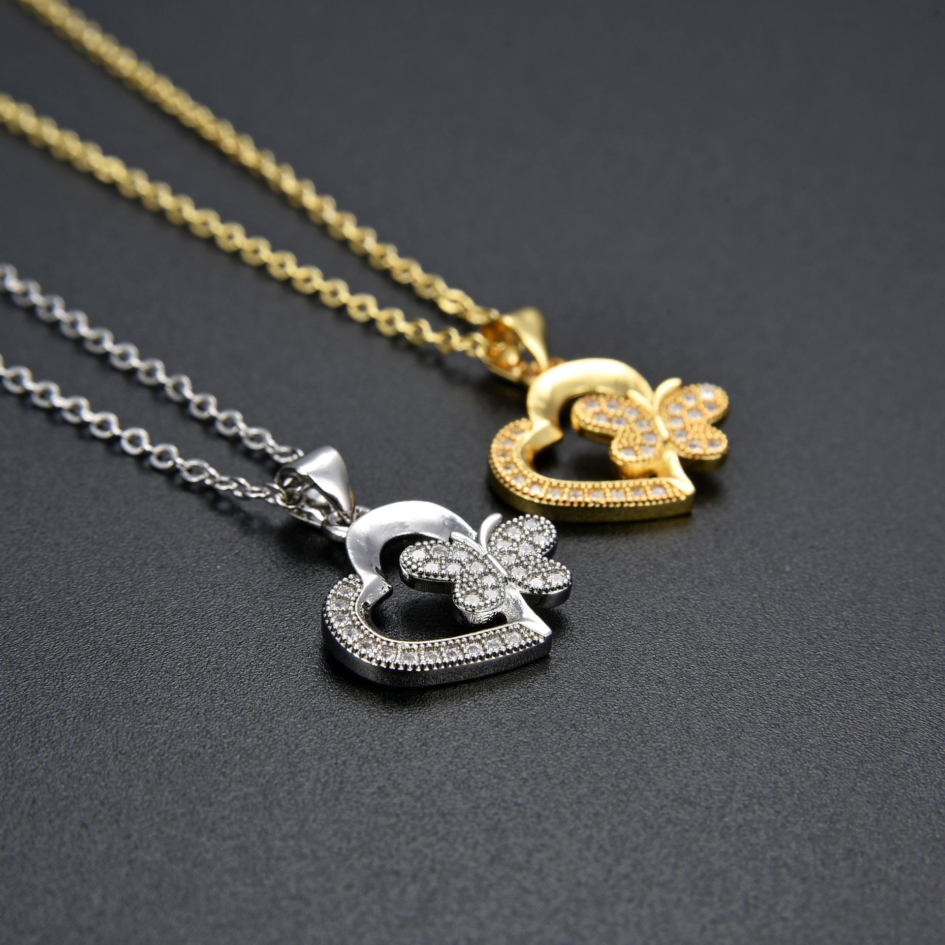 キュービックジルコンマイクロパヴェブラスネックレス, 銅, ハート形, 純正ゴールド, 楕円形の鎖 & マイクロパヴェジルコニア & 女性用, 鉛、カドミウムフリー, 40cm, 長さ:約 15.5 インチ, 売り手 ストランド