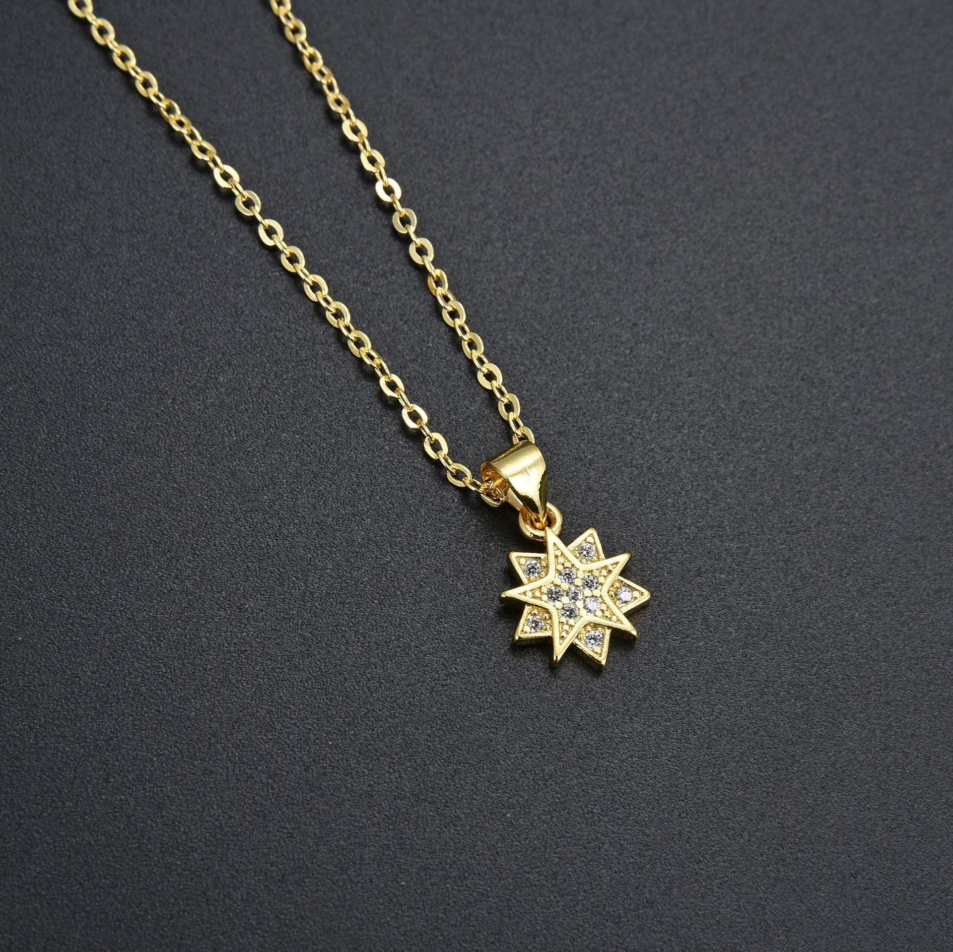 キュービックジルコンマイクロパヴェブラスネックレス, 銅, 星, ゴールドメッキ, マイクロパヴェジルコニア & 女性用, ニッケル、鉛、カドミウムフリー, 15mm,11mm, 長さ:20 インチ, 売り手 パソコン