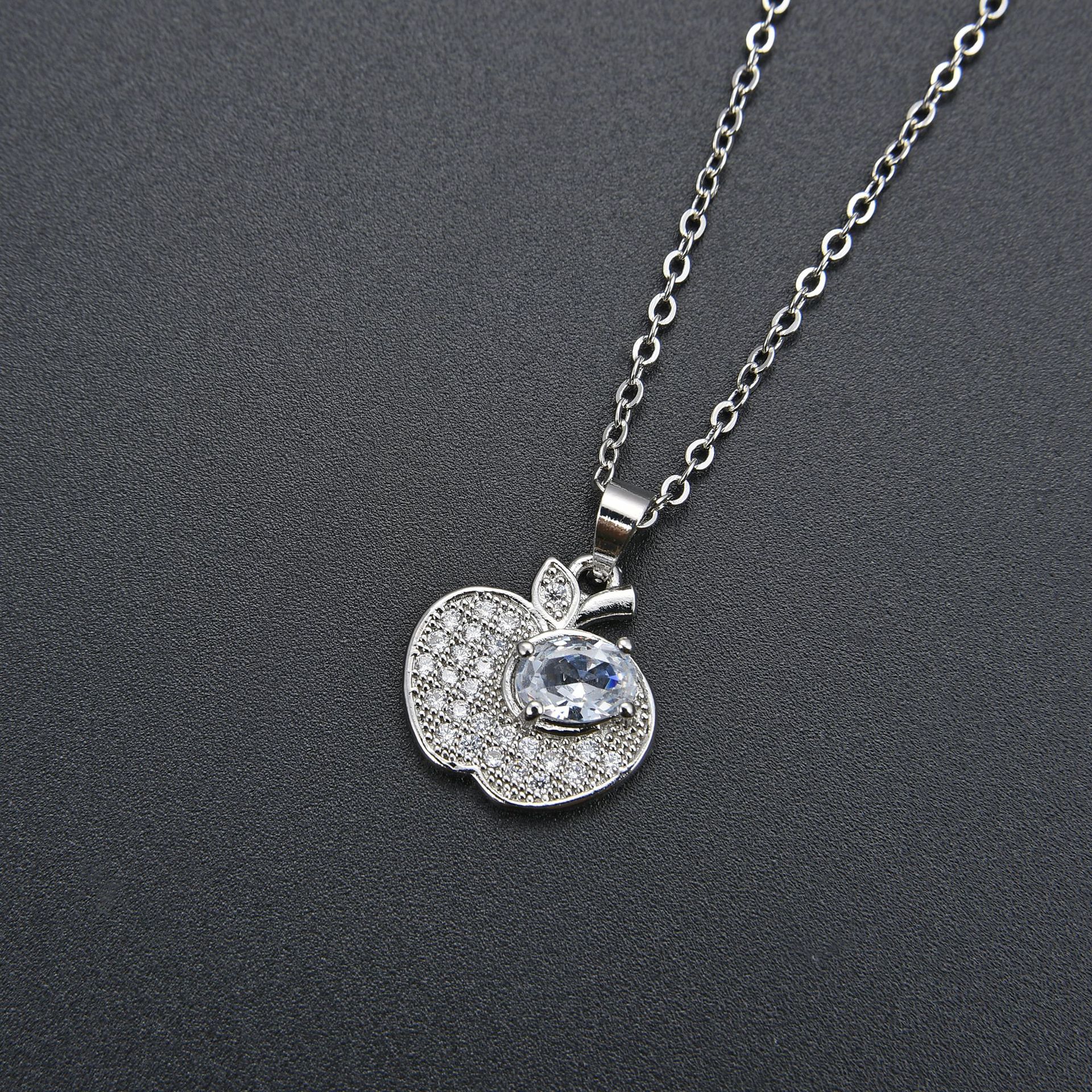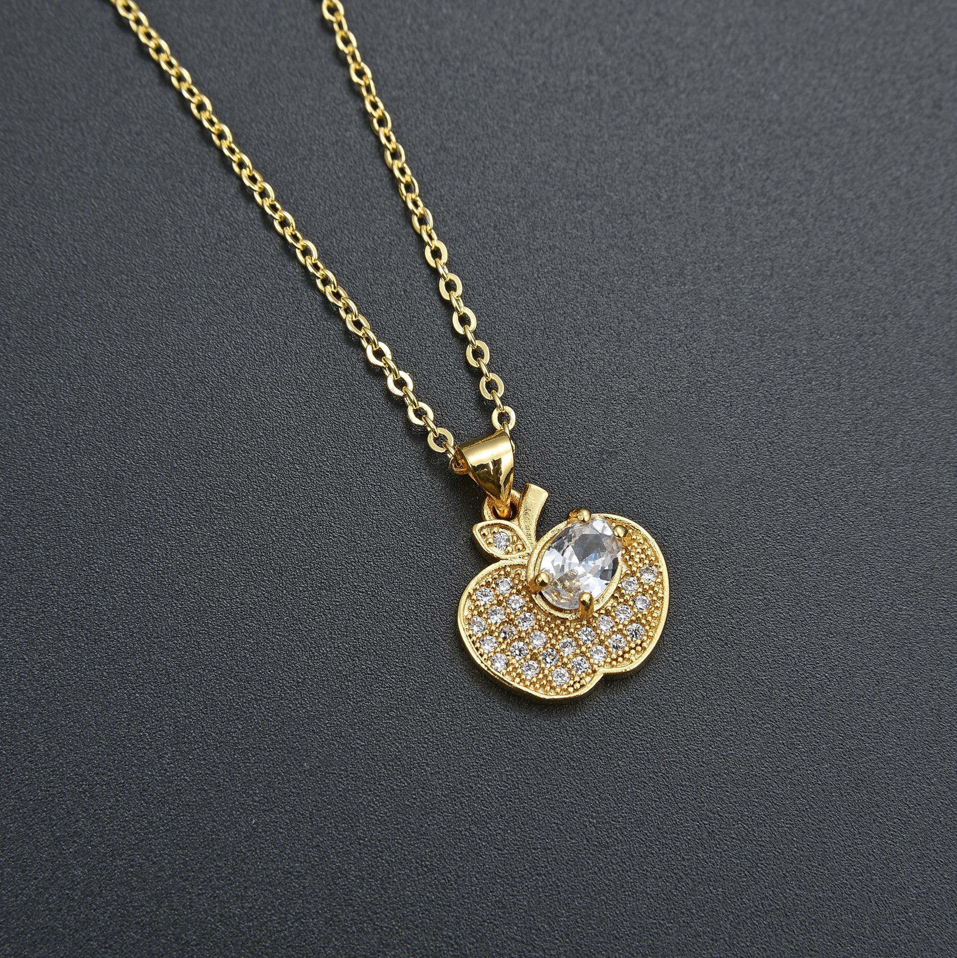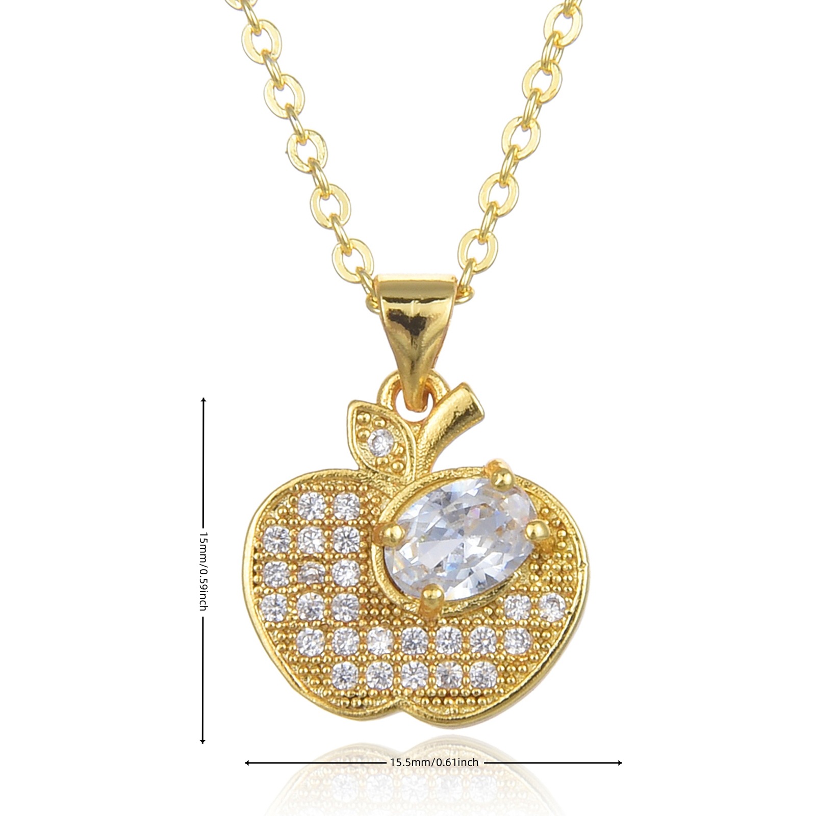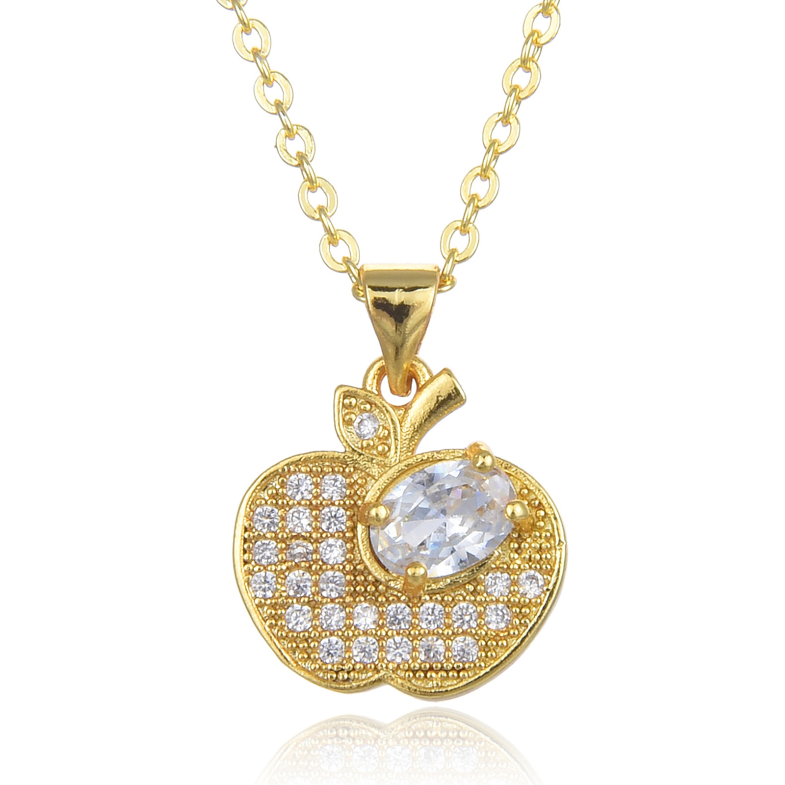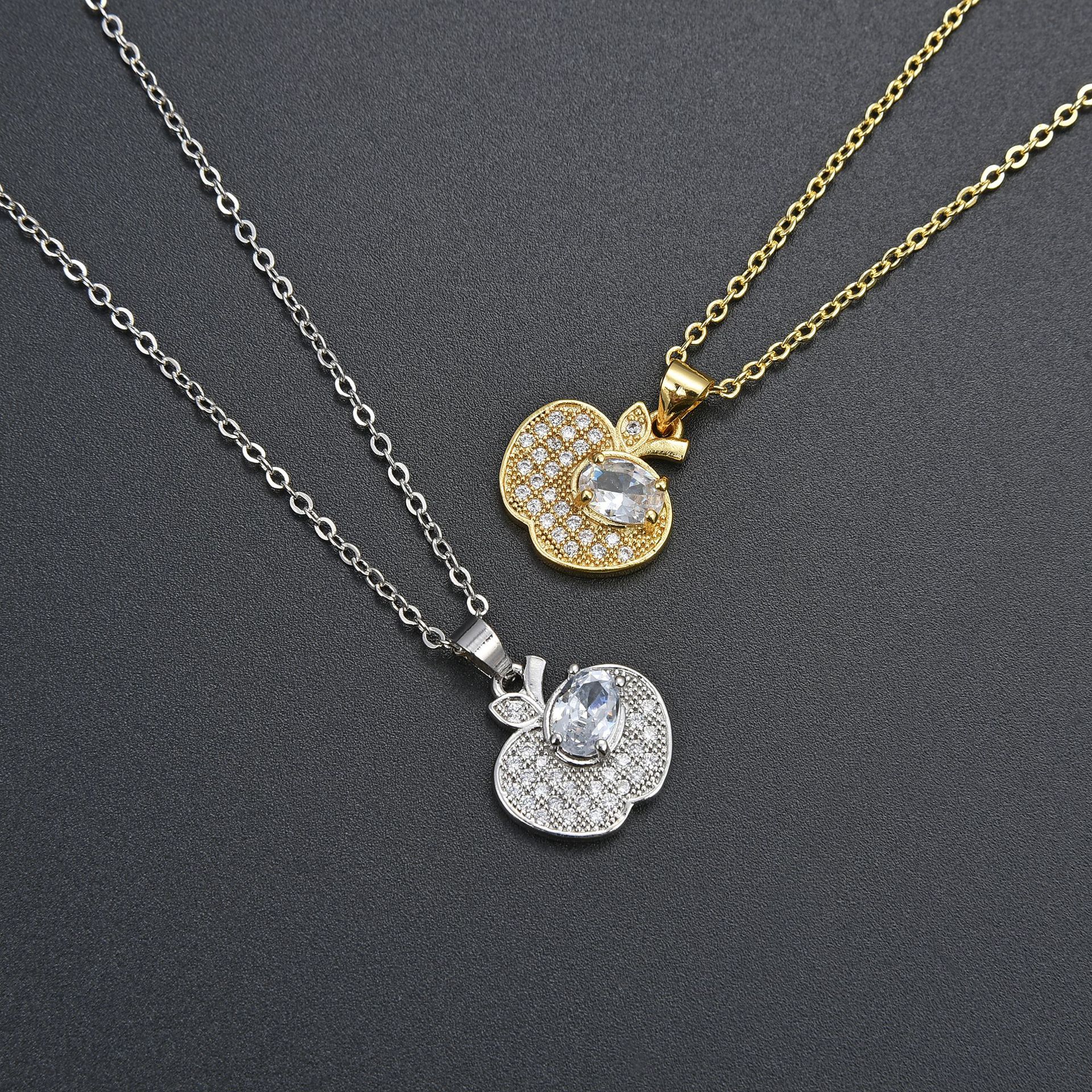 キュービックジルコンマイクロパヴェブラスネックレス, 銅, とともに 5cm エクステンダチェーン, アップル, ファッションジュエリー & マイクロパヴェジルコニア & 女性用, 無色, 長さ:45 センチ, 売り手 パソコン