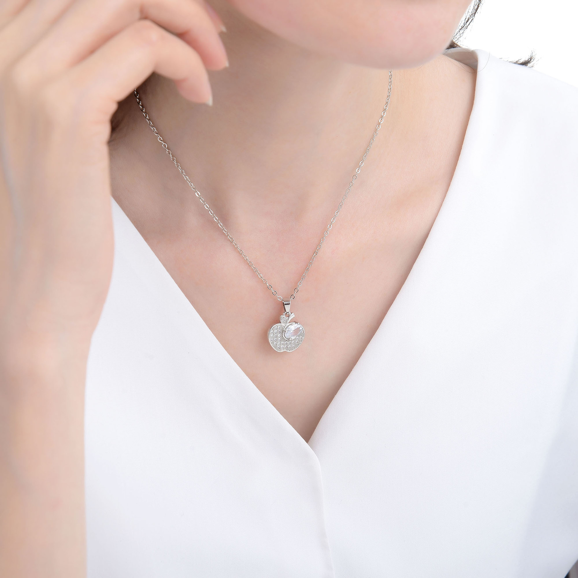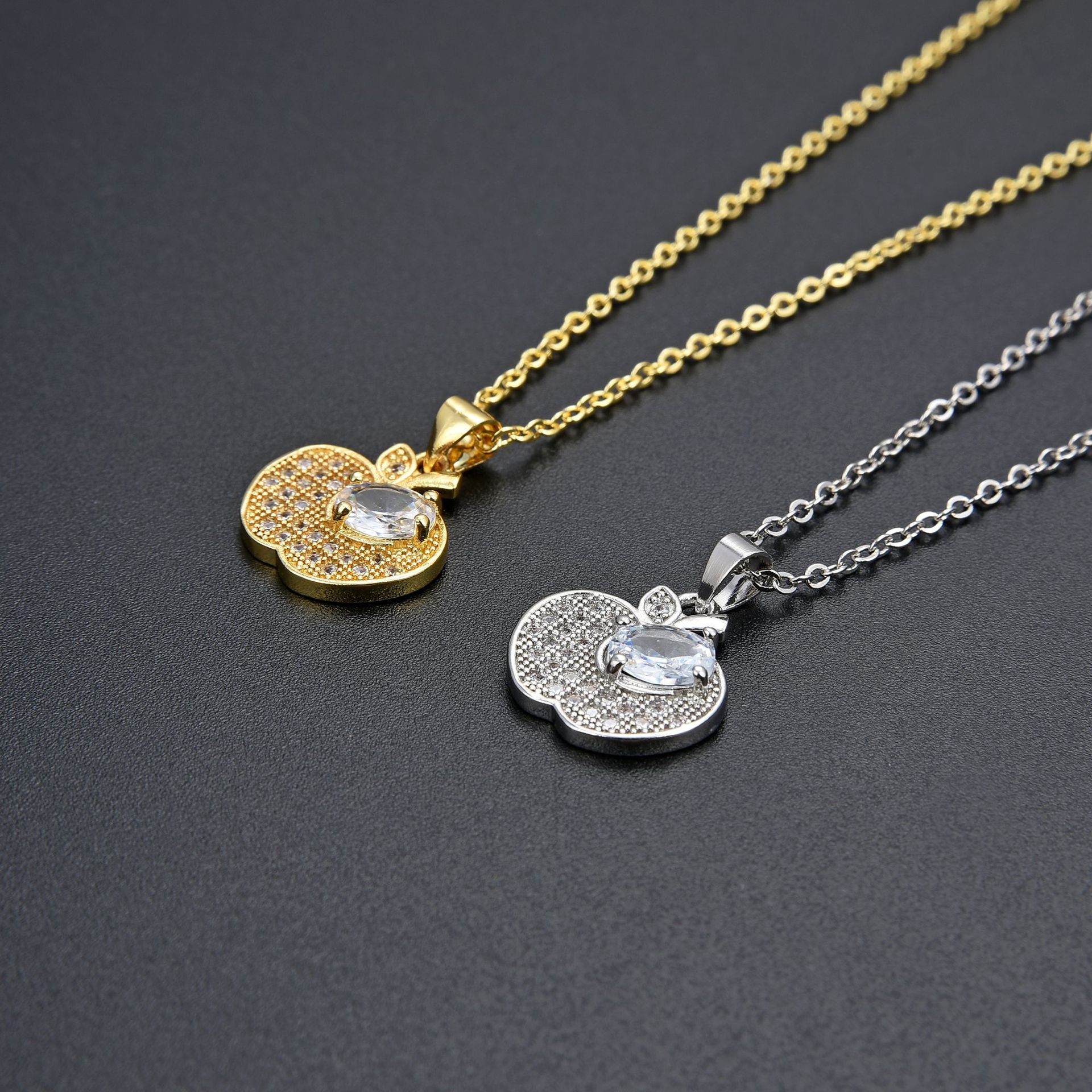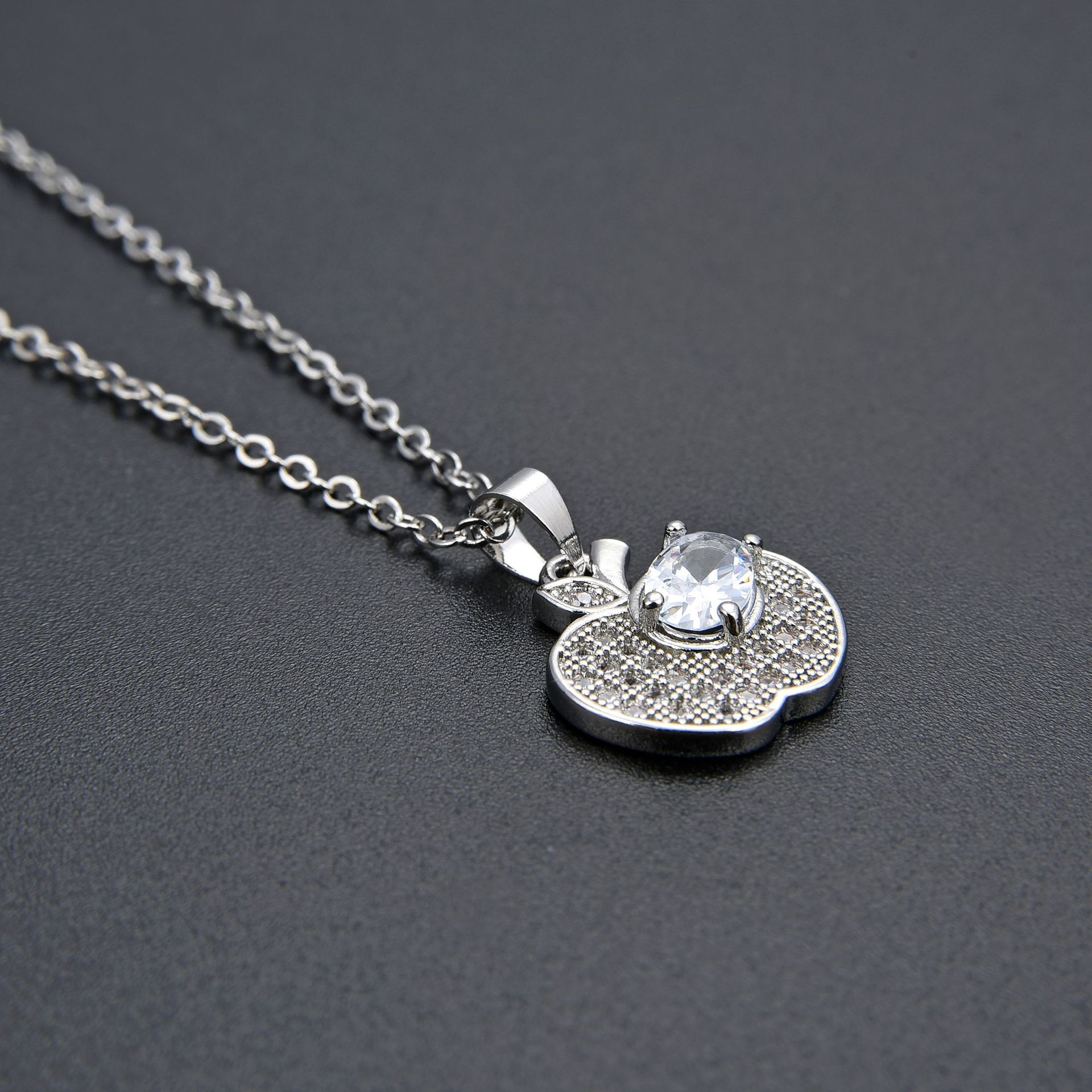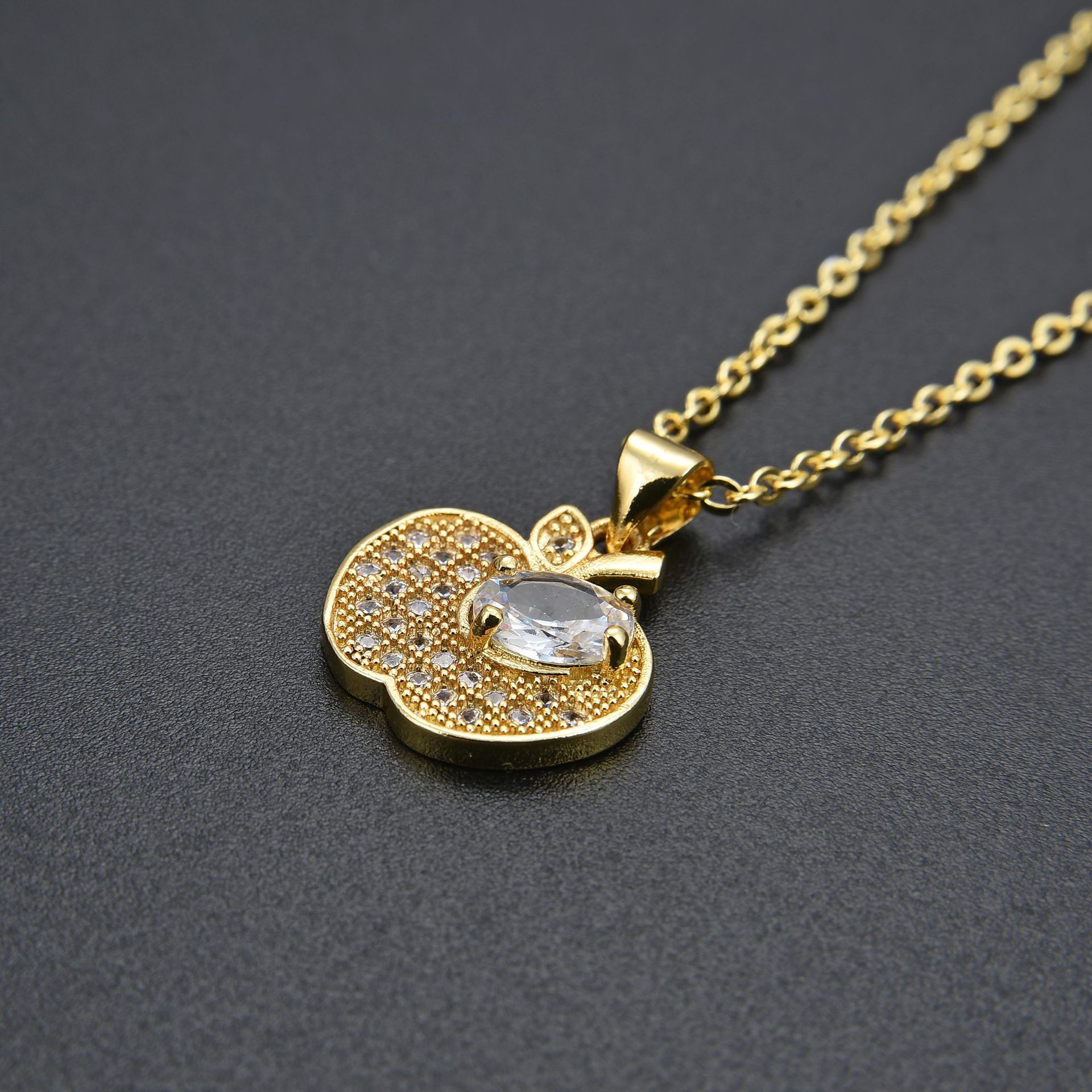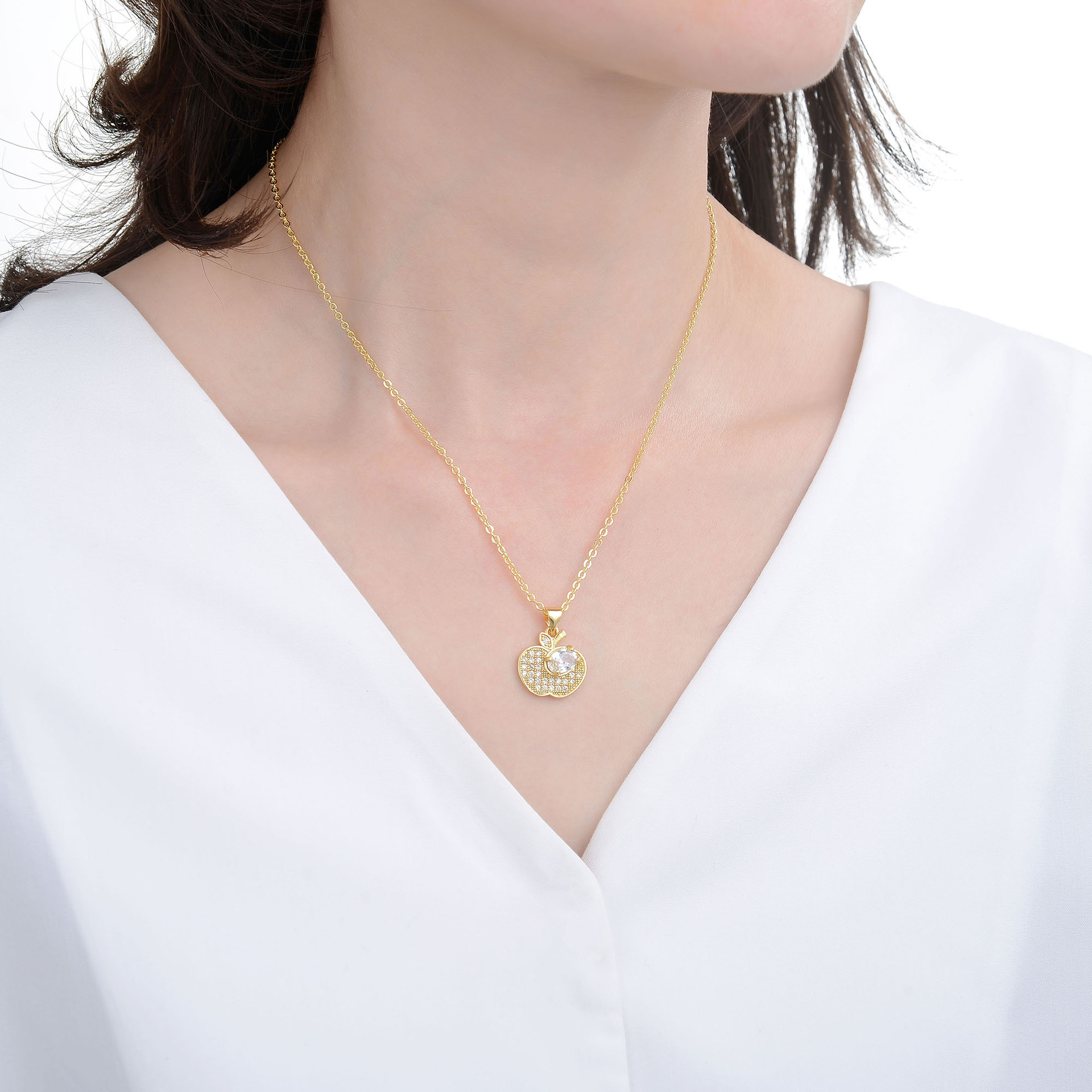 キュービックジルコンマイクロパヴェブラスネックレス, 銅, とともに 5cm エクステンダチェーン, アップル, ファッションジュエリー & マイクロパヴェジルコニア & 女性用, 無色, 長さ:45 センチ, 売り手 パソコン