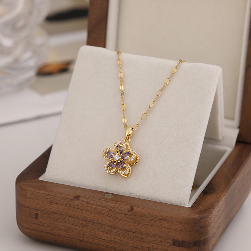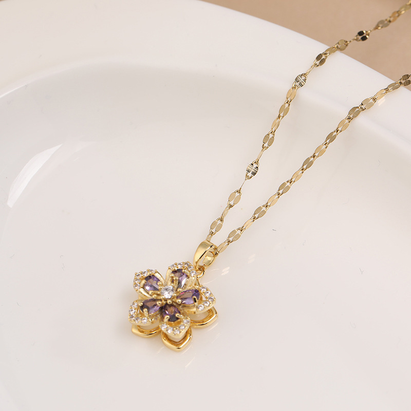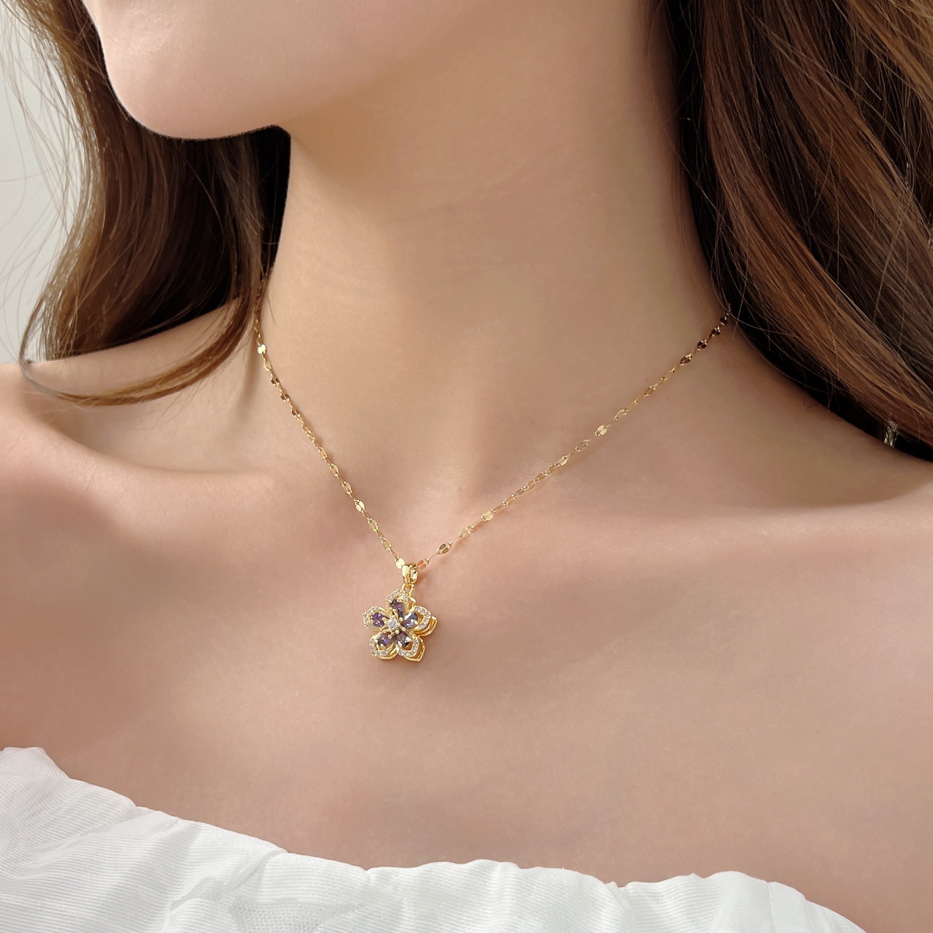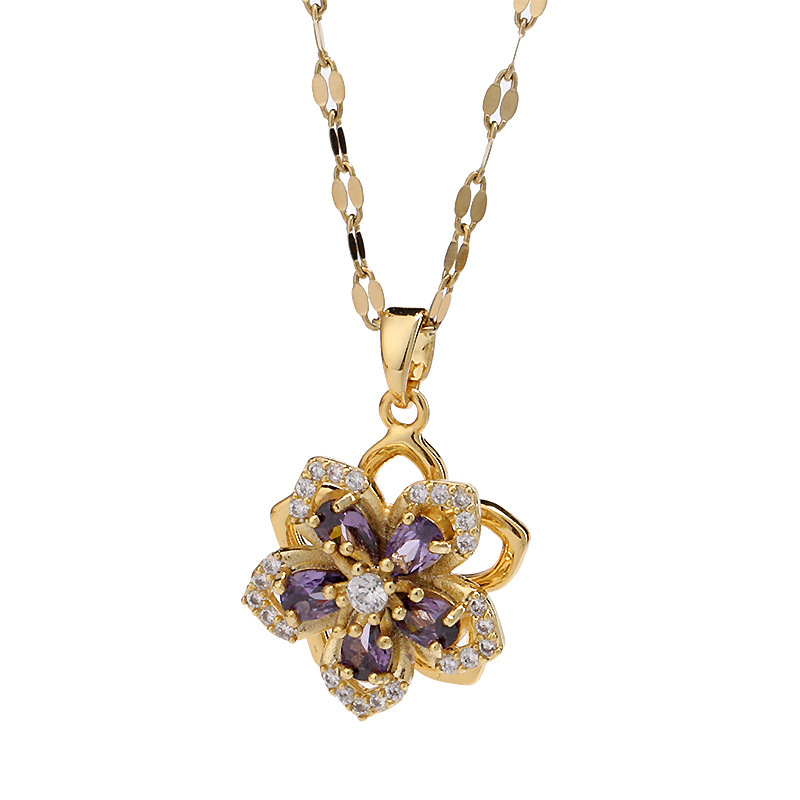 キュービックジルコンマイクロパヴェブラスネックレス, 銅, とともに キュービックジルコニア, 花形, メッキ, ダブルレイヤー & 回転式 & 女性用 & ライン石のある, 金色, Pendant :13x13mm, 長さ:45 センチ, 売り手 パソコン