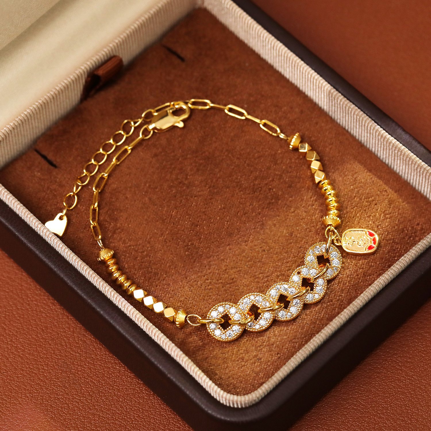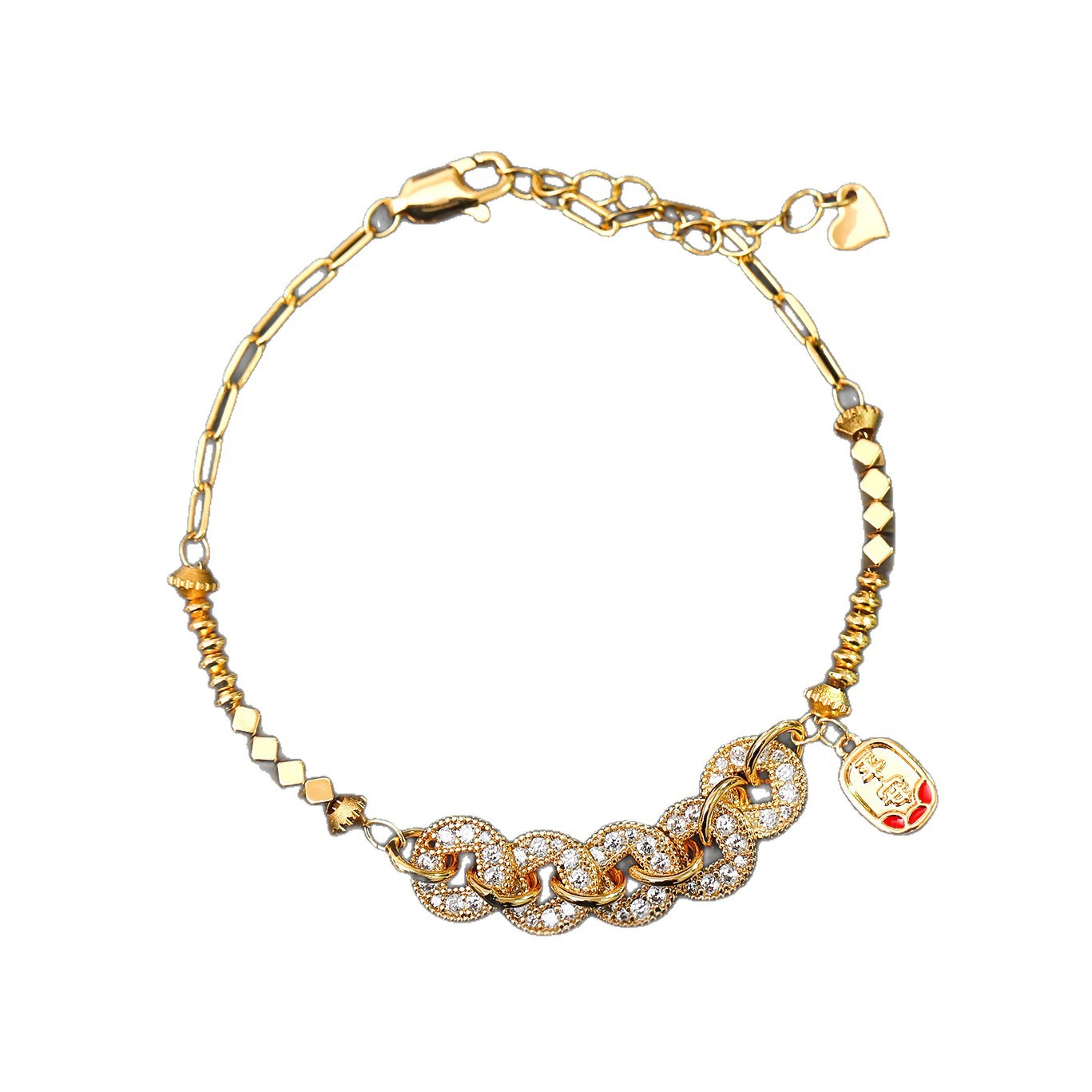キュービックジルコニアマイクロパヴェブラスブレスレット, 銅, ゴールドメッキ, ユニセックス & 調節の可能性がある & 異なるスタイルを選択 & マイクロパヴェジルコニア, 無色, 長さ:約 6.3 インチ, 売り手 ストランド
