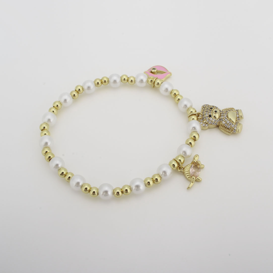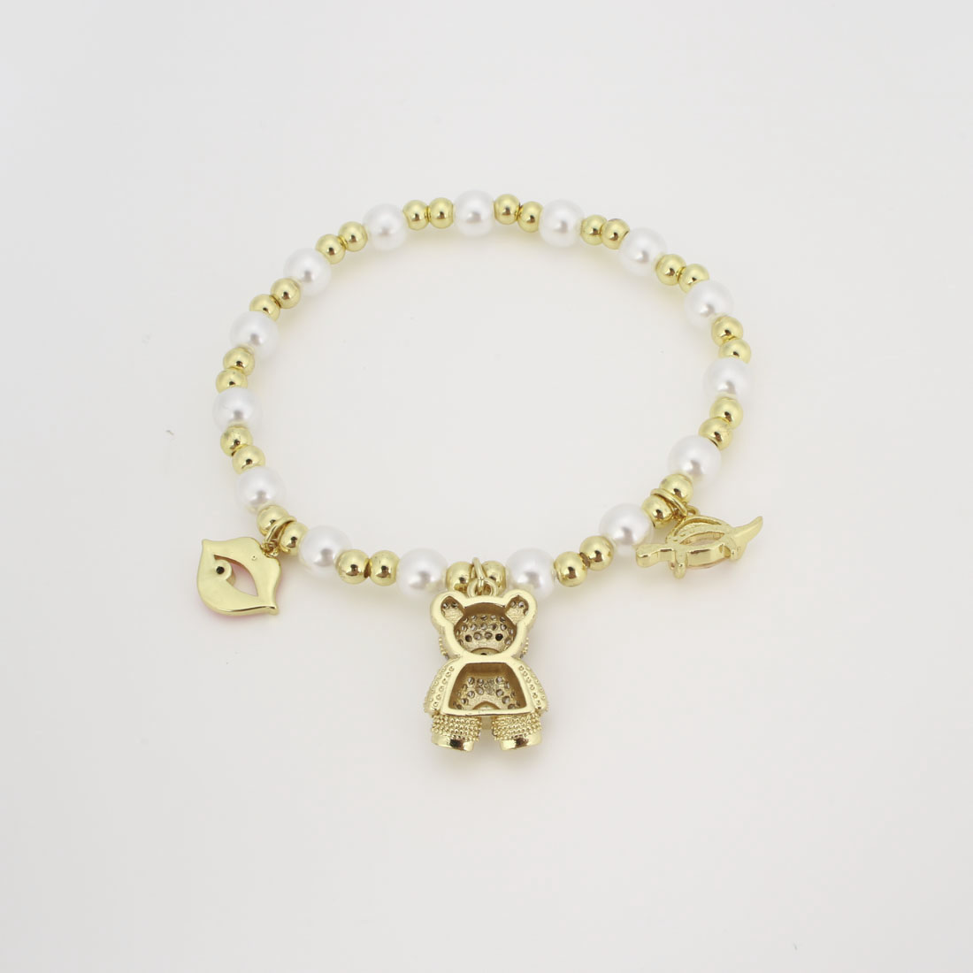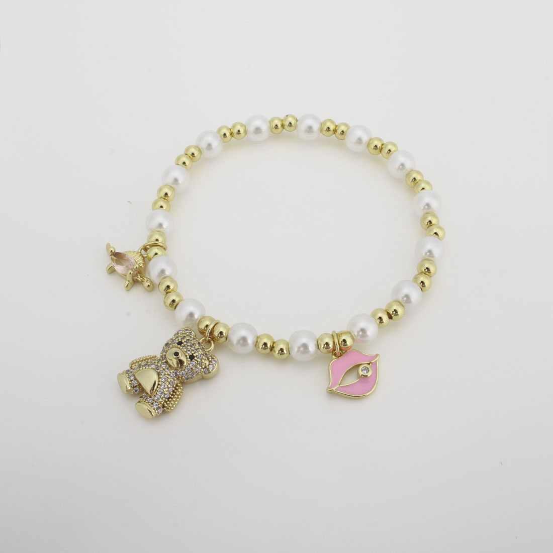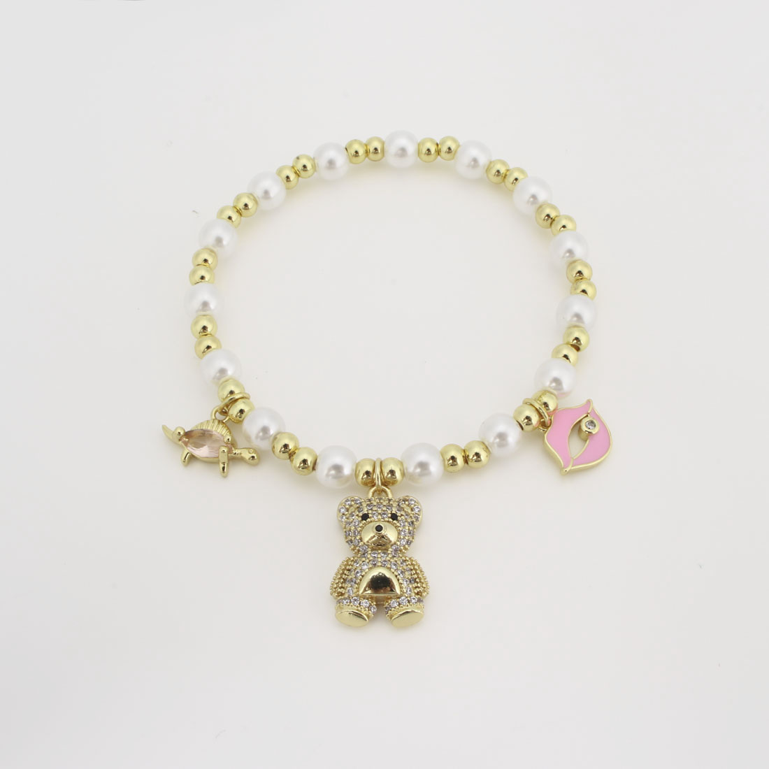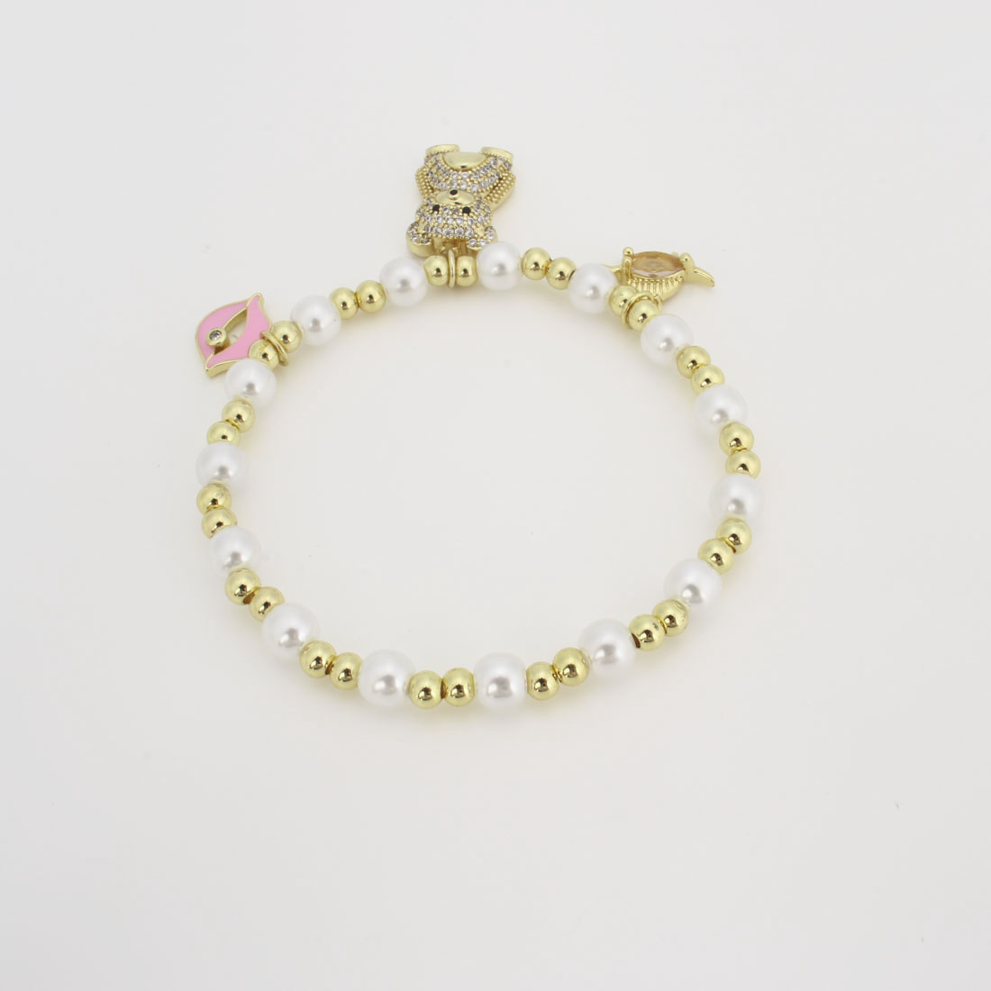 キュービックジルコニアマイクロパヴェブラスブレスレット, 銅, とともに プラスチック製パール, マイクロパヴェジルコニア & 女性用 & エナメル, 長さ:20 センチ, 売り手 パソコン