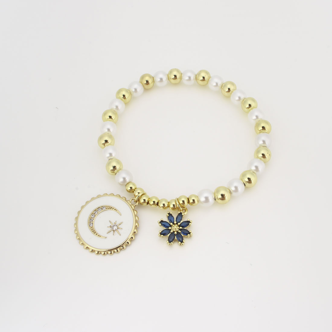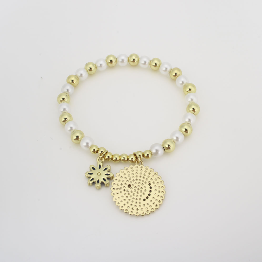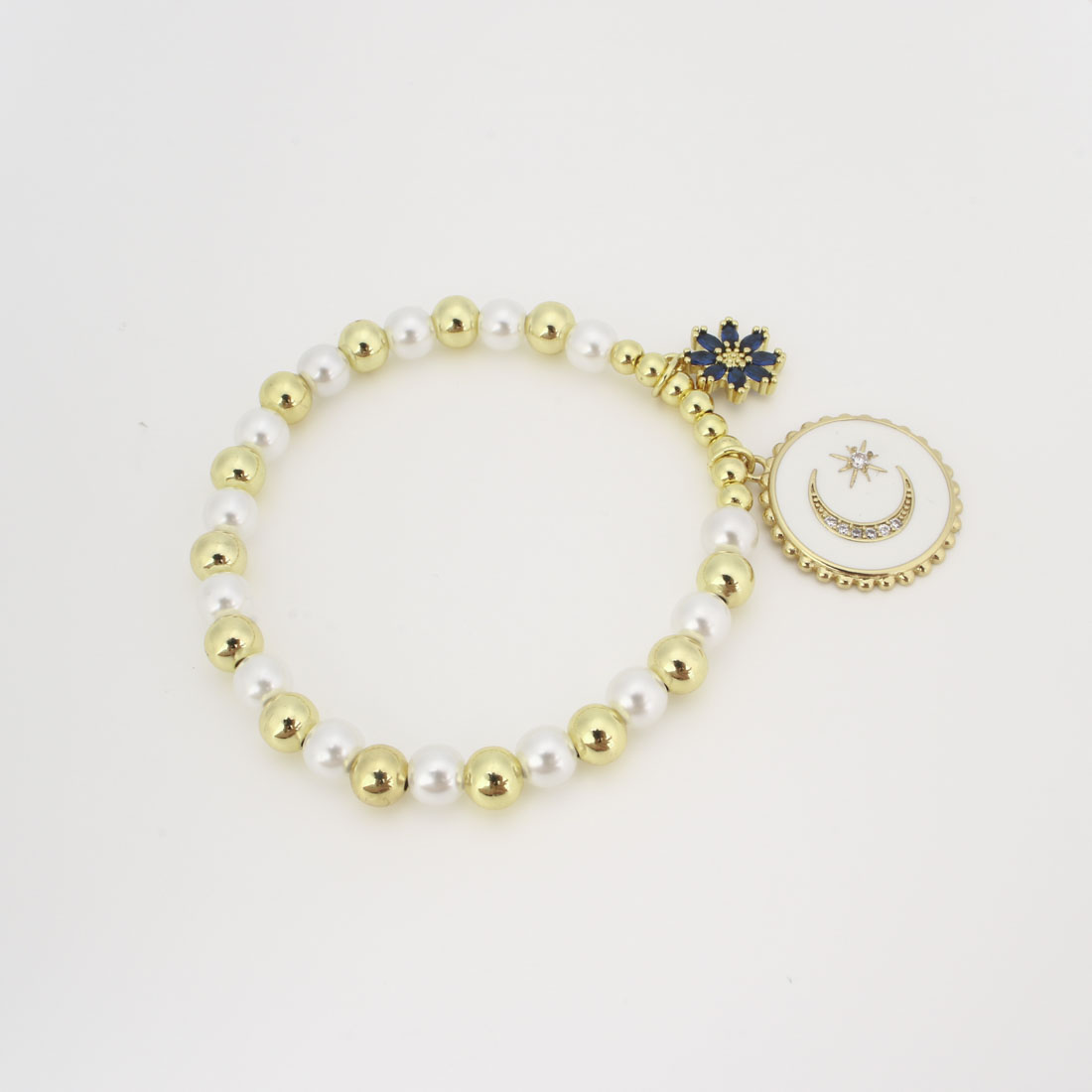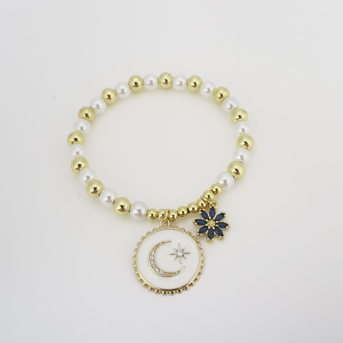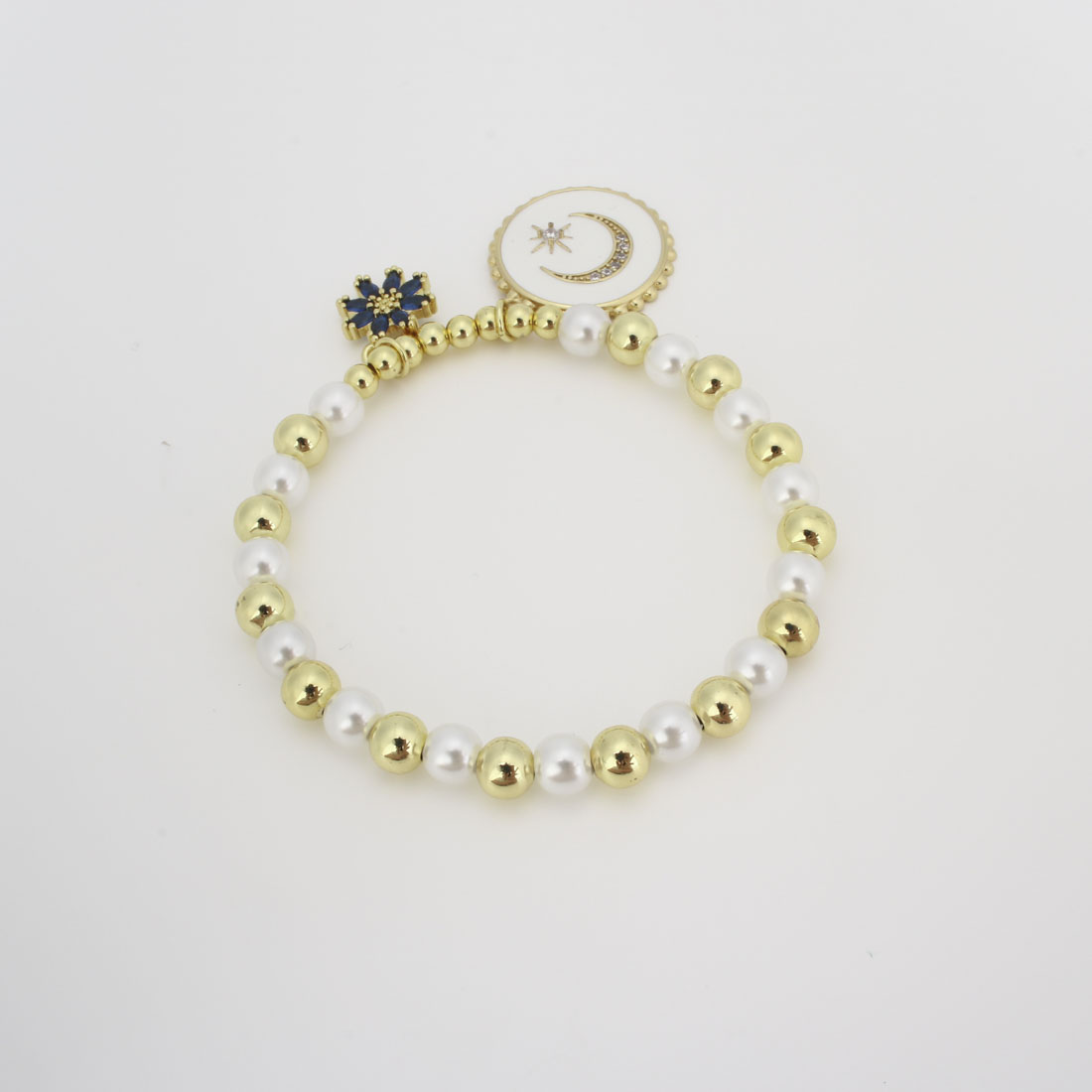 キュービックジルコニアマイクロパヴェブラスブレスレット, 銅, とともに プラスチック製パール, マイクロパヴェジルコニア & 女性用 & エナメル, 長さ:22 センチ, 売り手 パソコン