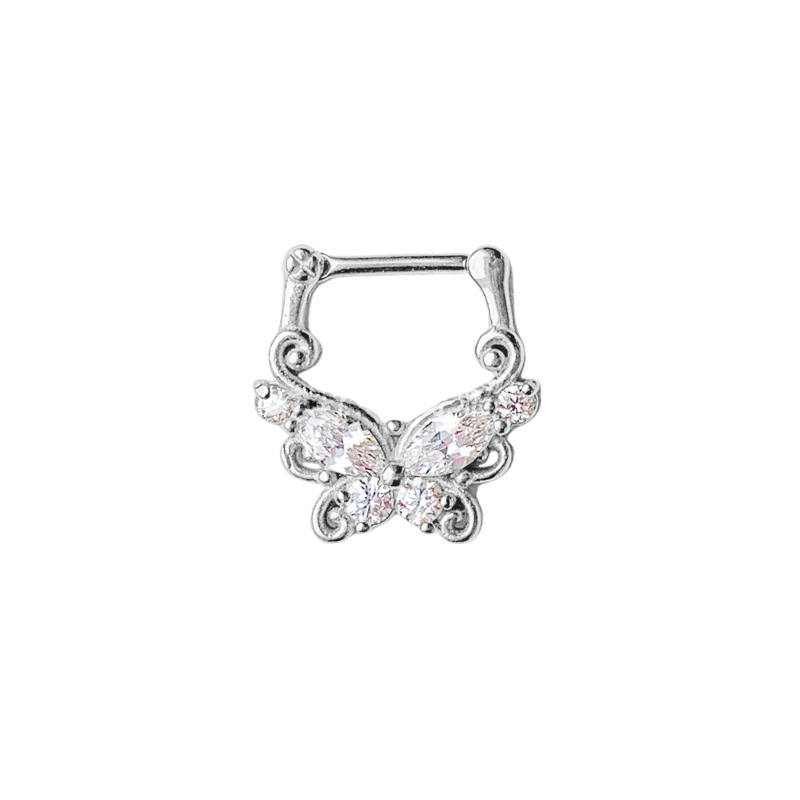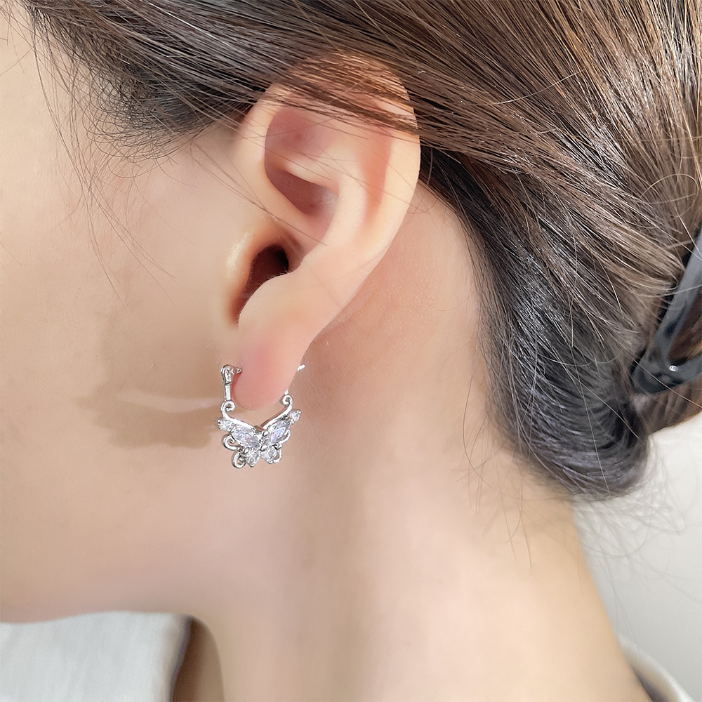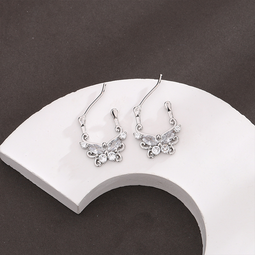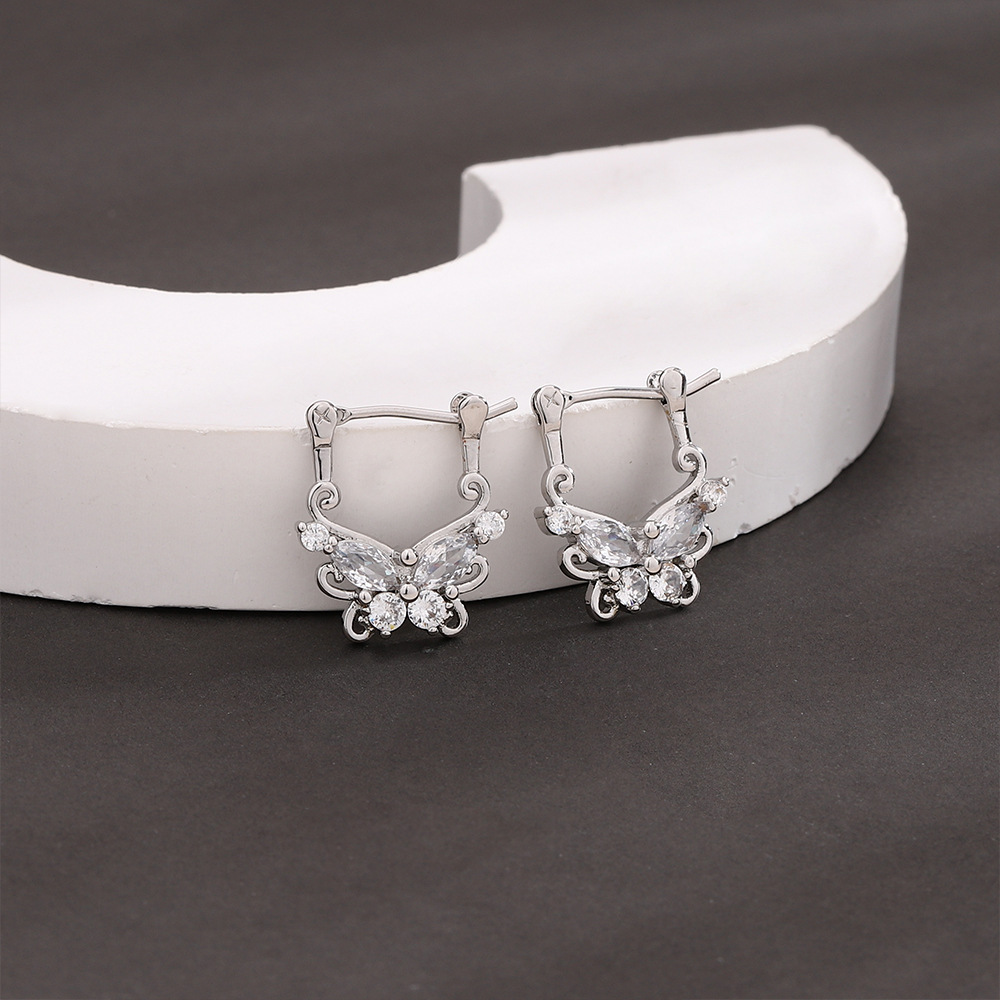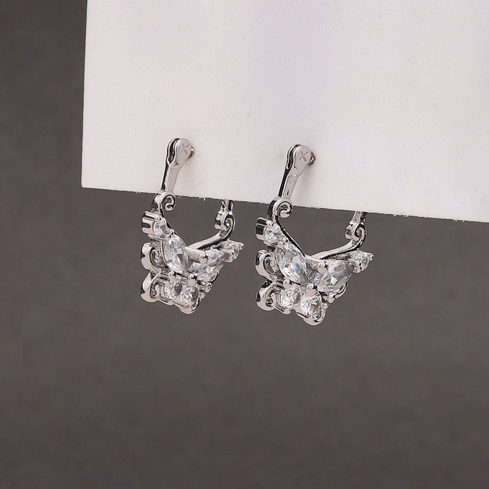 キュービックジルコニアマイクロパヴェブラスイヤリング, 銅, 蝶, メッキ, マイクロパヴェジルコニア & 女性用, プラチナカラー, 15x15mm, 売り手 パソコン