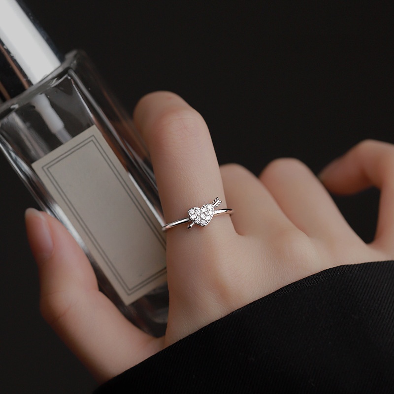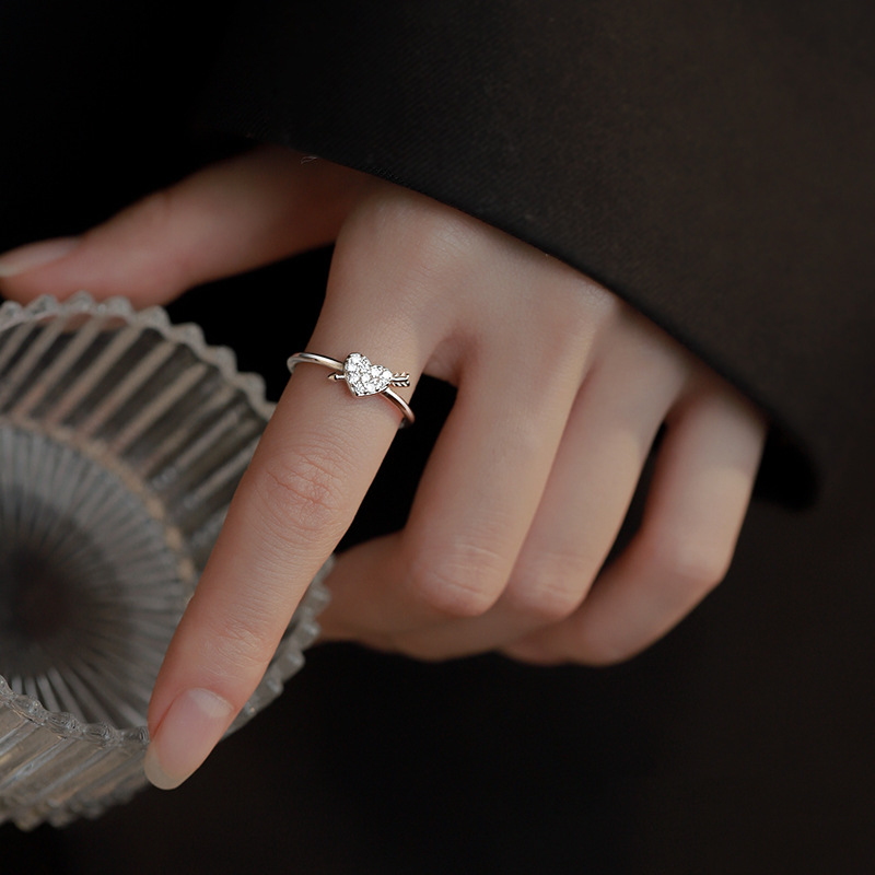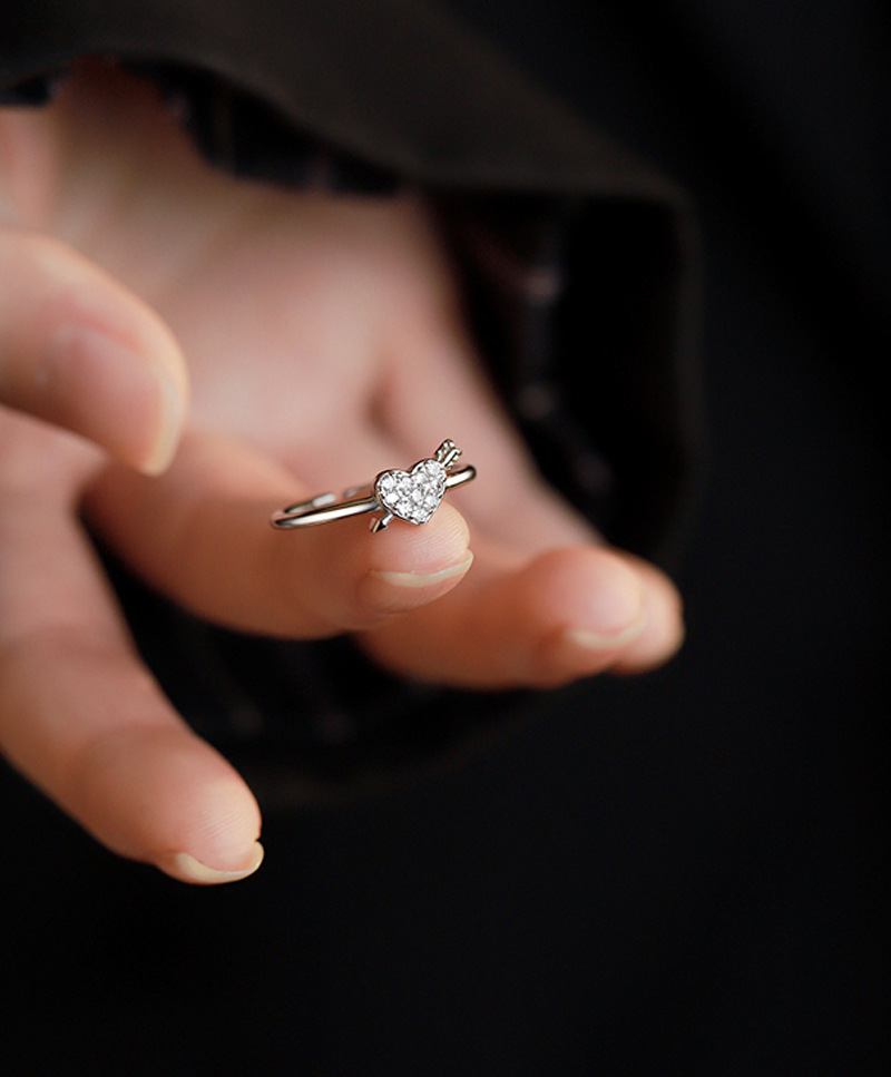 キュービックジルコニアマイクロパヴェブラスフィンガーリング, 銅, ハート形, メッキ, マイクロパヴェジルコニア & 女性用, プラチナカラー, 売り手 パソコン