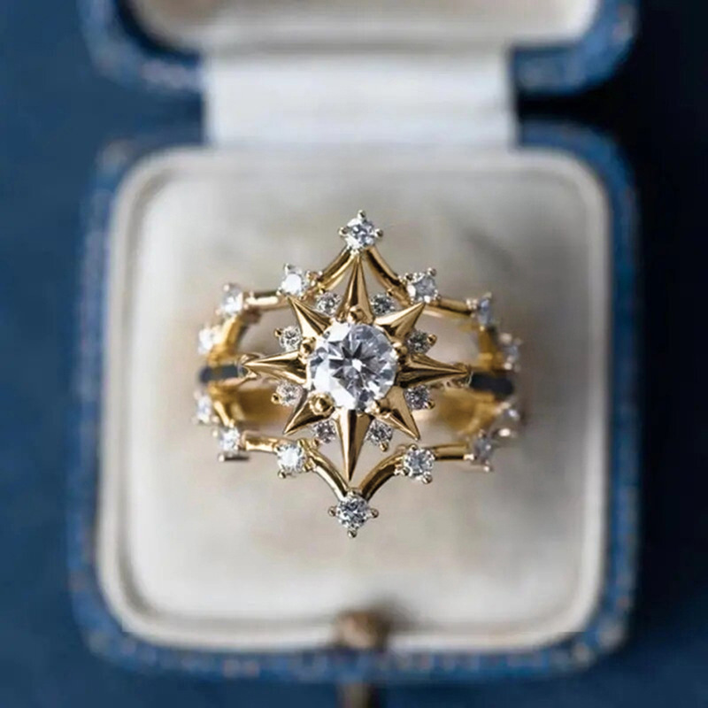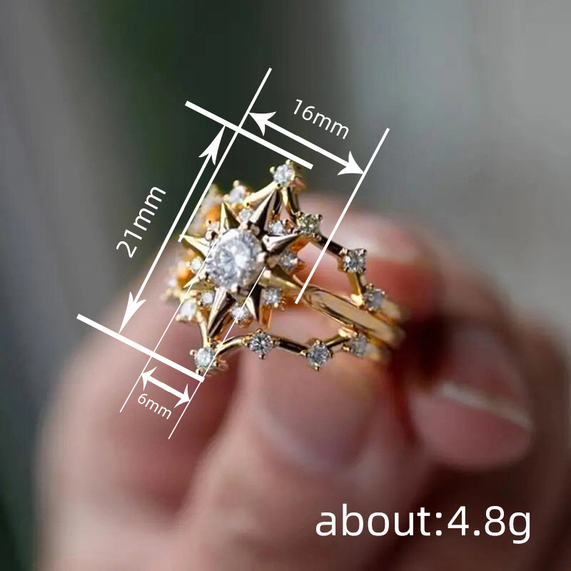 キュービックジルコニアマイクロパヴェブラスフィンガーリング, 銅, 星, メッキ, マイクロパヴェジルコニア, 無色, 13mm, サイズ:6.5, 売り手 パソコン