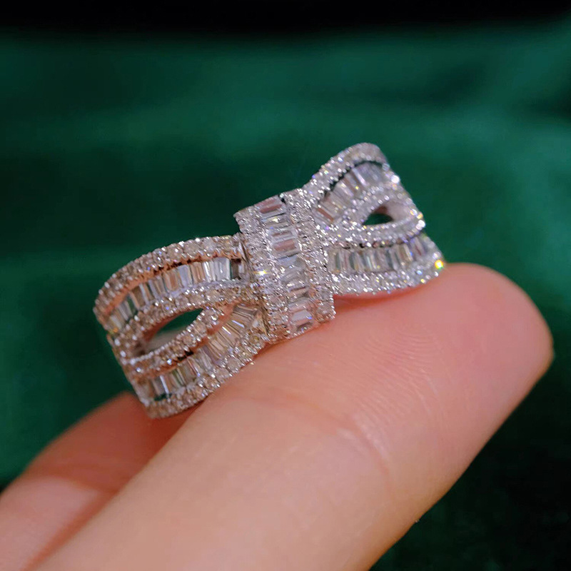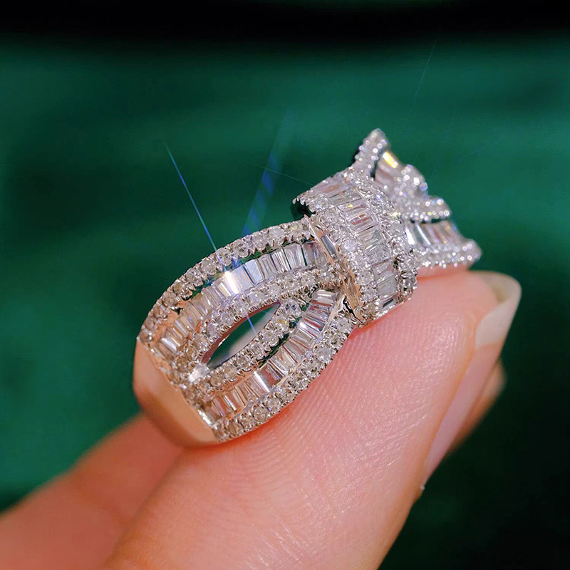 キュービックジルコニアマイクロパヴェブラスフィンガーリング, 銅合金, 幾何学パターン, プラチナカラーメッキ, マイクロパヴェジルコニア, 無色, 7*9mm, 売り手 パソコン