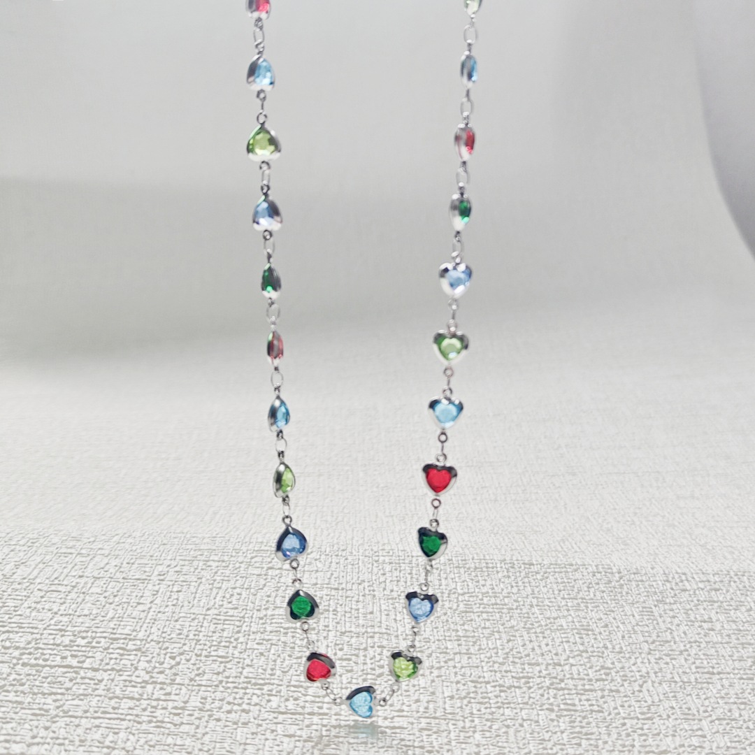 キュービックジルコニアステンレス鋼のネックレス, ステンレス, 楕円形の鎖 & キュービックジルコニアのある, オリジナルカラー 1.5mm, 長さ:約 16 インチ, 売り手 ストランド