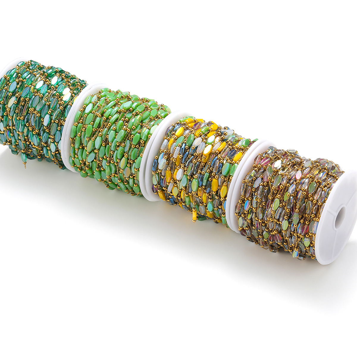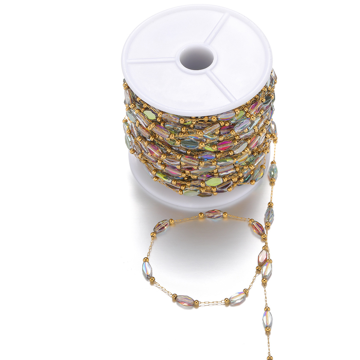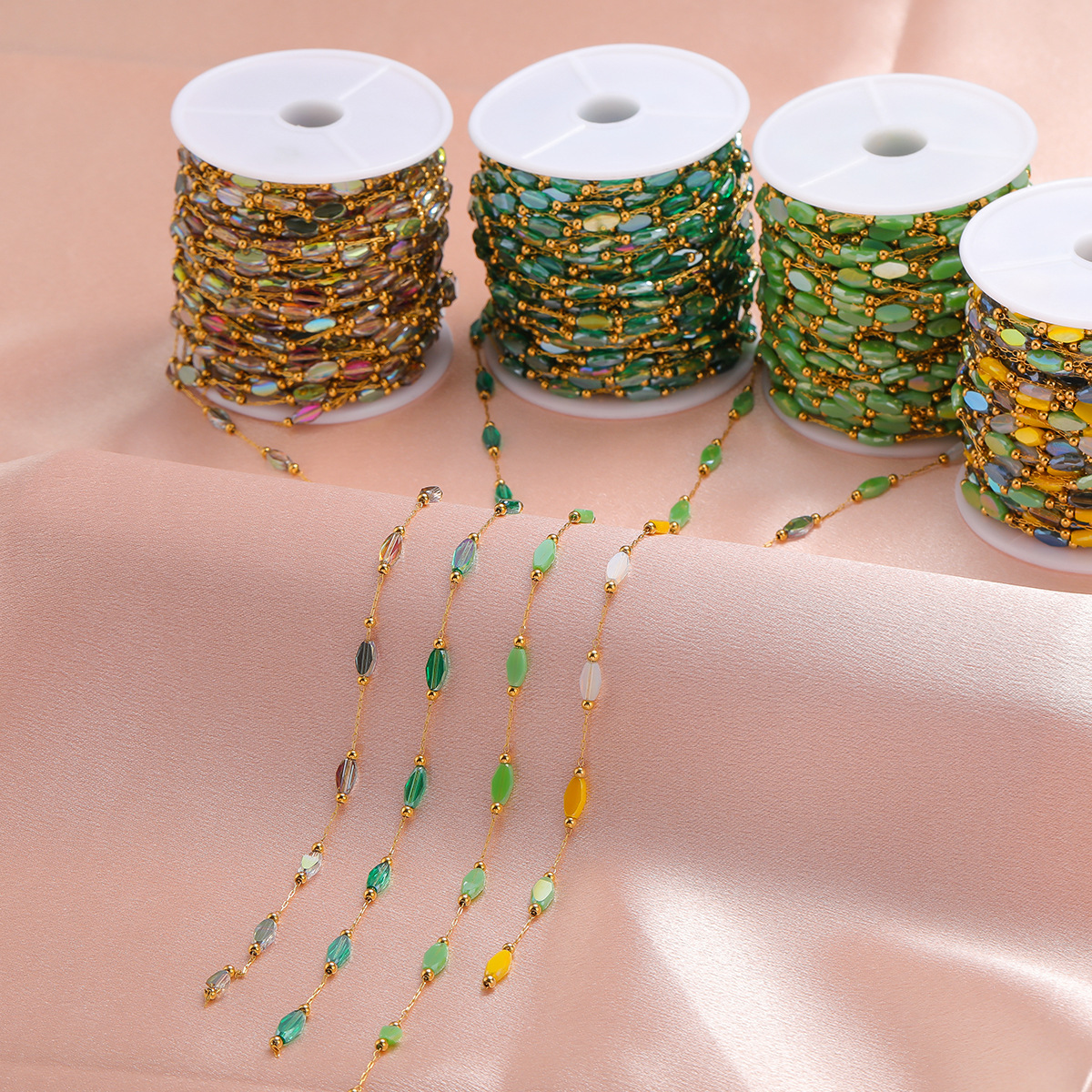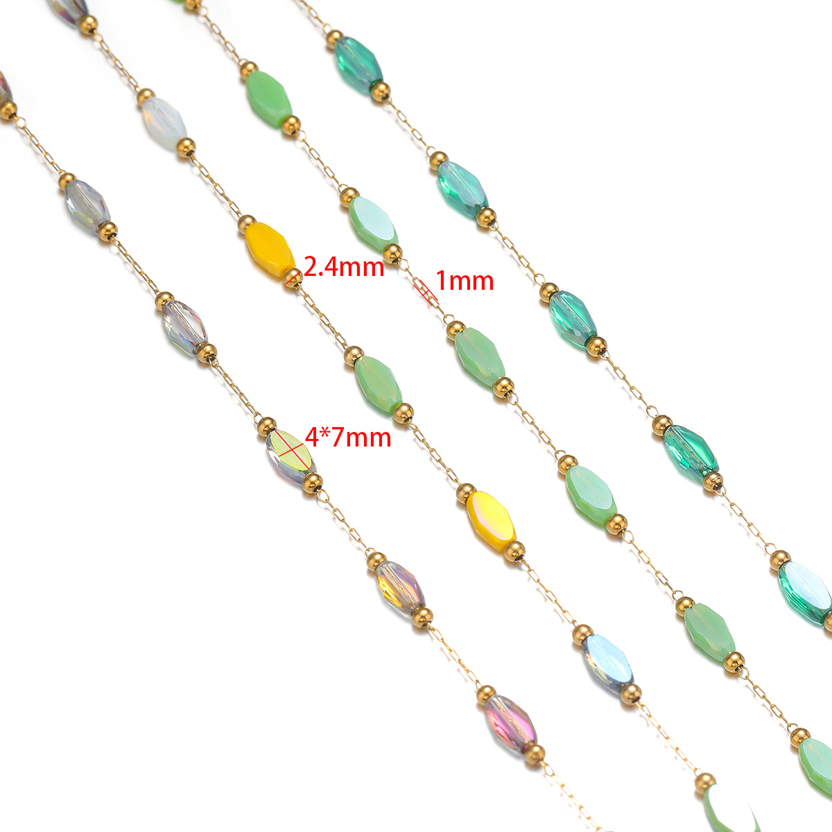 1mm gold chain wear 2.4mm beads 4*7mm color diamon