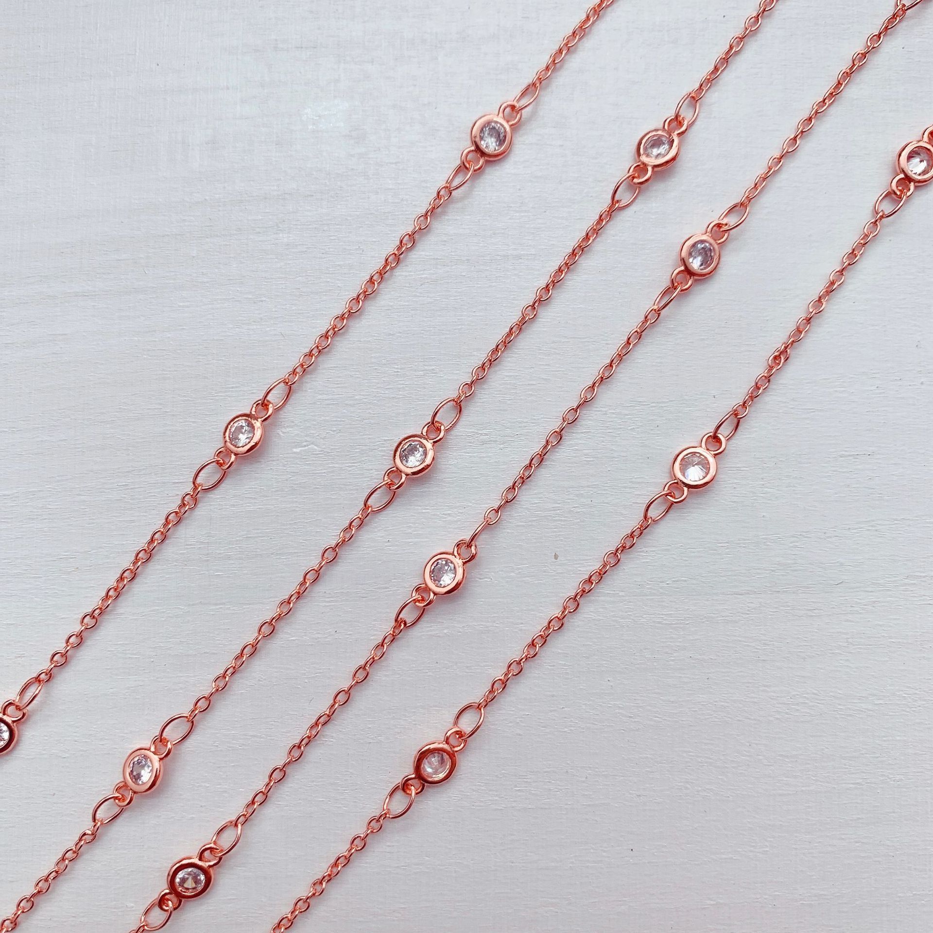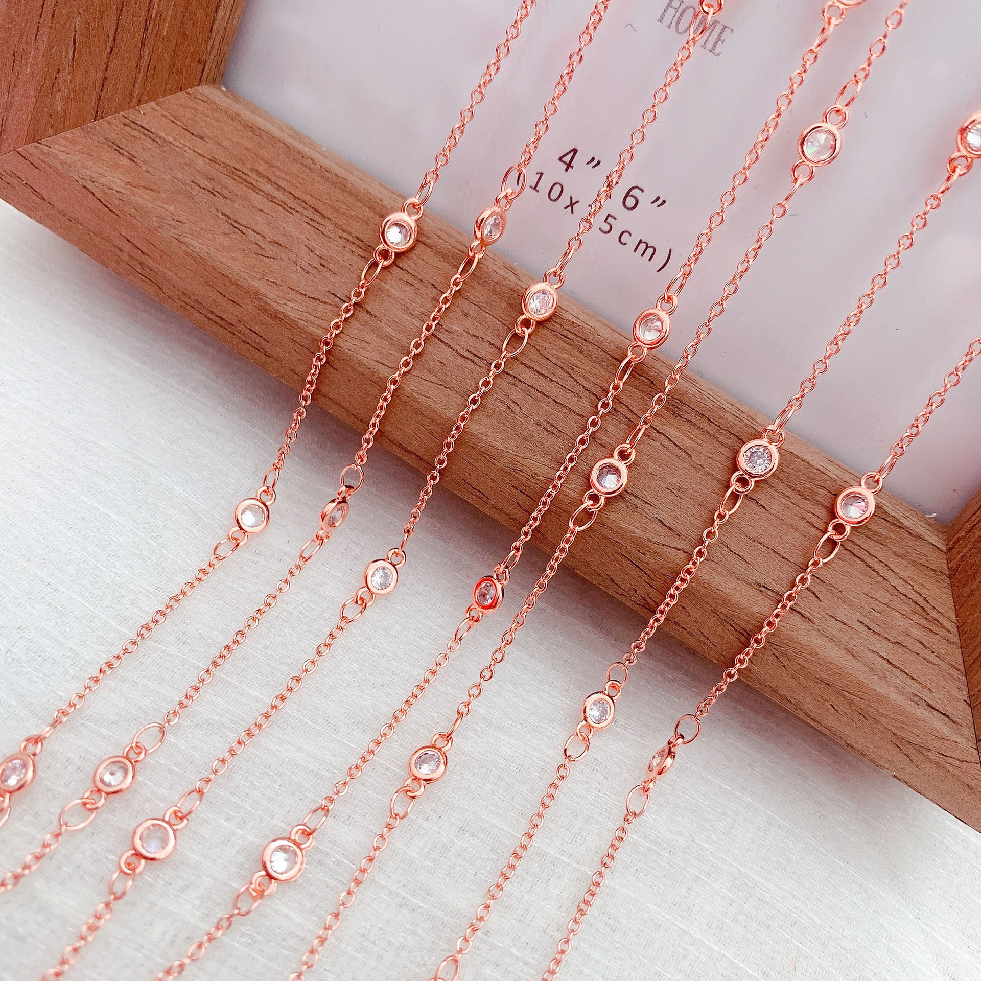 宝石用原石ビーズチェーン, 銅, とともに キュービックジルコニア, メッキ, DIY, 10M/バッグ, 売り手 バッグ