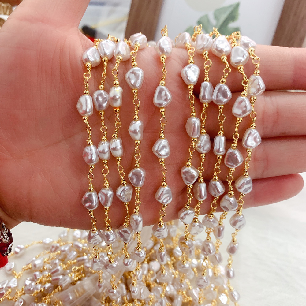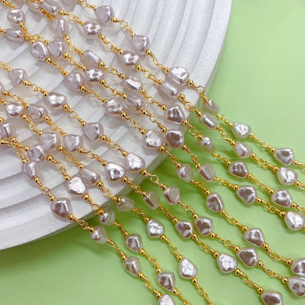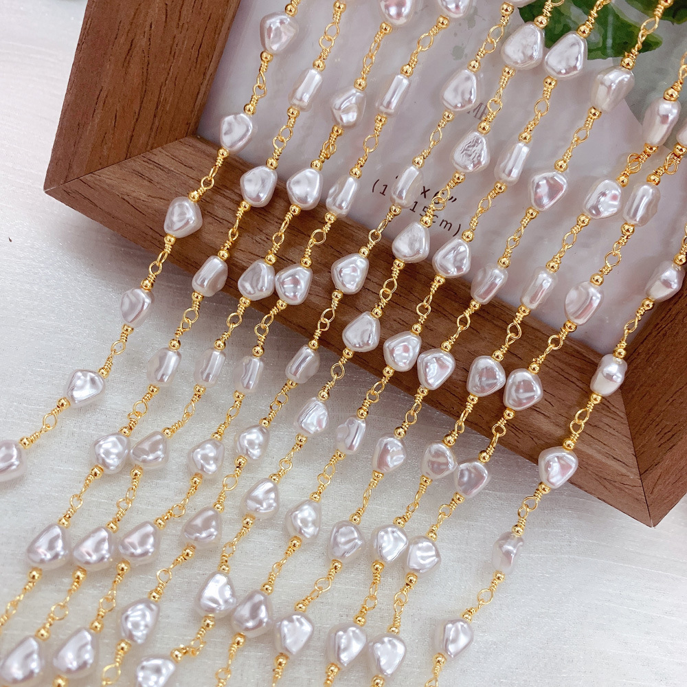 宝石用原石ビーズチェーン, 銅, とともに プラスチック製パール, ゴールドメッキ, DIY, 10M/バッグ, 売り手 バッグ