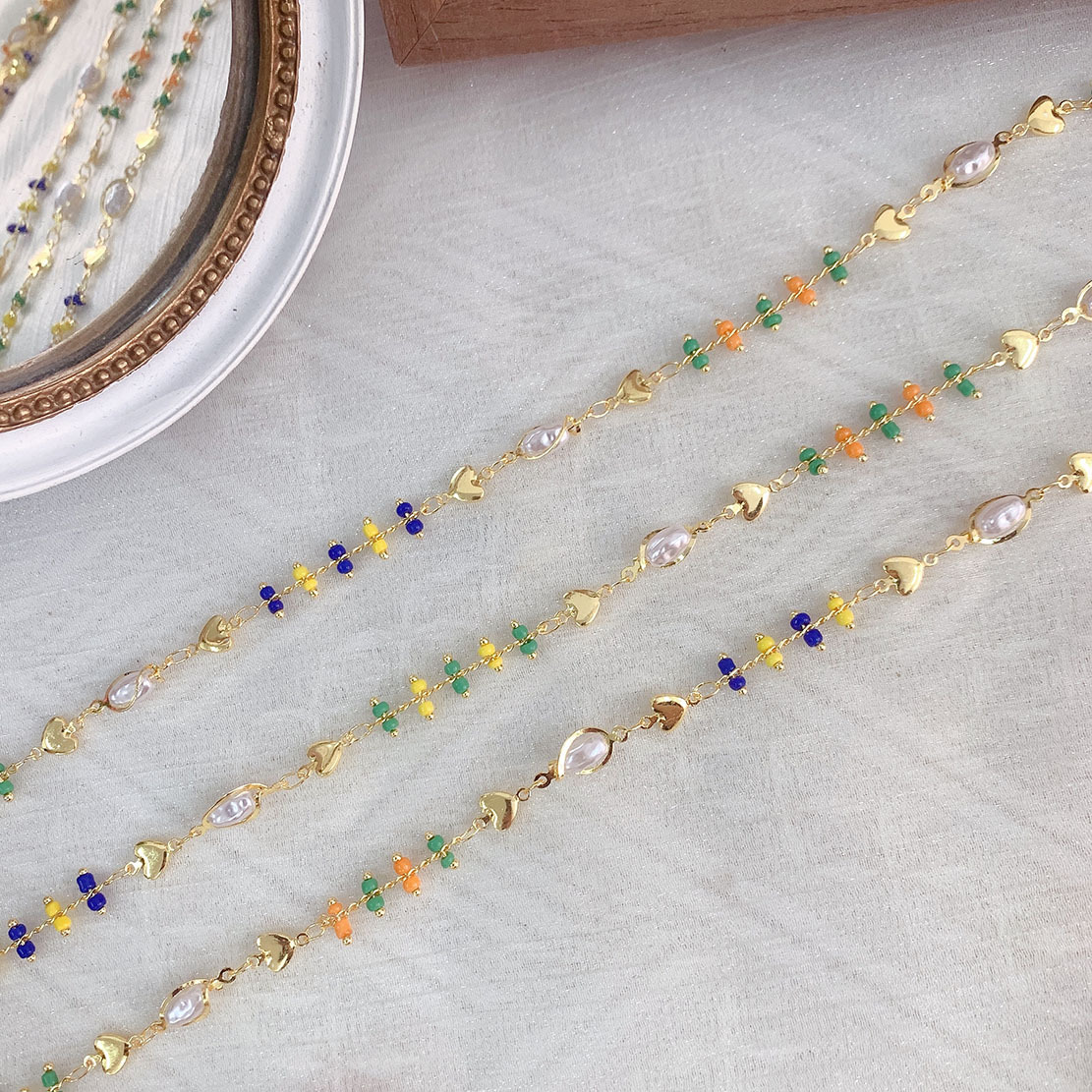 クリスタル ビーズ チェーン, とともに 銅, 楕円, メッキ, 手作り & 切り面, 色があるカード 売り手 M