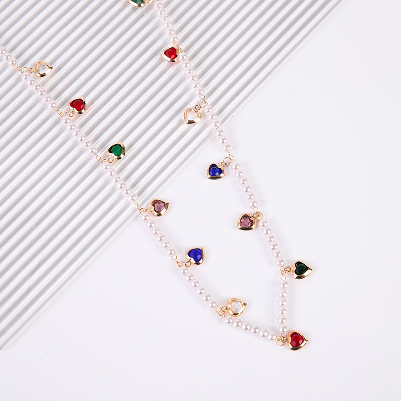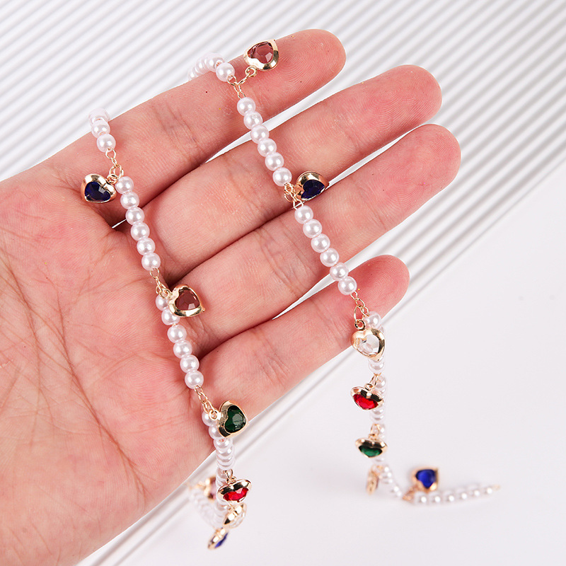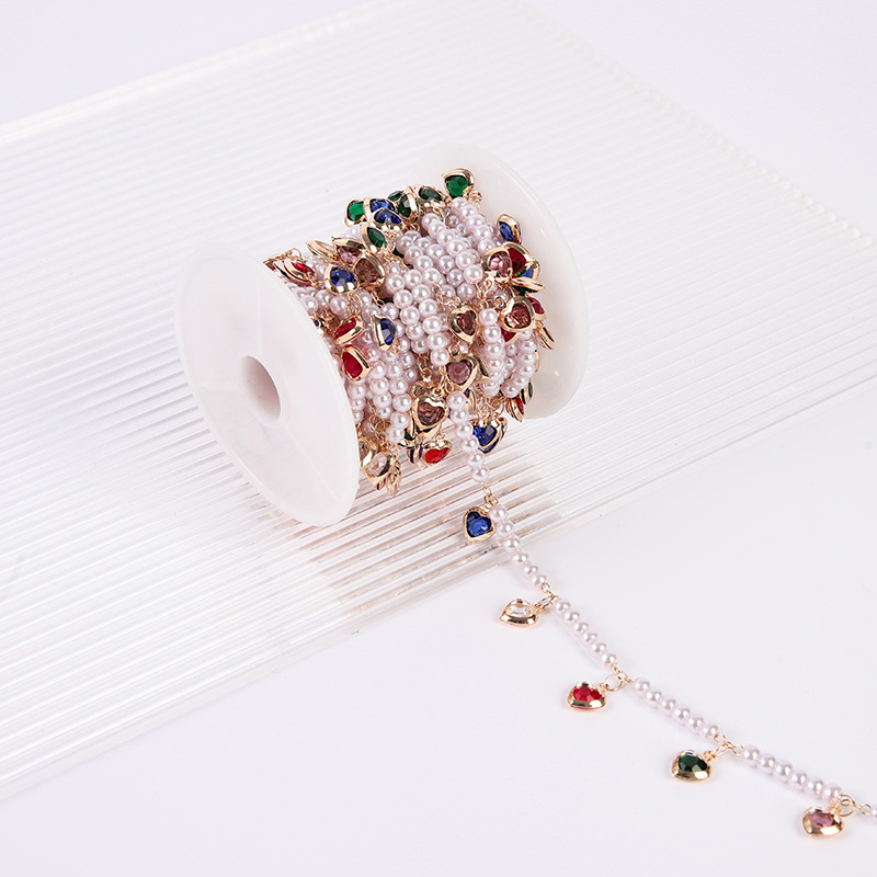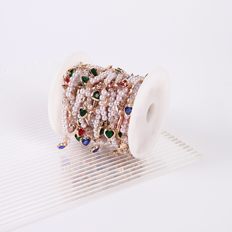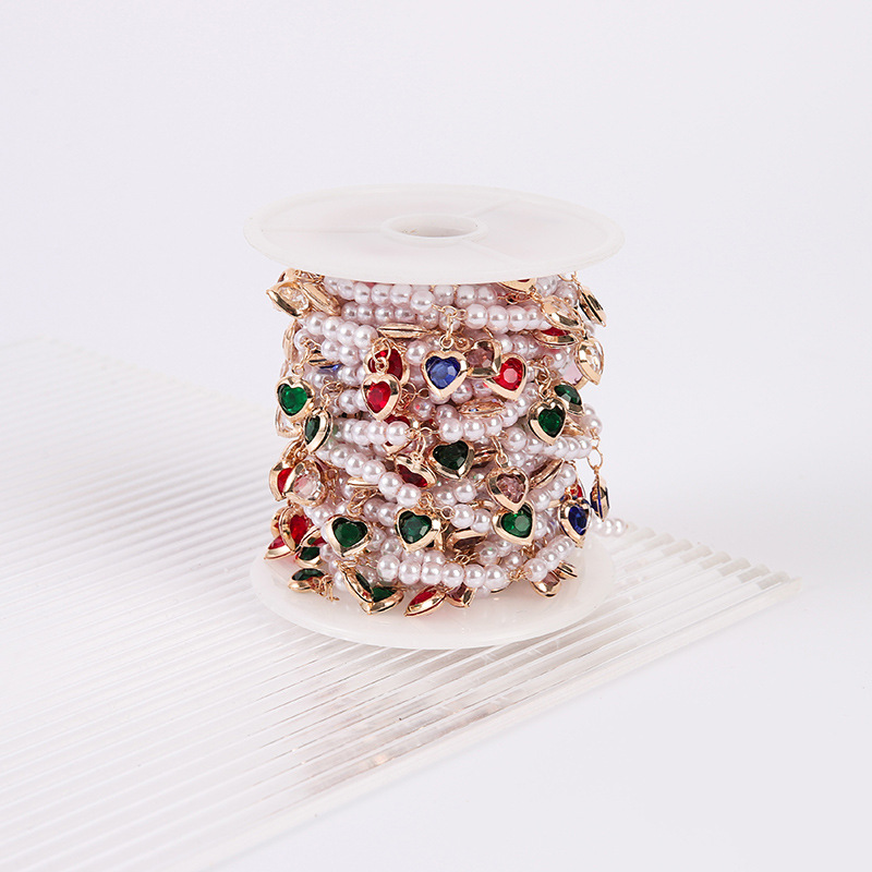 宝石用原石ビーズチェーン, 銅, とともに プラスチック製パール, ハート形, DIY & ライン石のある, ミックスカラー, 売り手 M