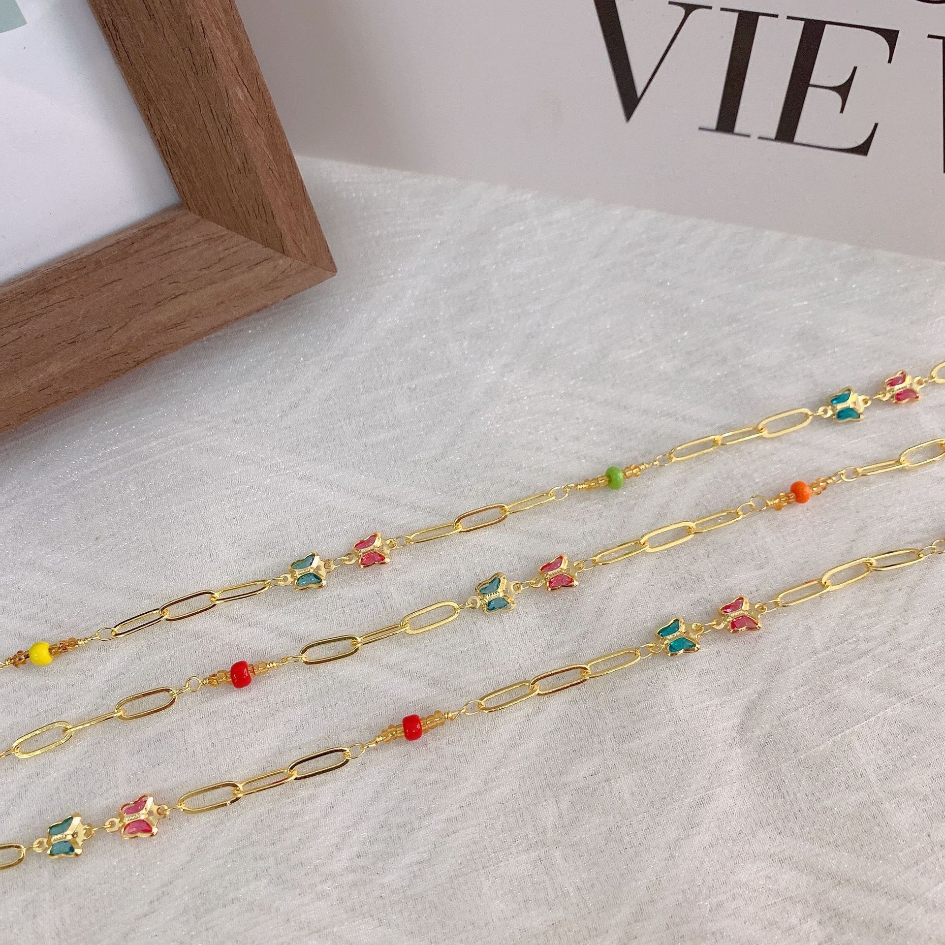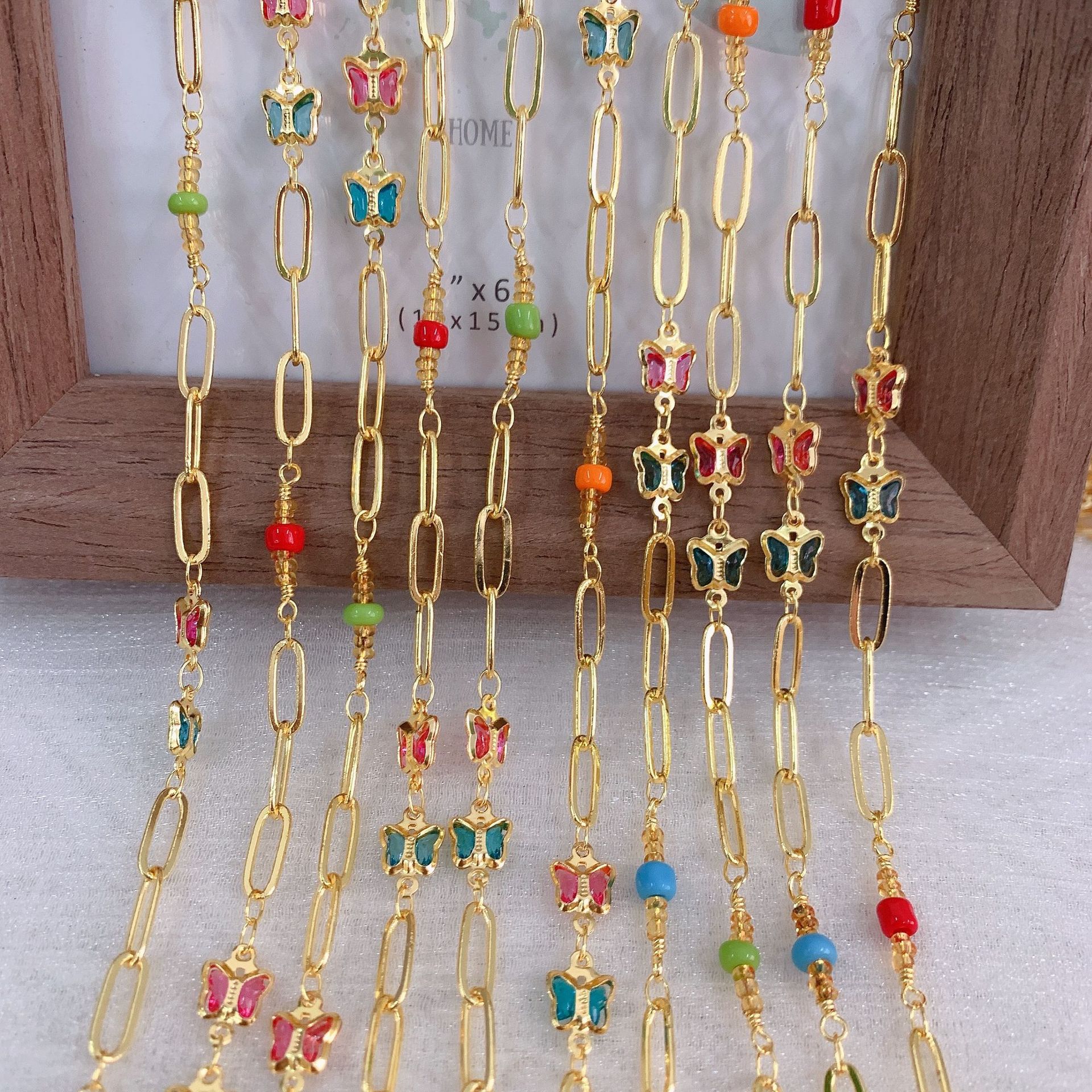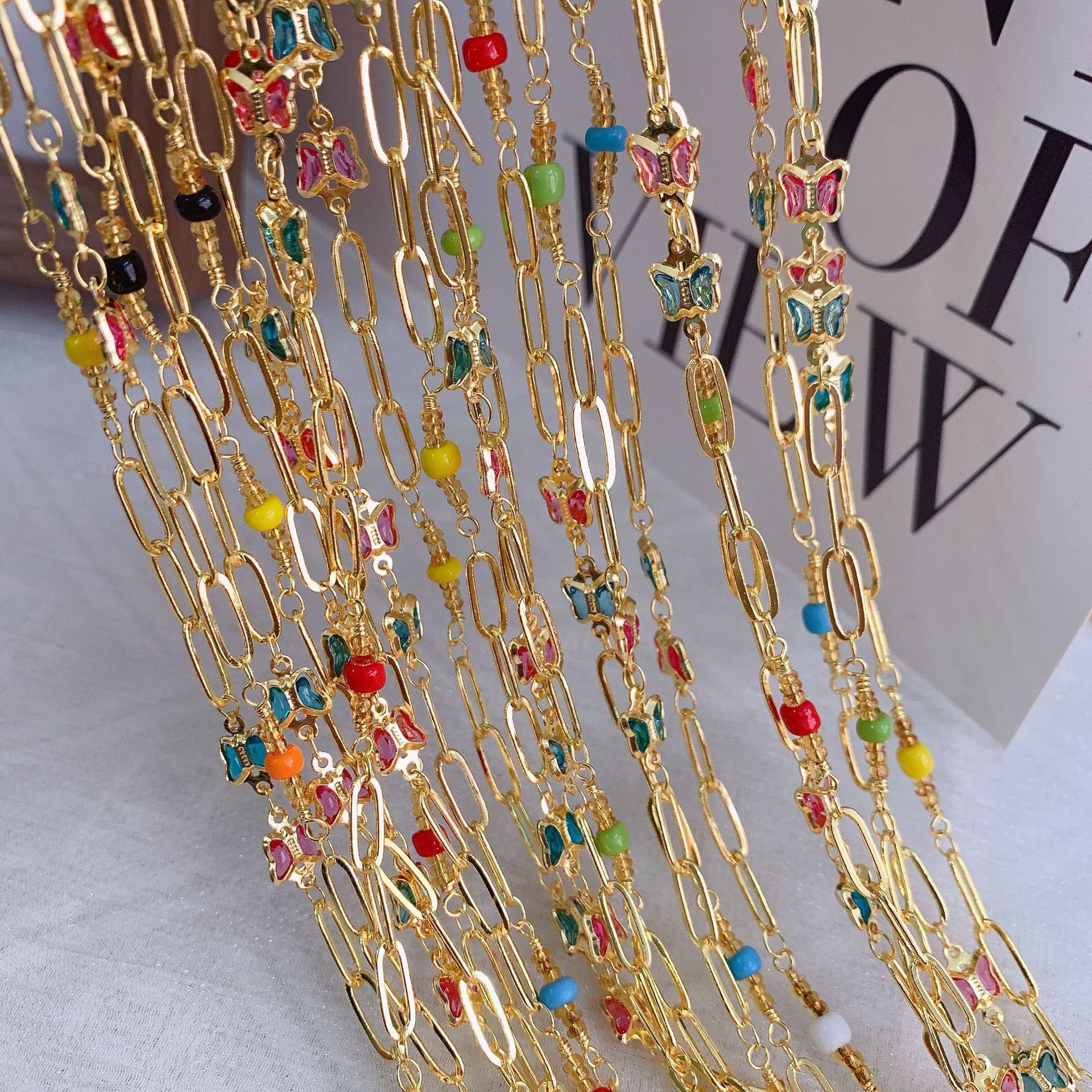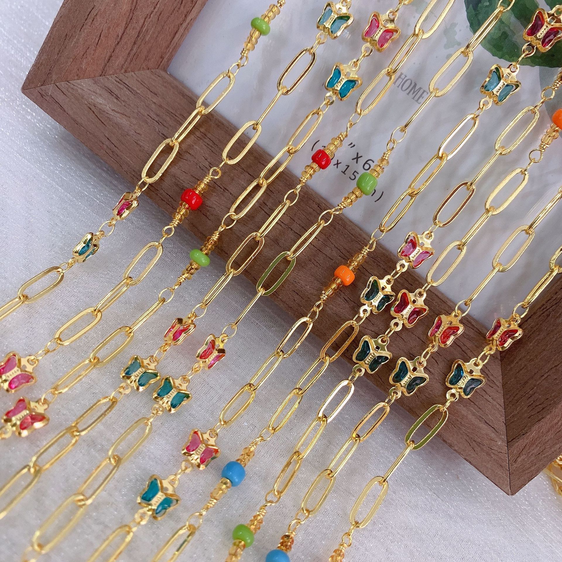 宝石用原石ビーズチェーン, 銅, とともに シードビーズ, 蝶, ゴールドメッキ, DIY & ライン石のある, ミックスカラー, 10M/バッグ, 売り手 バッグ