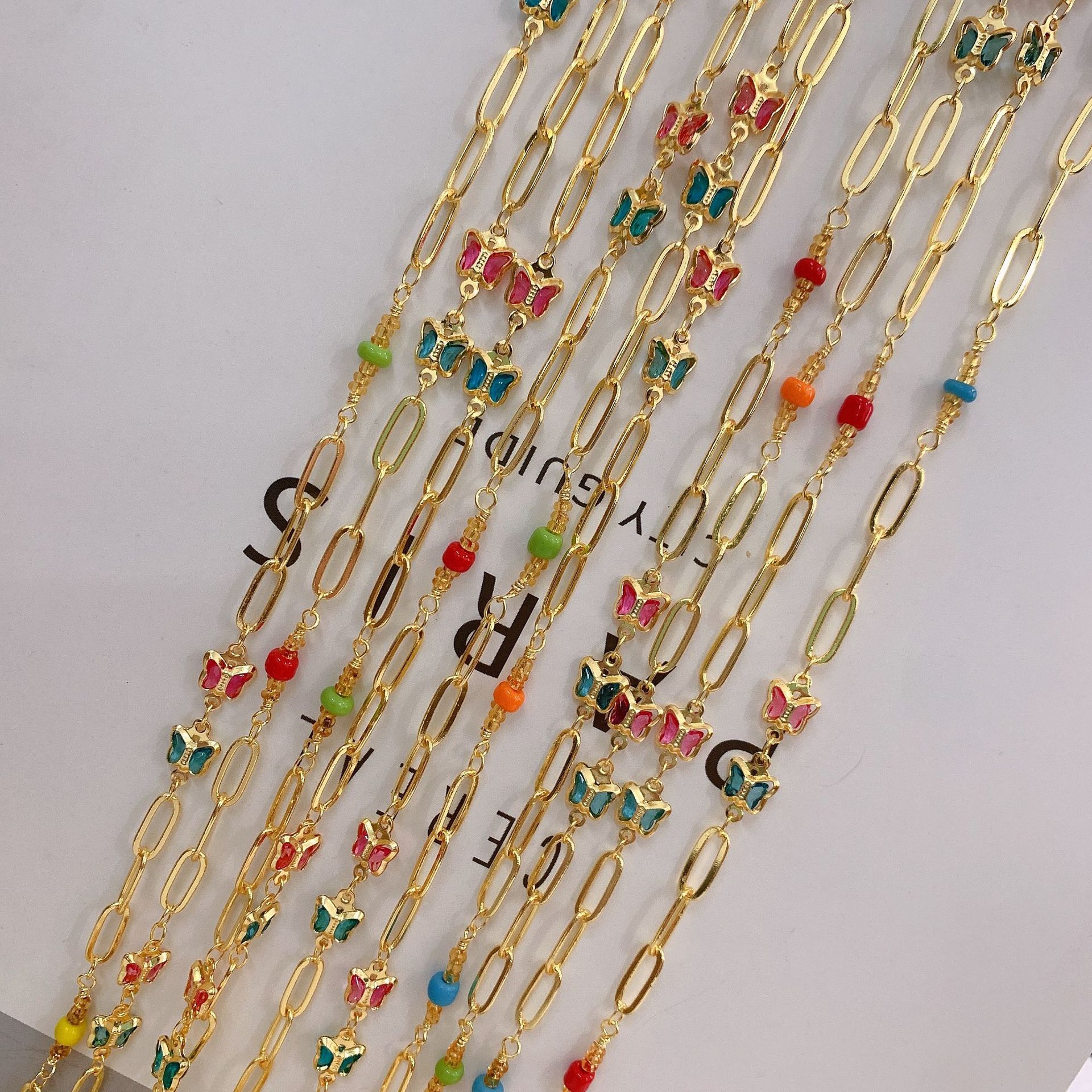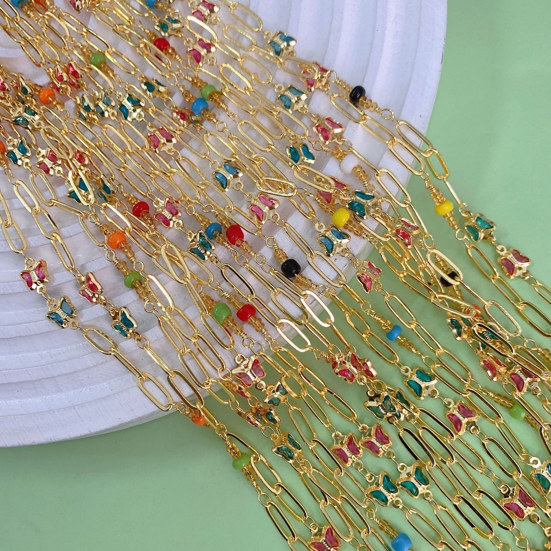 クリスタル ビーズ チェーン, とともに 銅, メッキ, 手作り & 切り面, 色があるカード 100M/ロト, 売り手 ロト