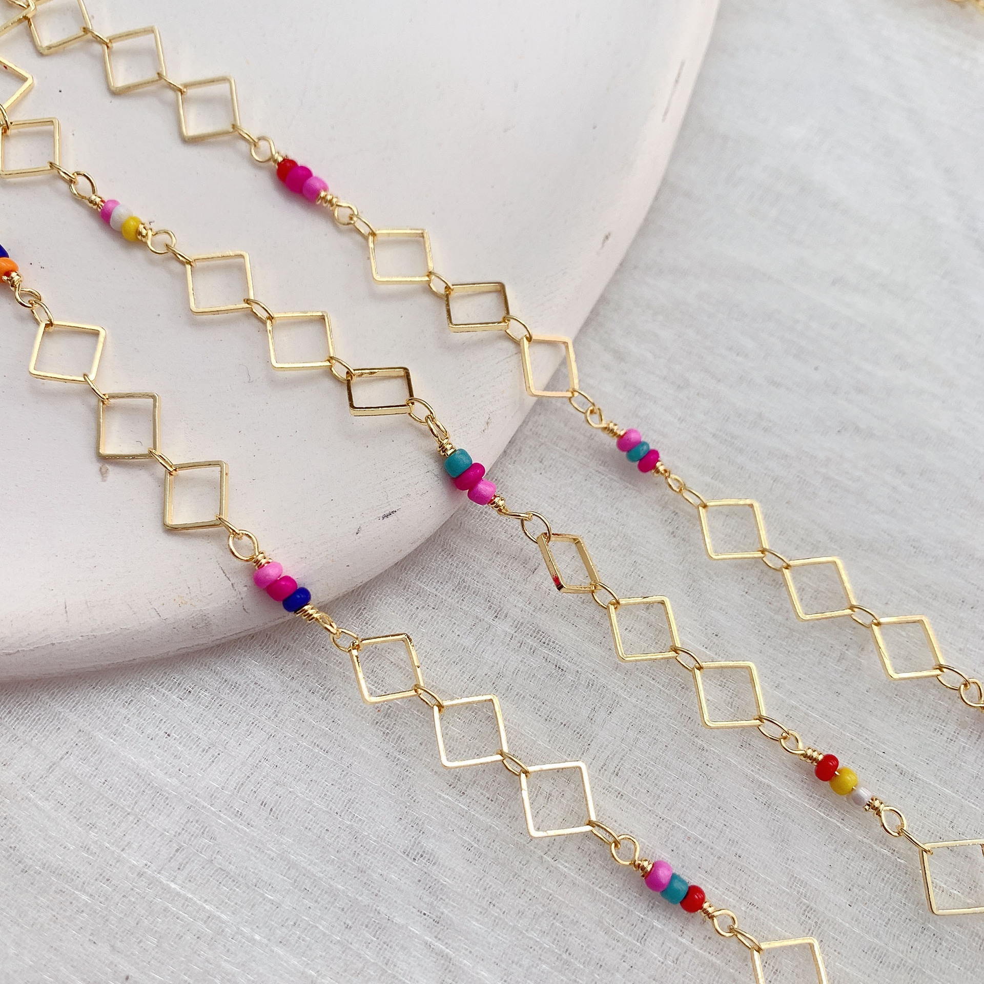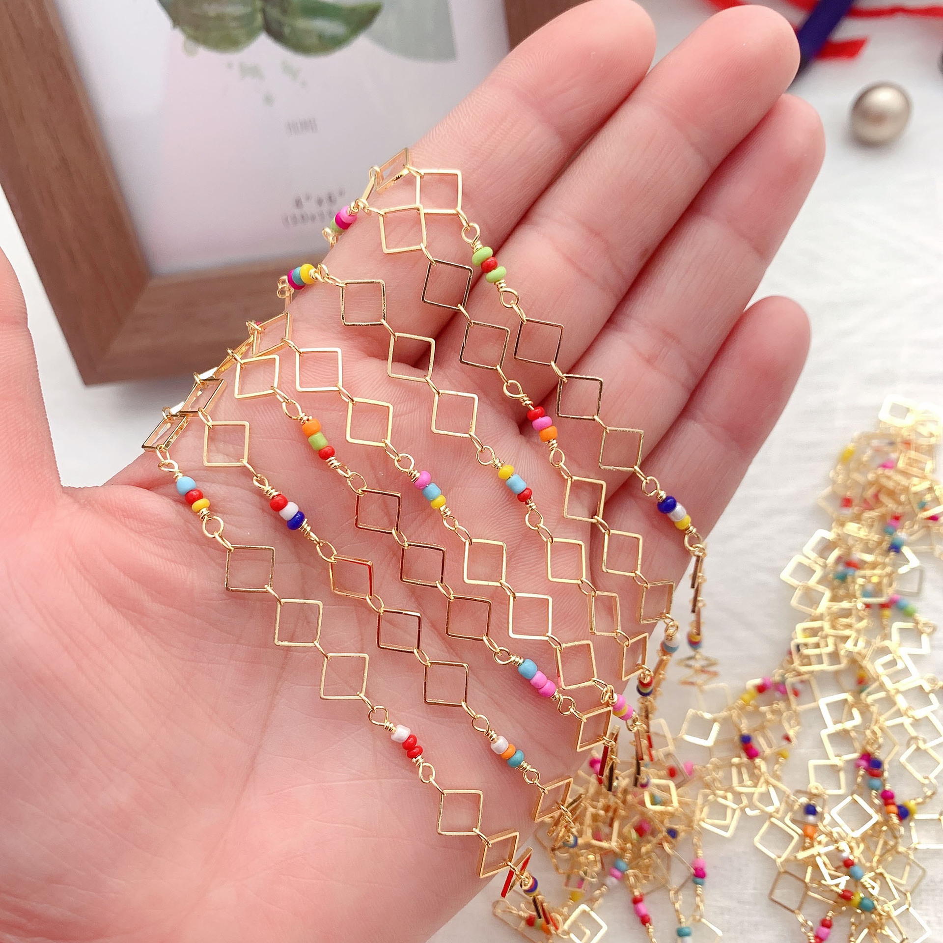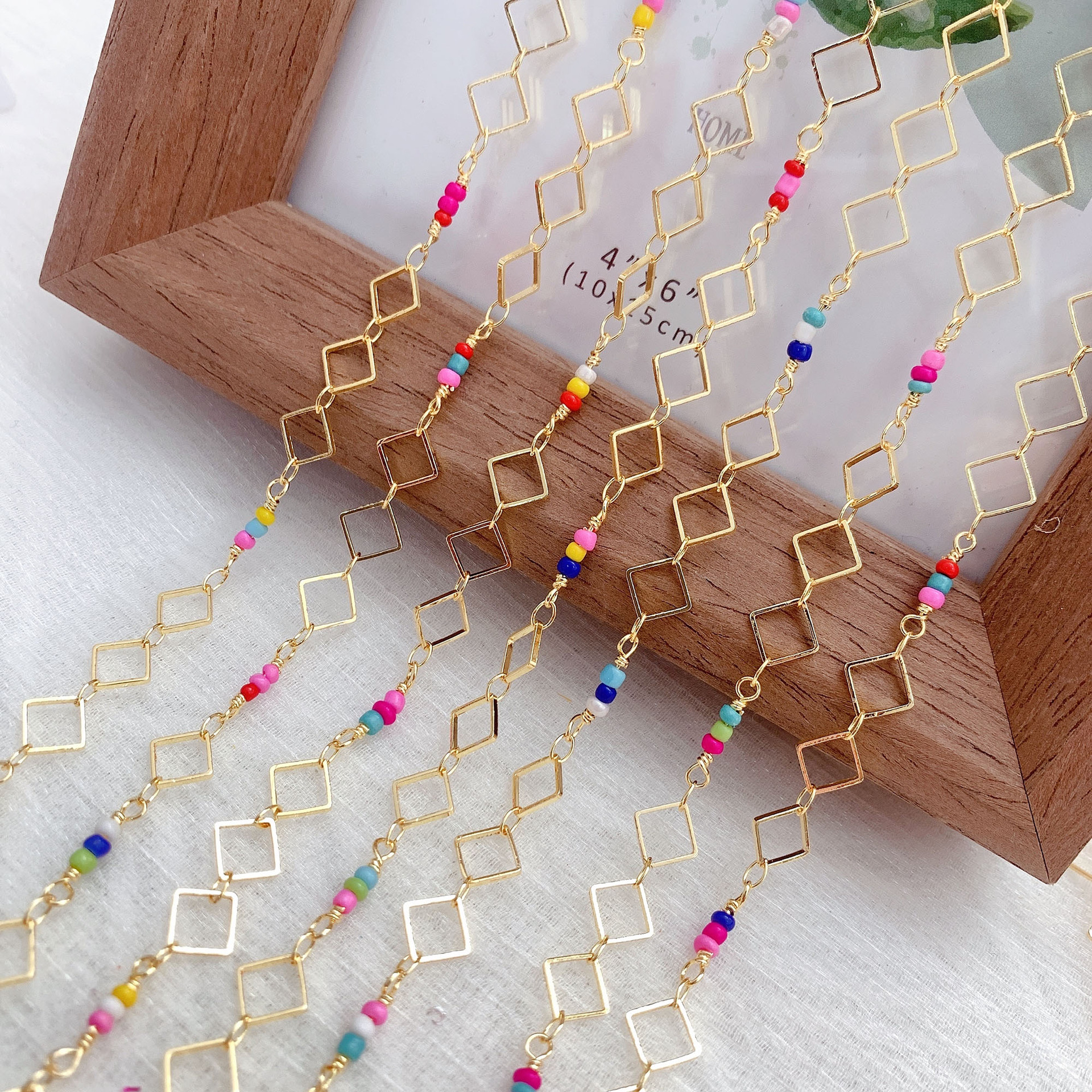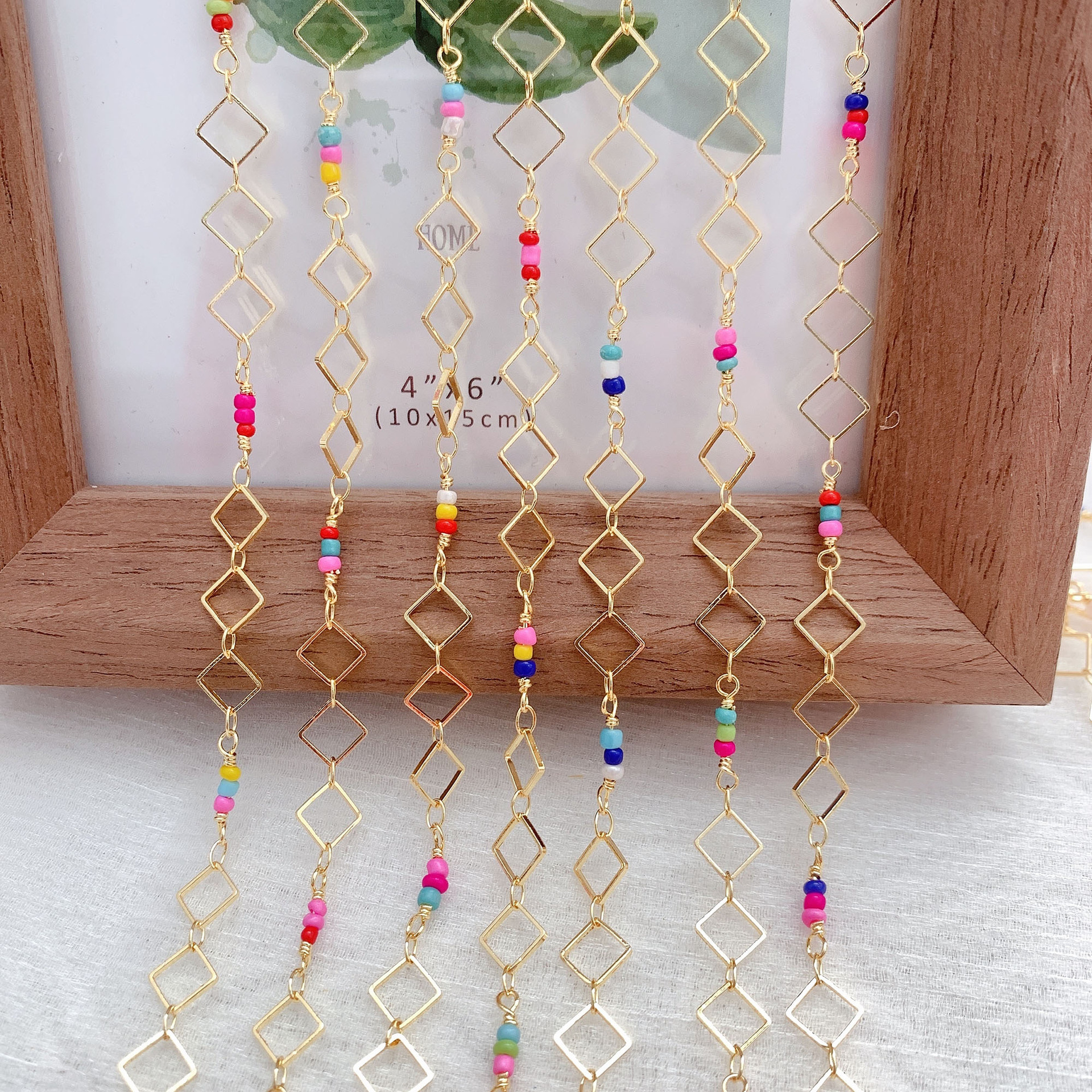宝石用原石ビーズチェーン, 銅, とともに シードビーズ, ゴールドメッキ, DIY, ミックスカラー, 10M/バッグ, 売り手 バッグ