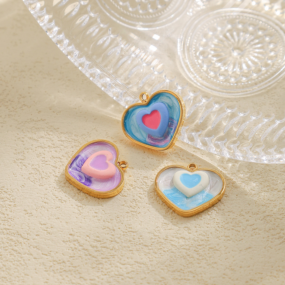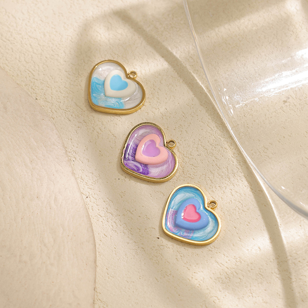 エナメル質のステンレス ペンダント, 304ステンレススチール, ハート形, ゴールドメッキ, DIY, 無色, 10パソコン/バッグ, 売り手 バッグ