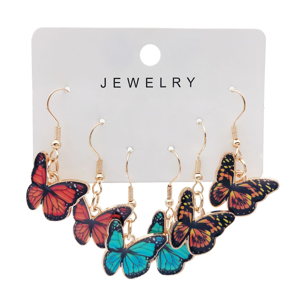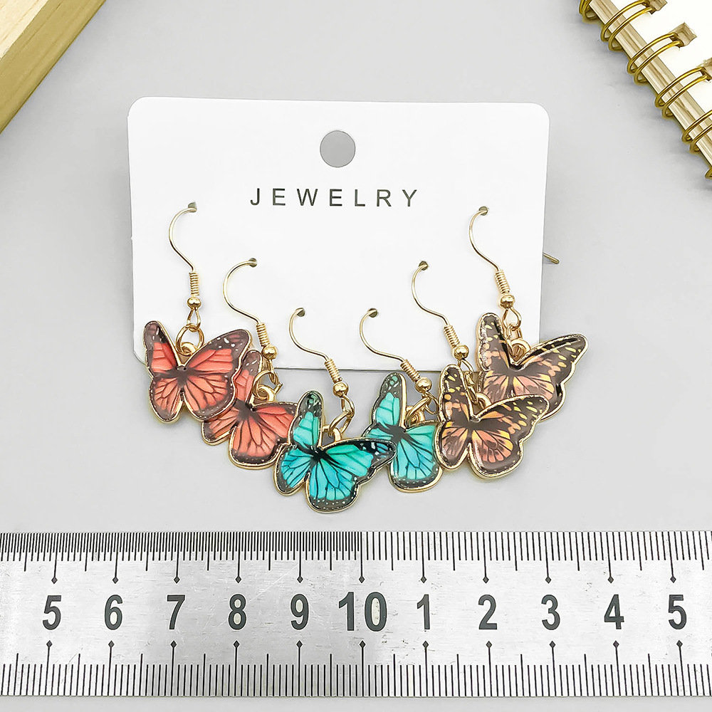 エナメル亜鉛合金のドロップイヤリング, 亜鉛合金, 蝶, メッキ, 女性用, 無色, 売り手 セット