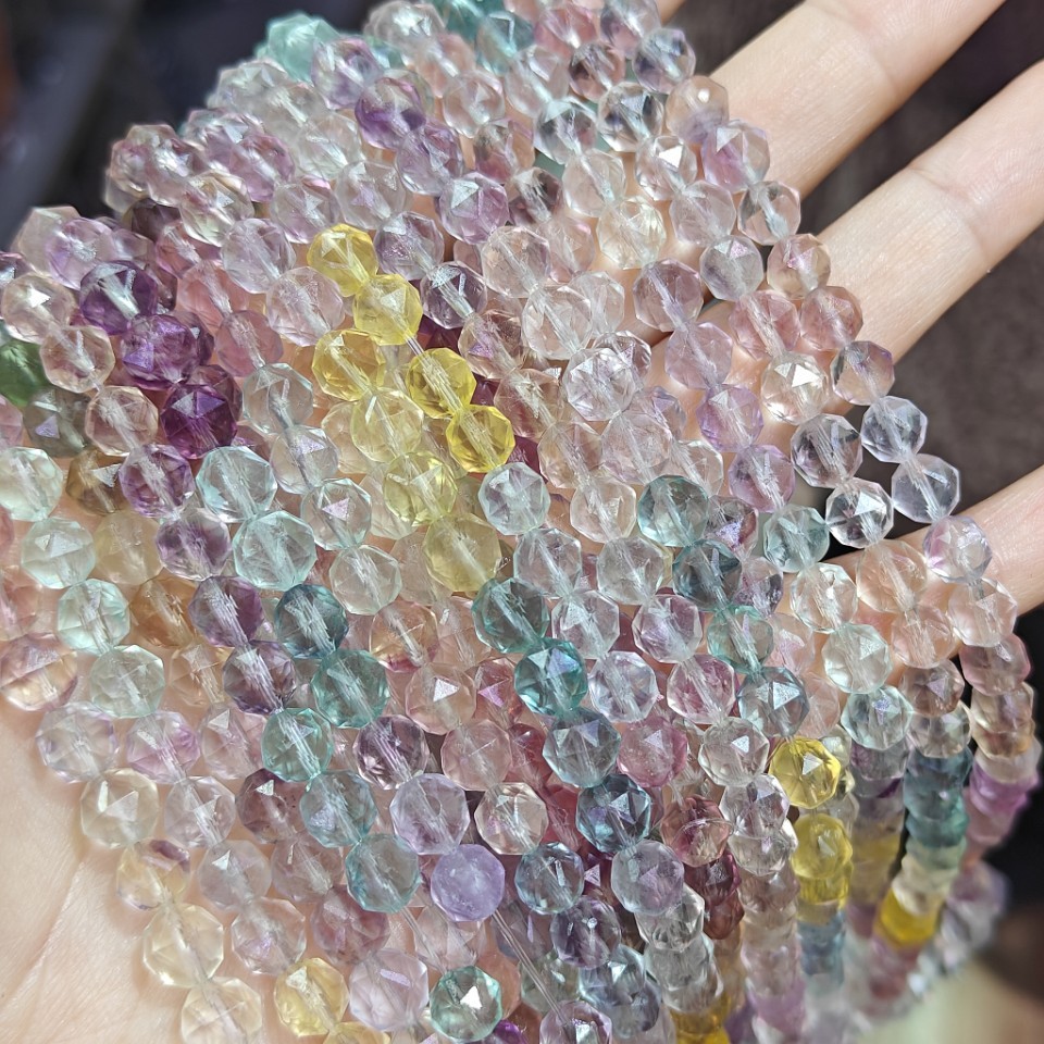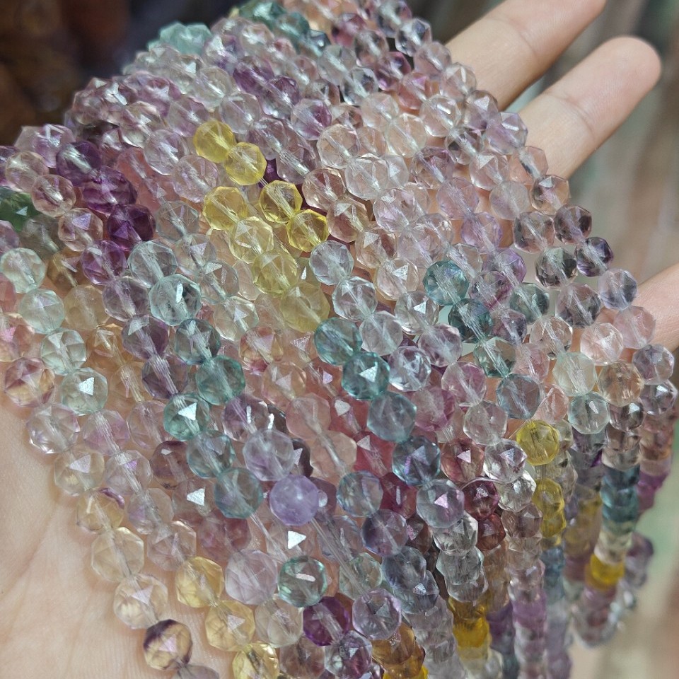 蛍石ビーズ, カラフルな蛍石, そろばん, 洗練されました。, DIY & 切り面, 勾配色, 7mm, 約 69パソコン/ストランド, 売り手 ストランド