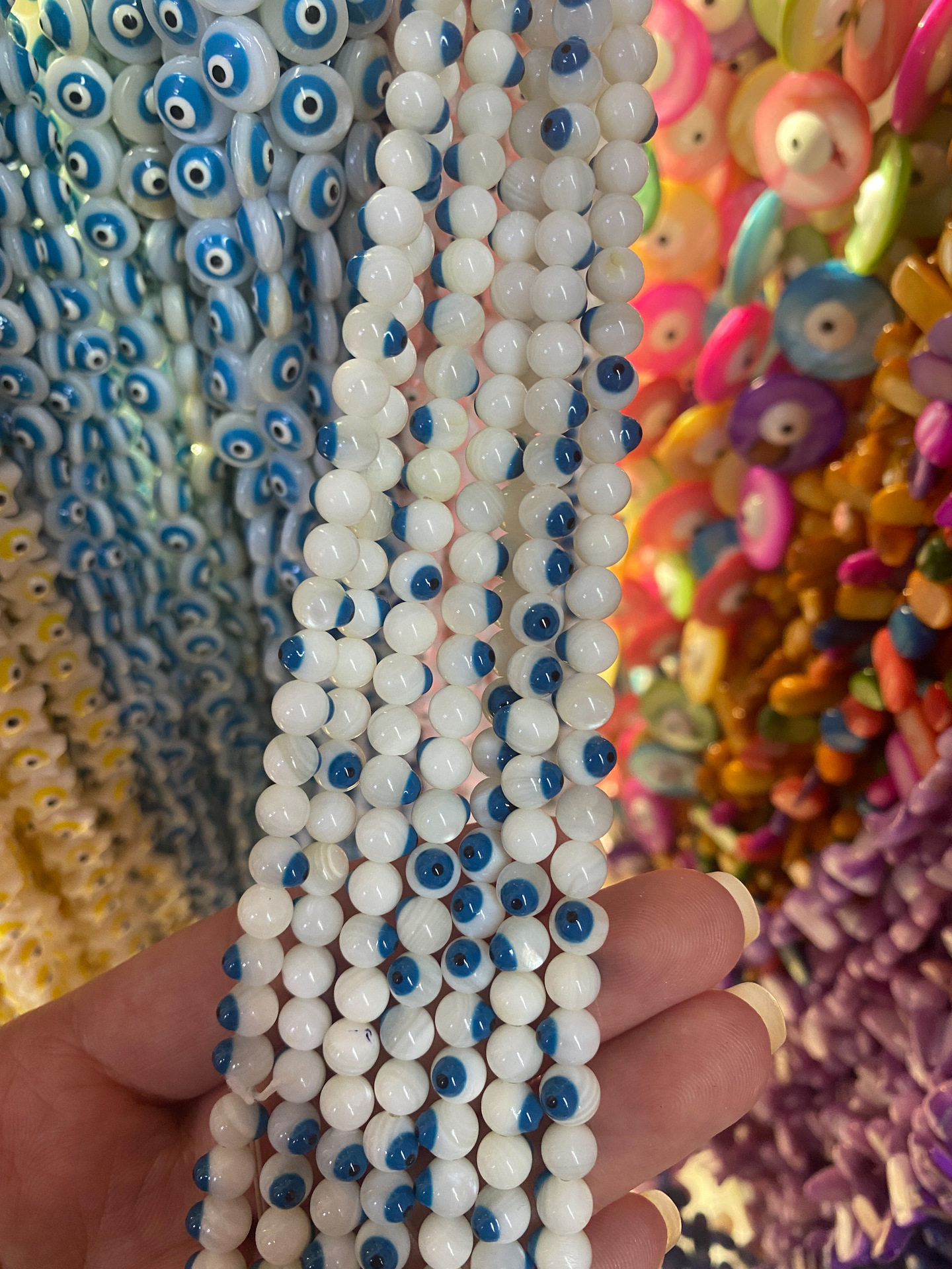 天然貝殻ビーズ, 貝, 馬の目, 無色 長さ:15 インチ, 売り手 ストランド