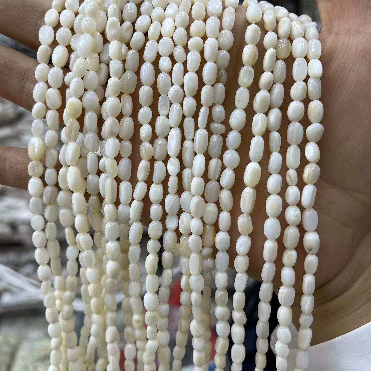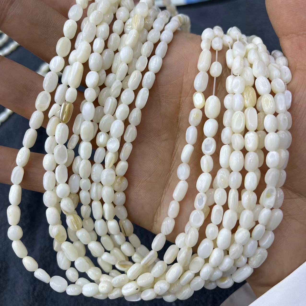 天然貝殻ビーズ, 貝, 卵形, DIY, ホワイト, 5mm, 約 56パソコン/ストランド, 売り手 ストランド