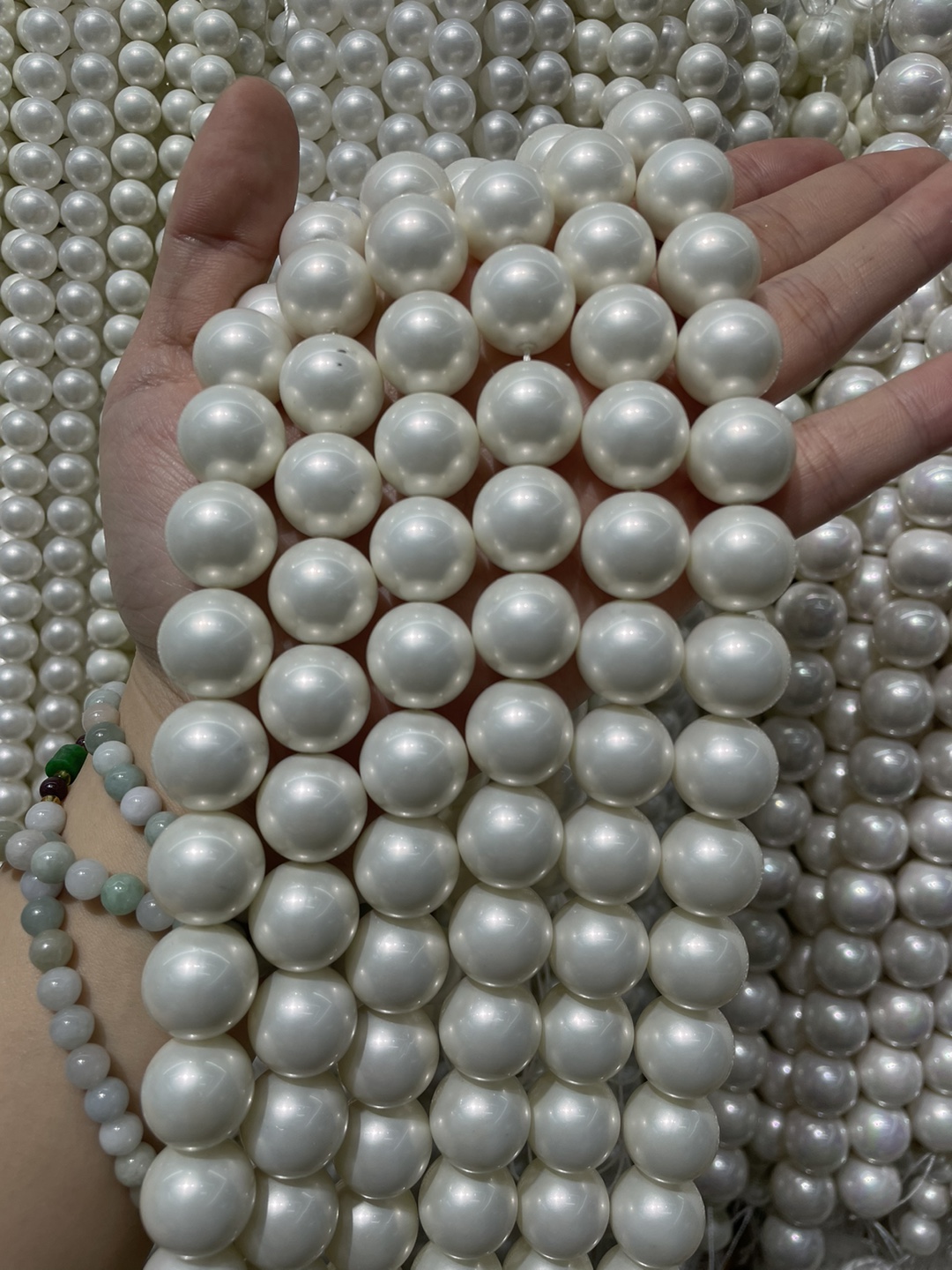 天然貝殻ビーズ, 貝, 馬の目, 無色 長さ:15 インチ, 売り手 ストランド