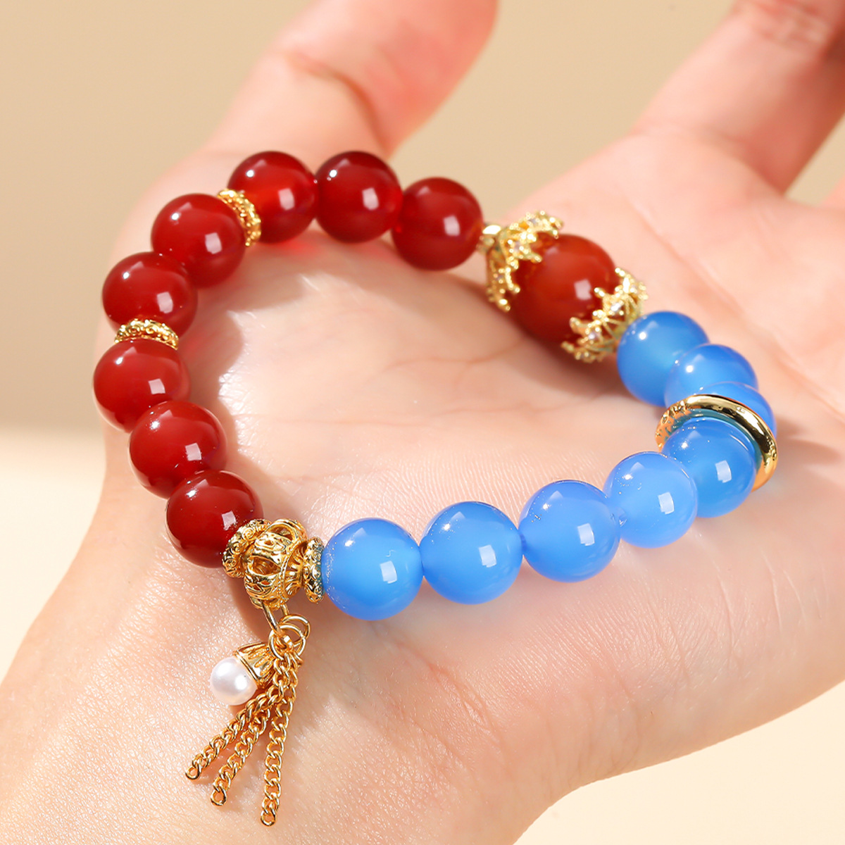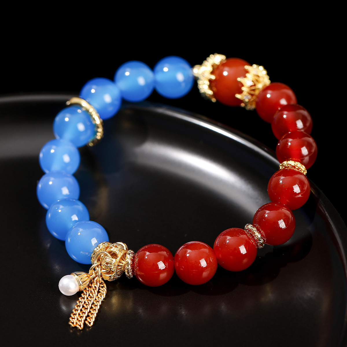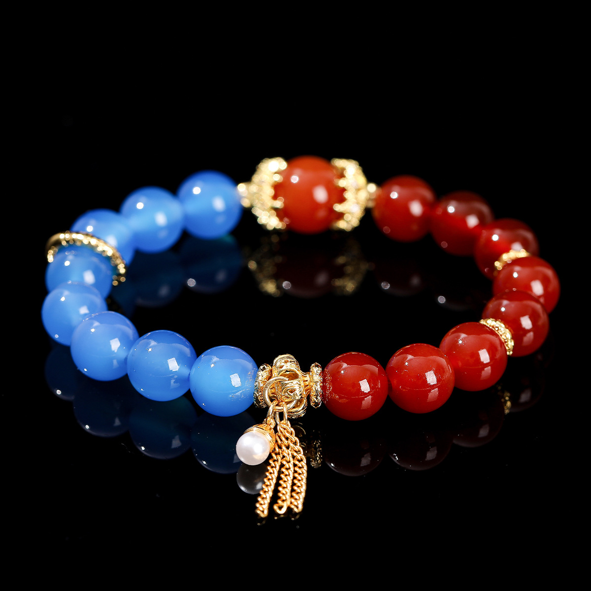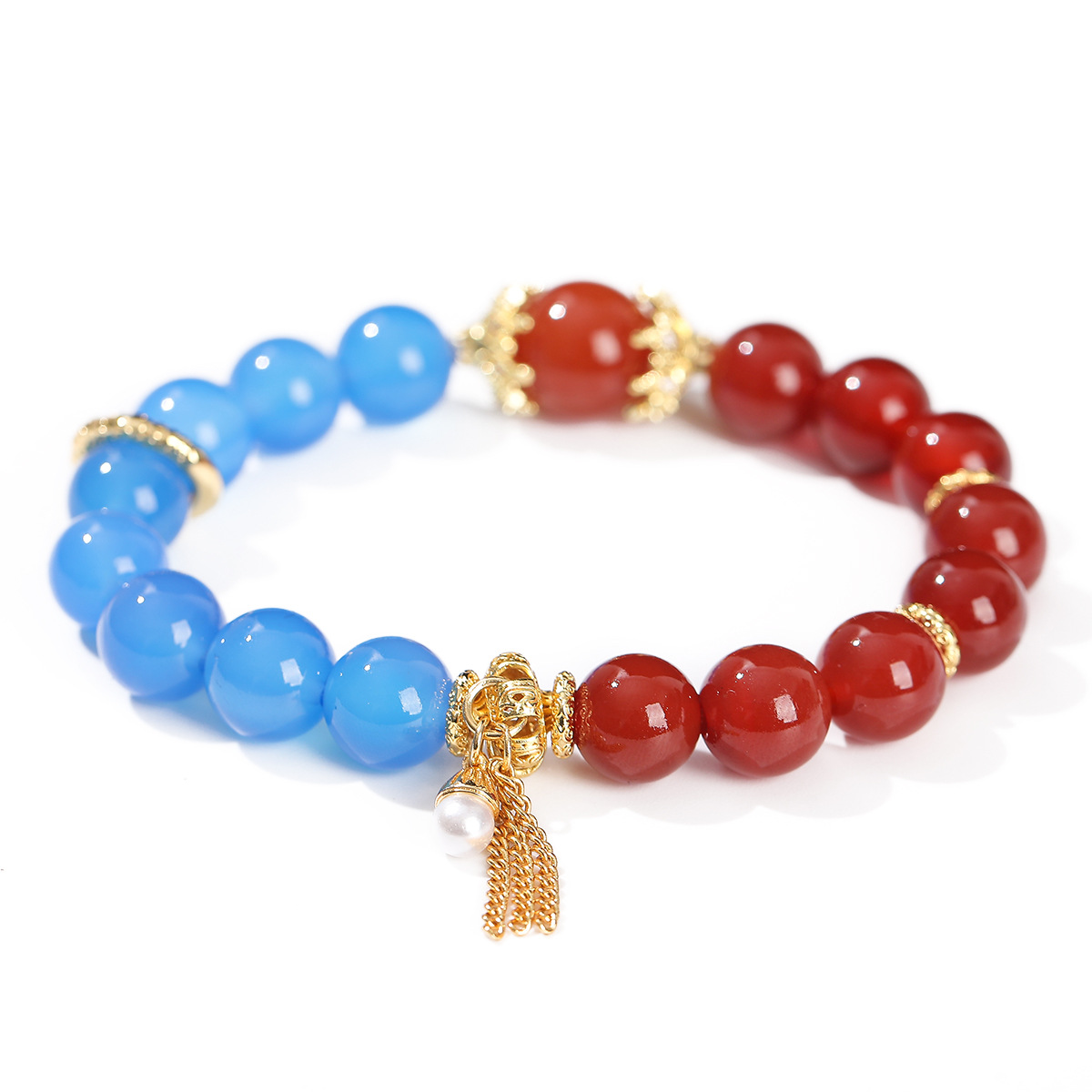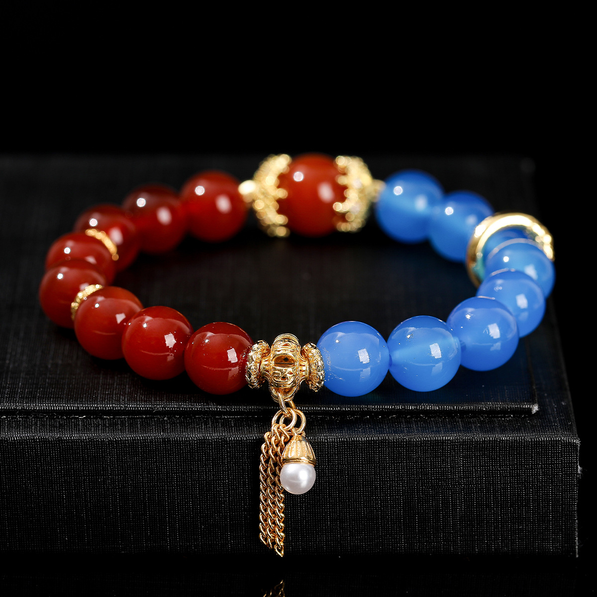 レッドアゲート ブレスレット, とともに ブルーアゲート & プラスチック製パール & 銅, ハンドメイド, ナチュラル & ユニセックス, beads length 10mm,12mm, 長さ:約 6-7 インチ, 売り手 パソコン