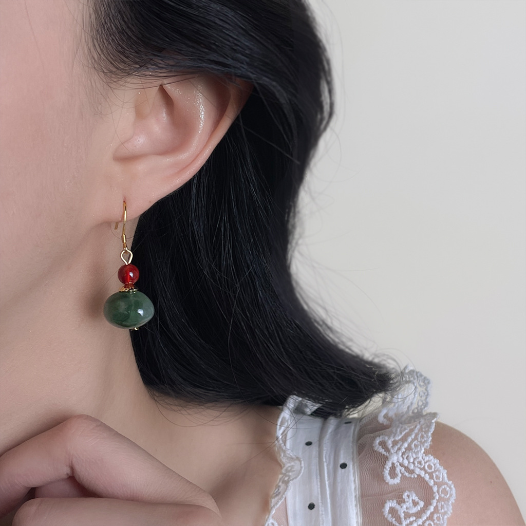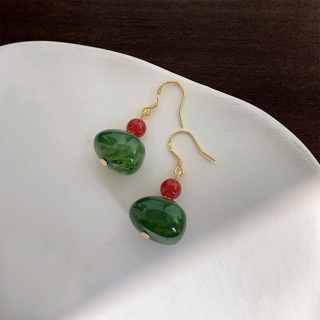 樹脂の Leverbackのイヤリング, 銅, とともに レッドアゲート & 樹脂, ゴールドメッキ, 女性用, グリーン, 17x39mm, 売り手 ペア