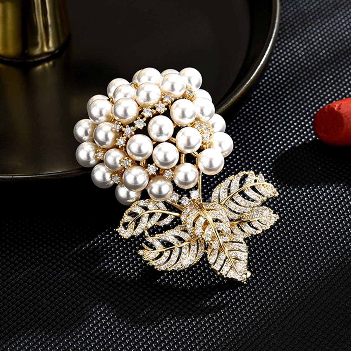 シェル・ブローチ, 銅, とともに シェルパール, メッキ, マイクロパヴェジルコニア & 女性用, 金色, 56x35mm, 売り手 パソコン