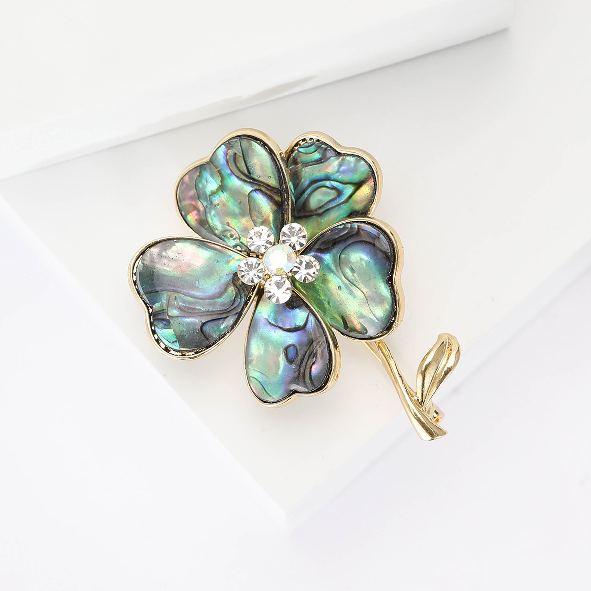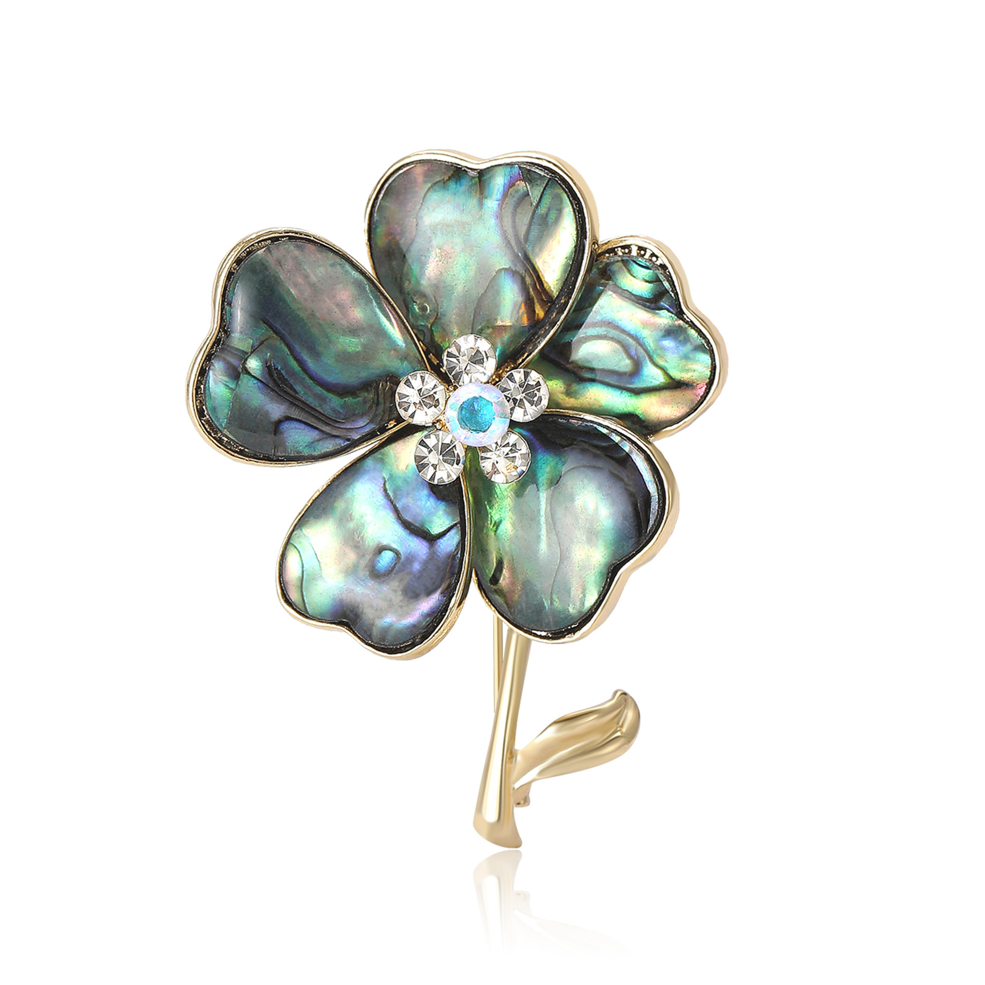 シェル・ブローチ, 亜鉛合金, とともに アワビ貝, 花形, ゴールドメッキ, 女性用 & ライン石のある, 売り手 パソコン