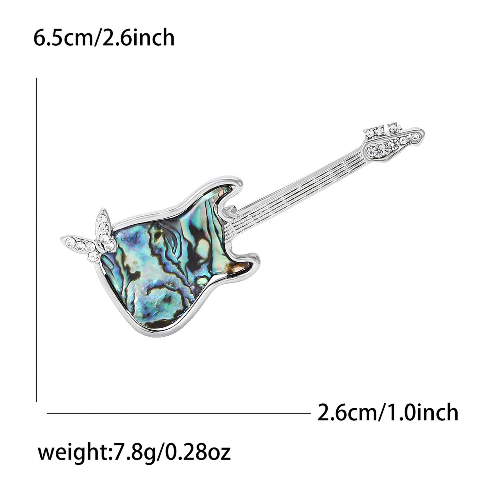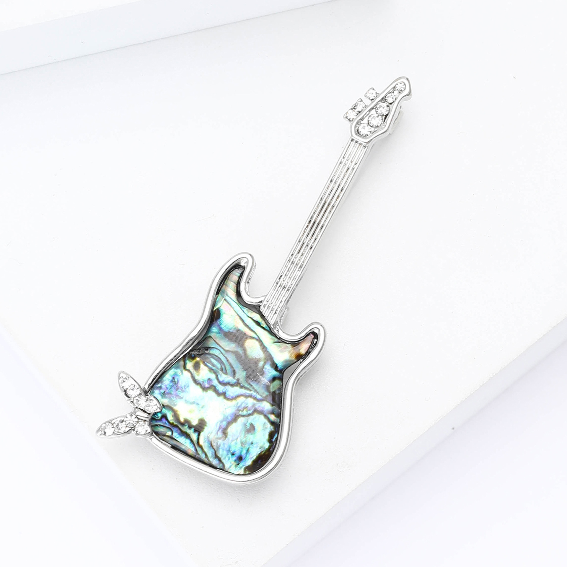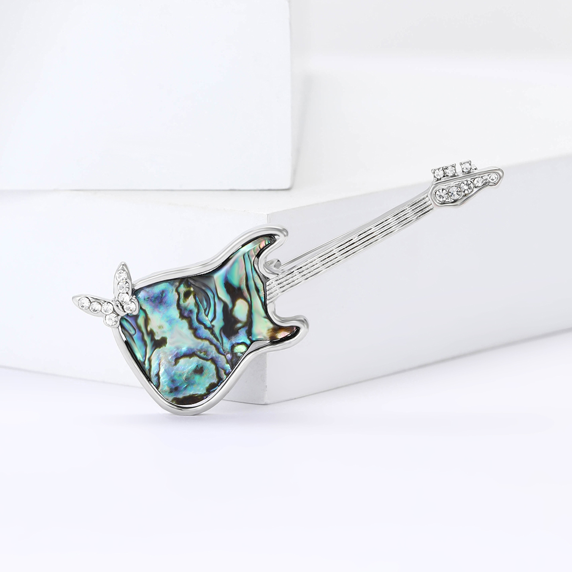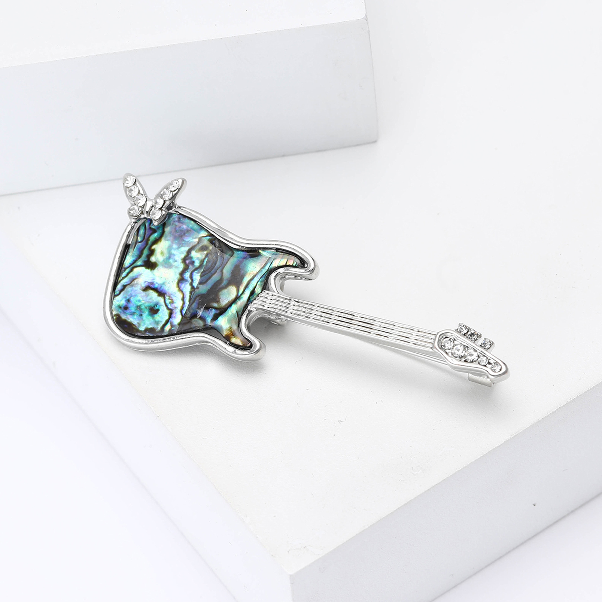 シェル・ブローチ, 亜鉛合金, とともに アワビ貝, ギター, シルバーメッキ, 女性用 & ライン石のある, 売り手 パソコン