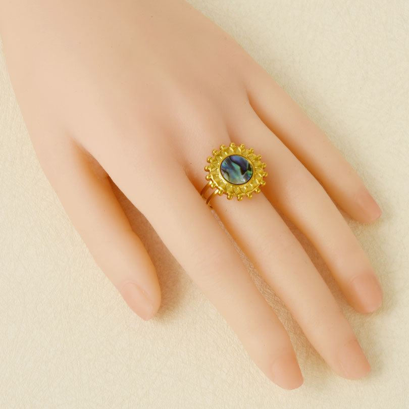シェルの指輪, 銅, とともに 黒い貝, 花形, プラチナカラーメッキ, 調節の可能性がある, ニッケル、鉛、カドミウムフリー サイズ:9, 売り手 パソコン