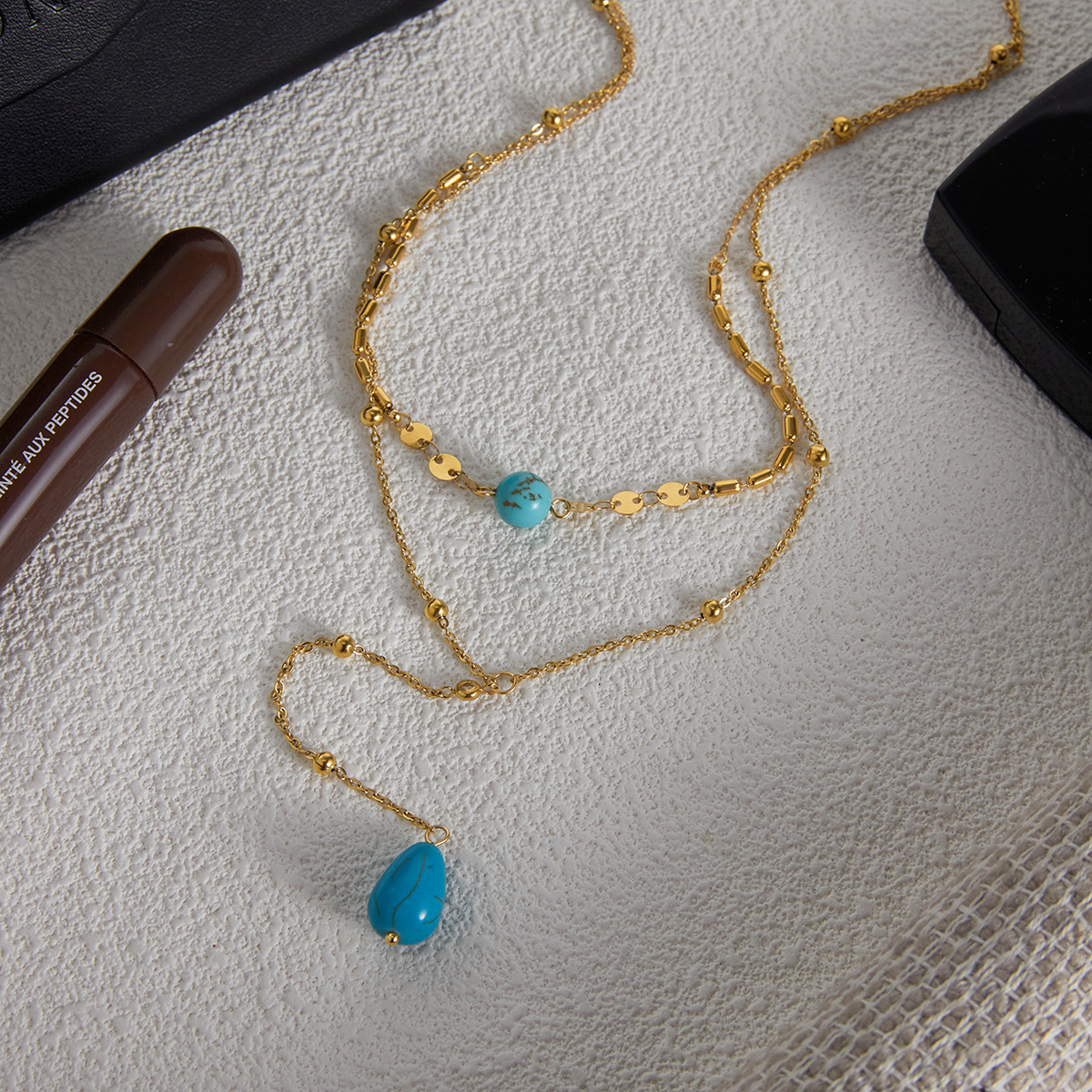 ステンレス鋼のジュエリーネックレス, 304ステンレススチール, とともに 合成トルコ石, メッキ, ダブルレイヤー & ファッションジュエリー & 女性用, 金色, 売り手 パソコン