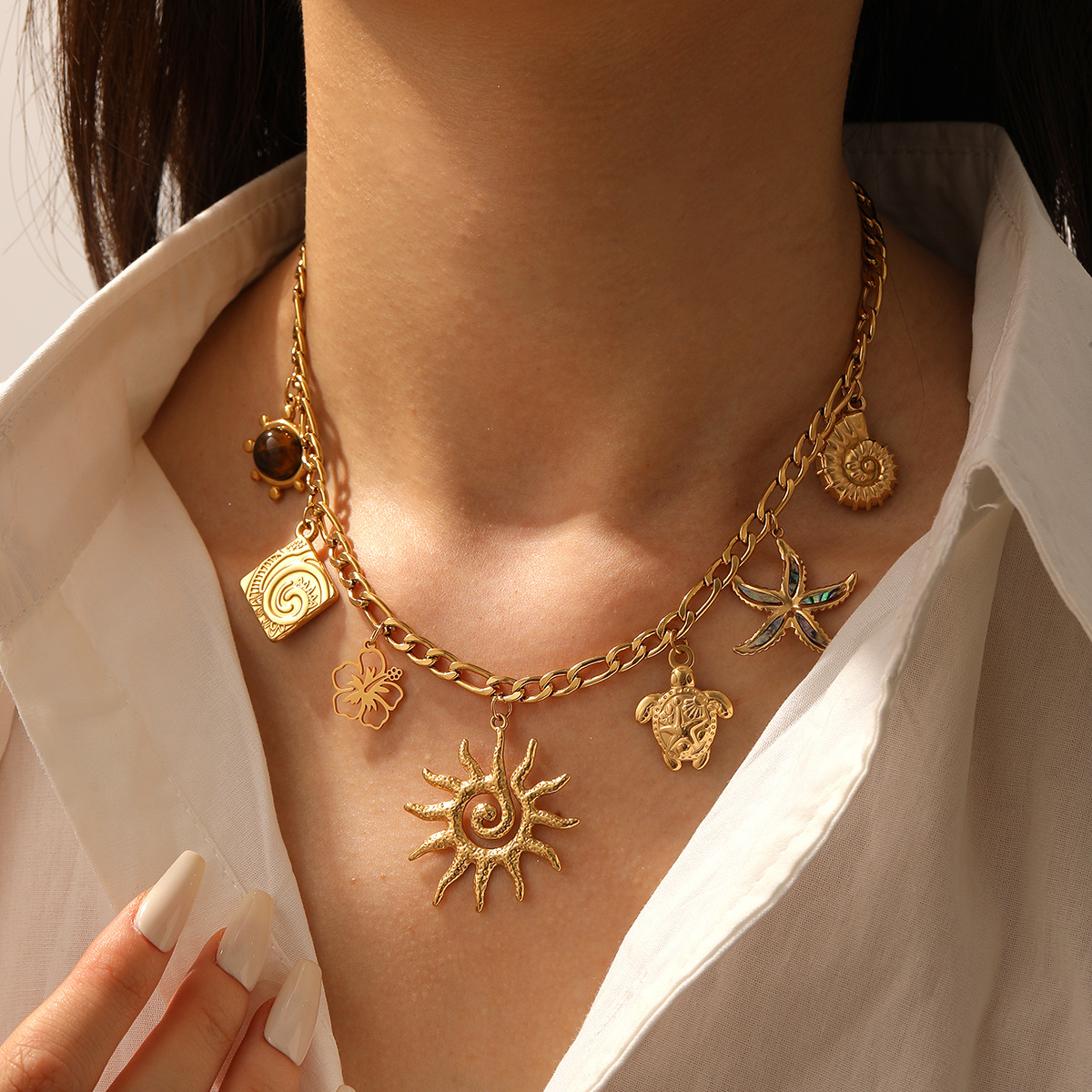 ステンレス鋼のジュエリーネックレス, 304ステンレススチール, とともに タイガーアイ & アワビ貝, メッキ, ファッションジュエリー & 女性用 & くり抜き, 金色, 売り手 パソコン
