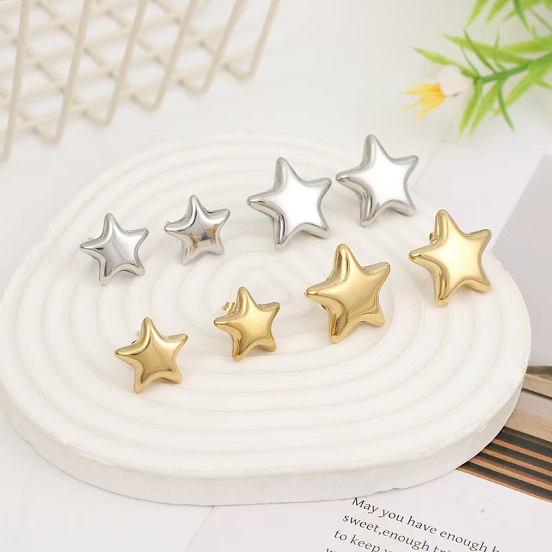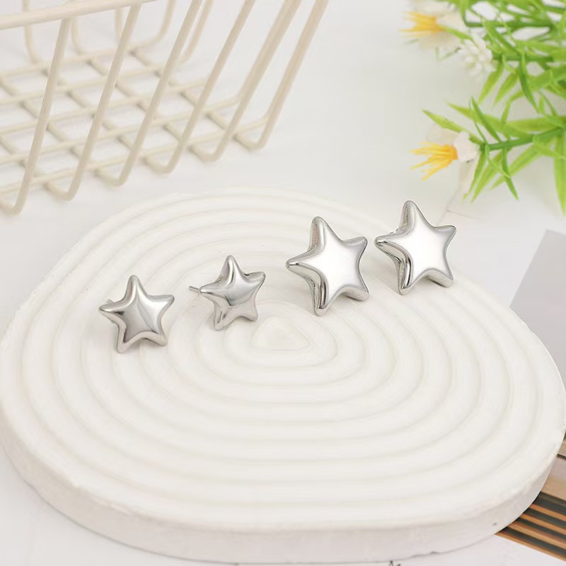 ステンレスのスタッド イヤリング, 304ステンレススチール, 星, メッキ, ファッションジュエリー & 女性用, 無色, 売り手 ペア