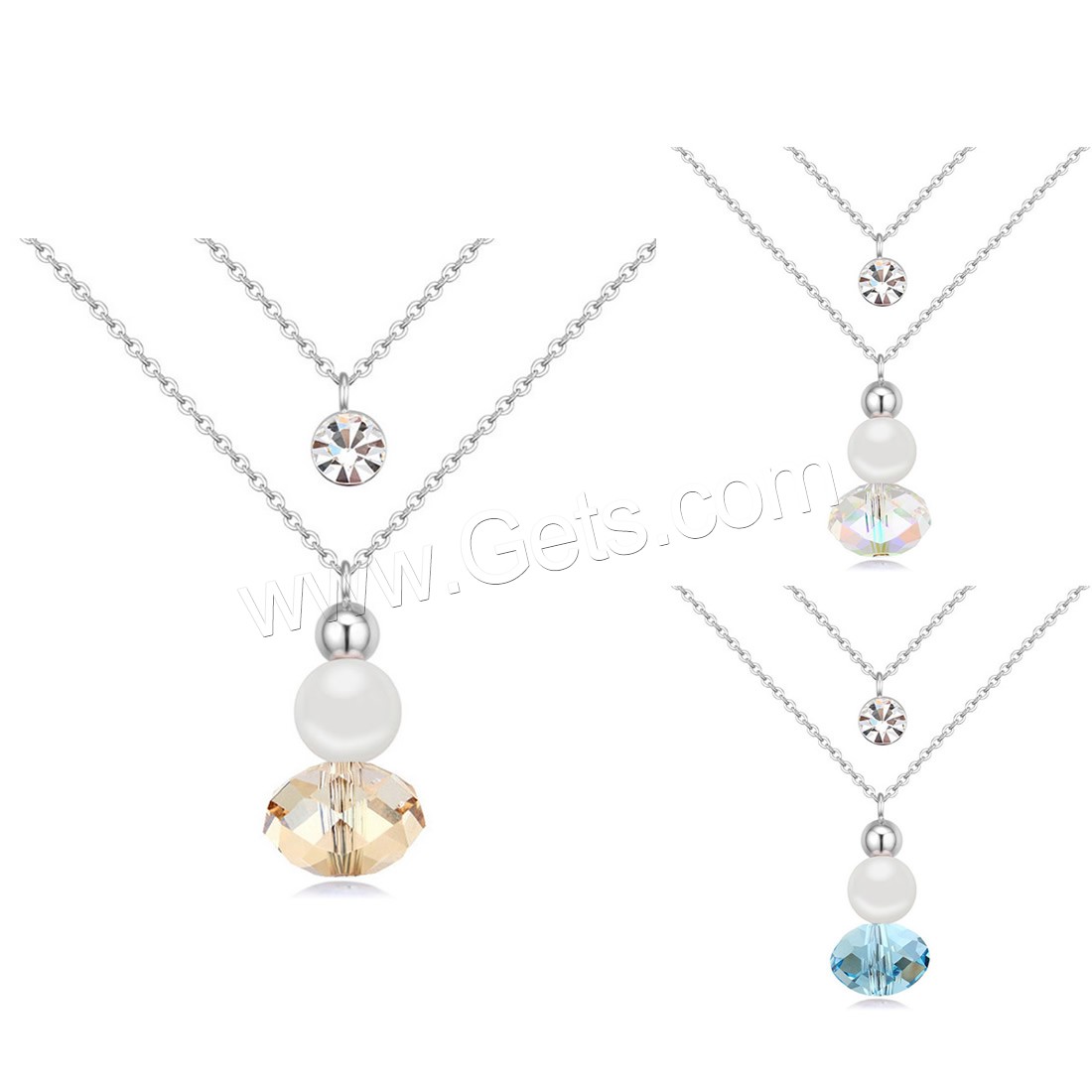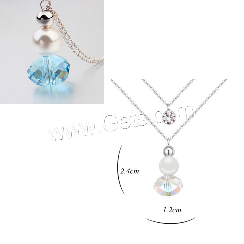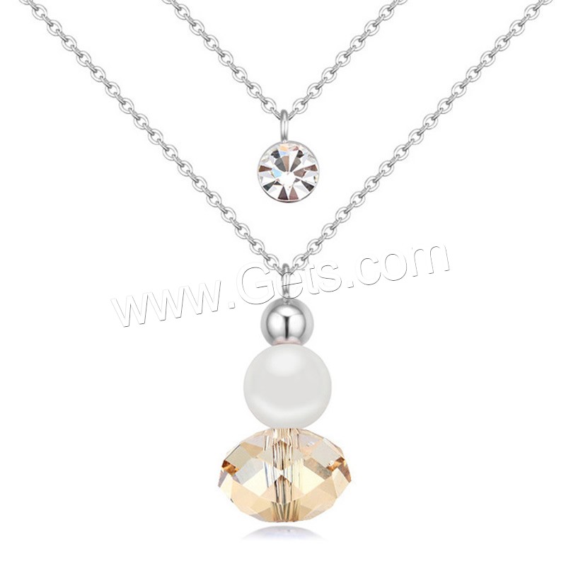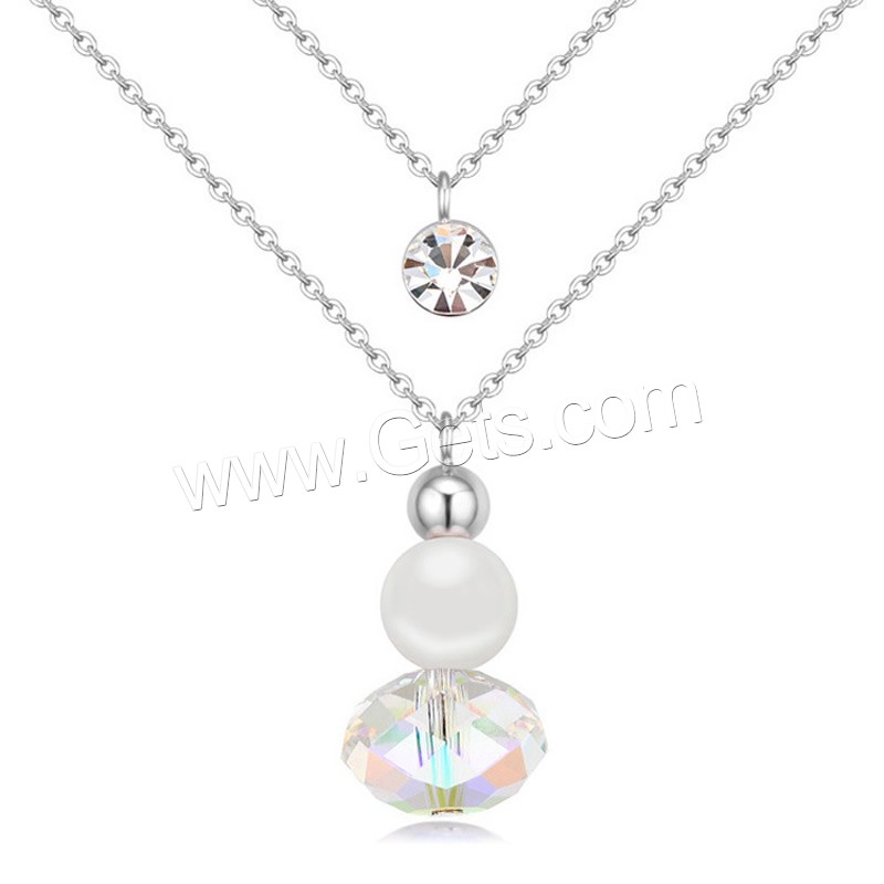 スワロフスキー真鍮ネックレス, 銅, とともに スワロフスキークリスタルパール & スワロフスキー, とともに 5cm エクステンダチェーン, プラチナメッキ, 楕円形の鎖 & 女性用 & 切り面 & ダブルストランド, 無色, ニッケル、鉛、カドミウムフリー, 12x24mm, 長さ:約 15.5 インチ, 売り手 ストランド