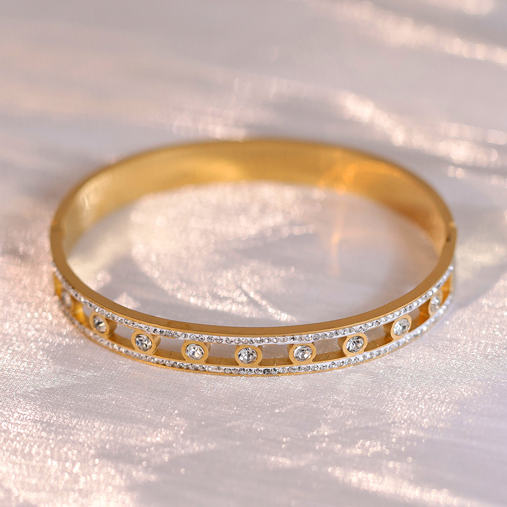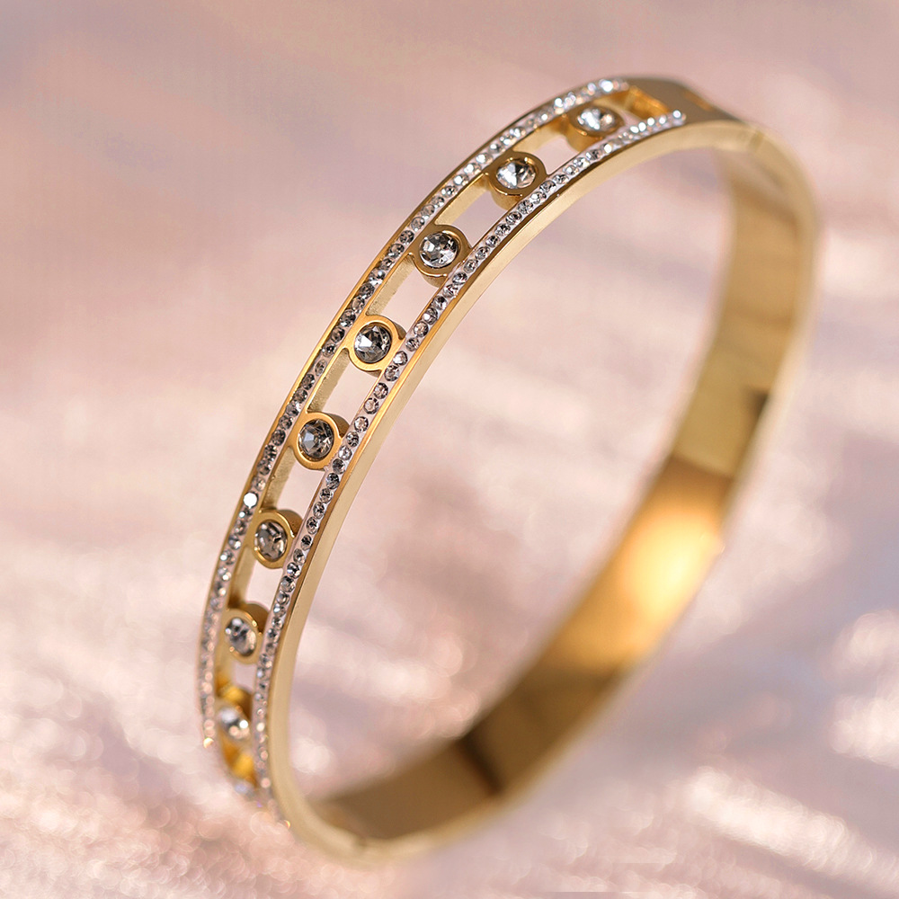 チタン鋼 ブレスレット, ゴールドメッキ, 女性用 & ライン石のある & くり抜き, 内径:約 60mm, 売り手 パソコン