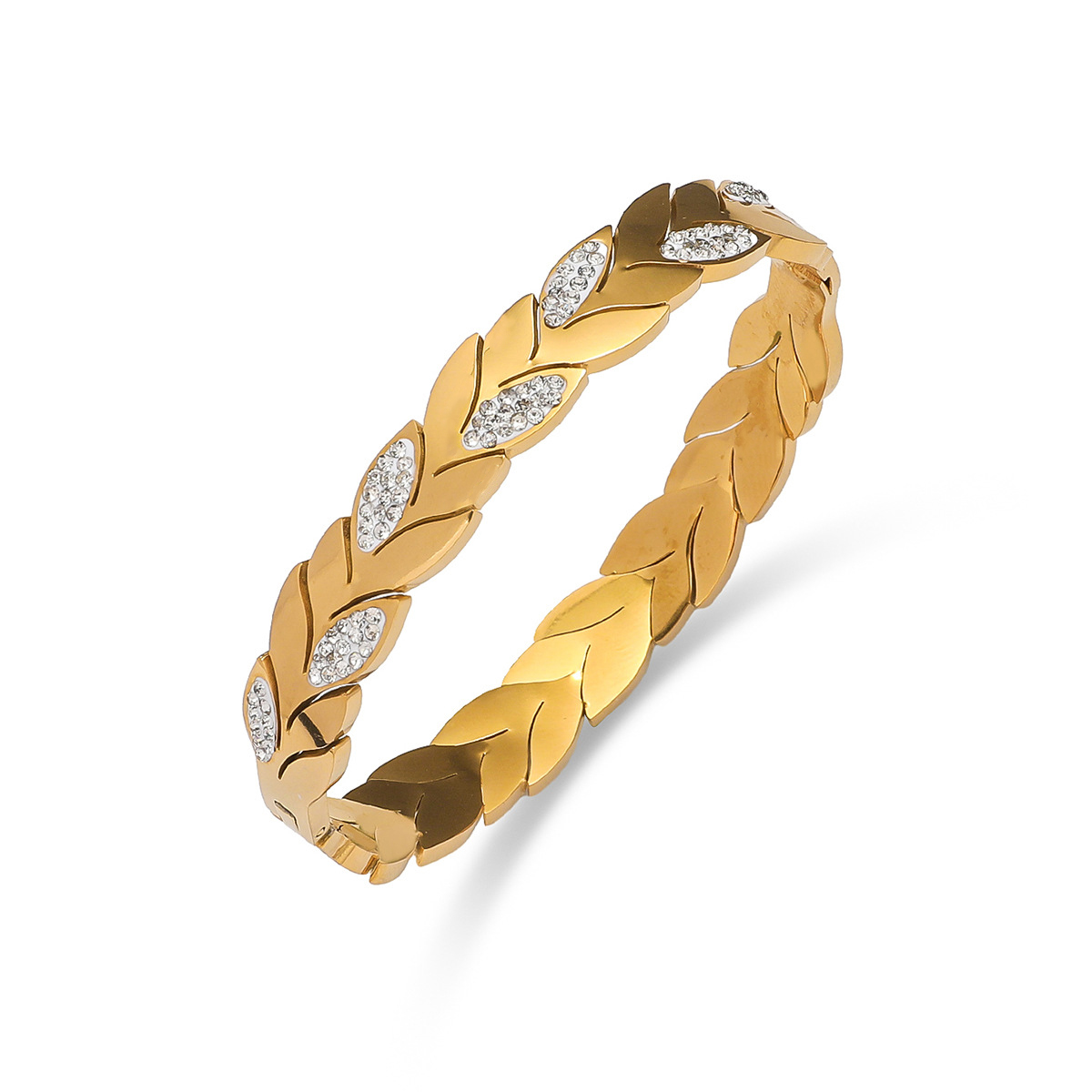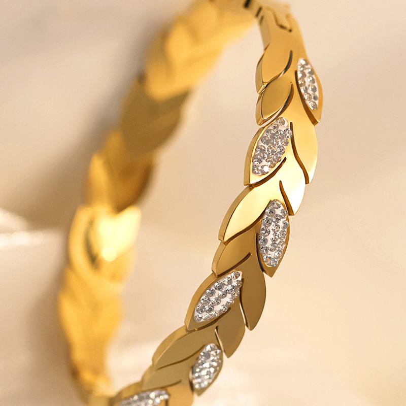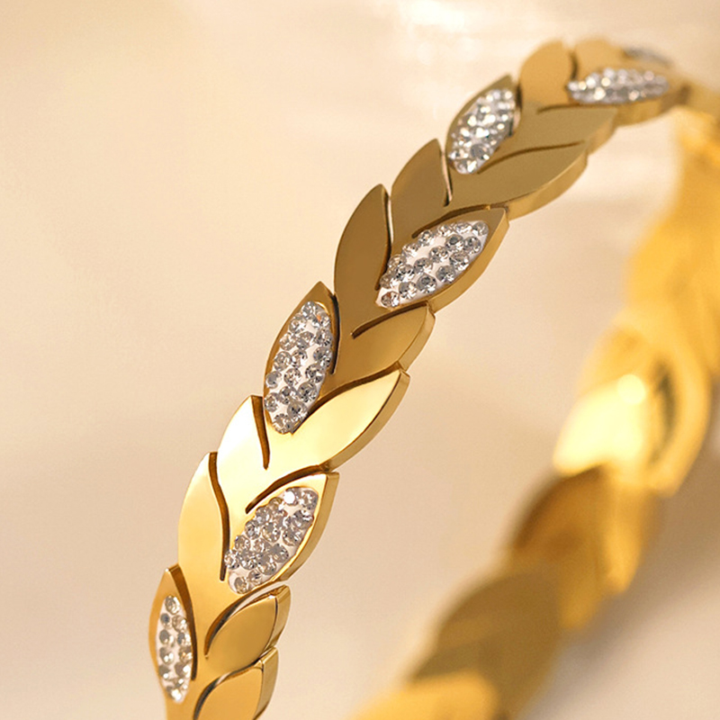 チタン鋼 ブレスレット, 葉っぱ, ゴールドメッキ, 女性用 & ライン石のある, 内径:約 60mm, 売り手 パソコン