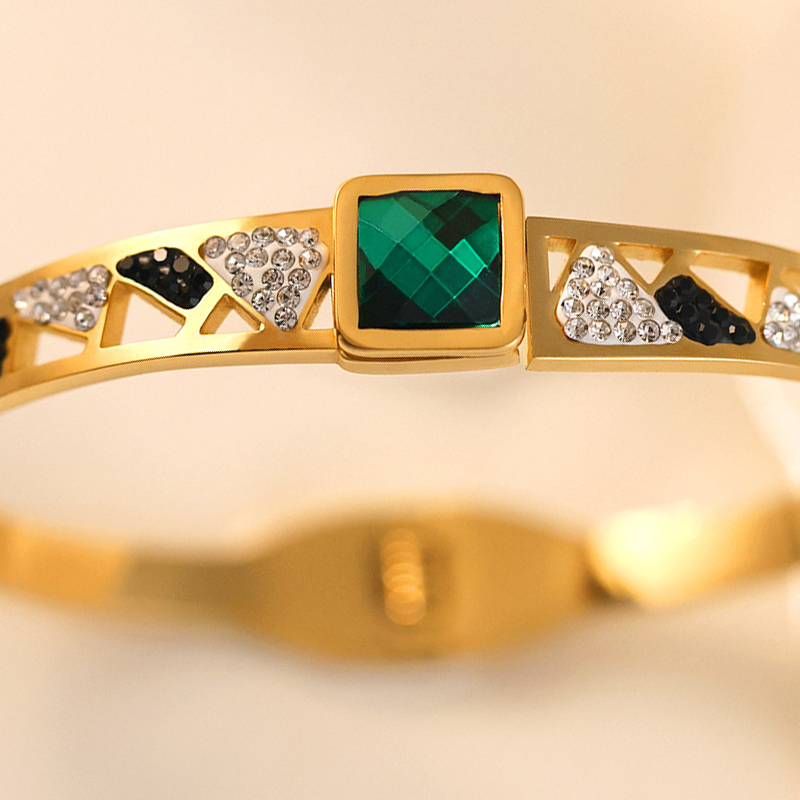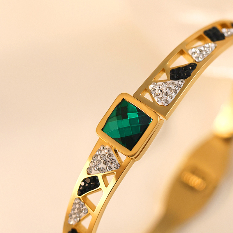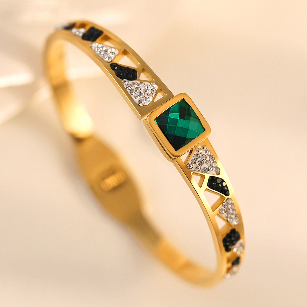 チタン鋼 ブレスレット, 幾何学パターン, ゴールドメッキ, 女性用 & ライン石のある, 内径:約 60mm, 売り手 パソコン