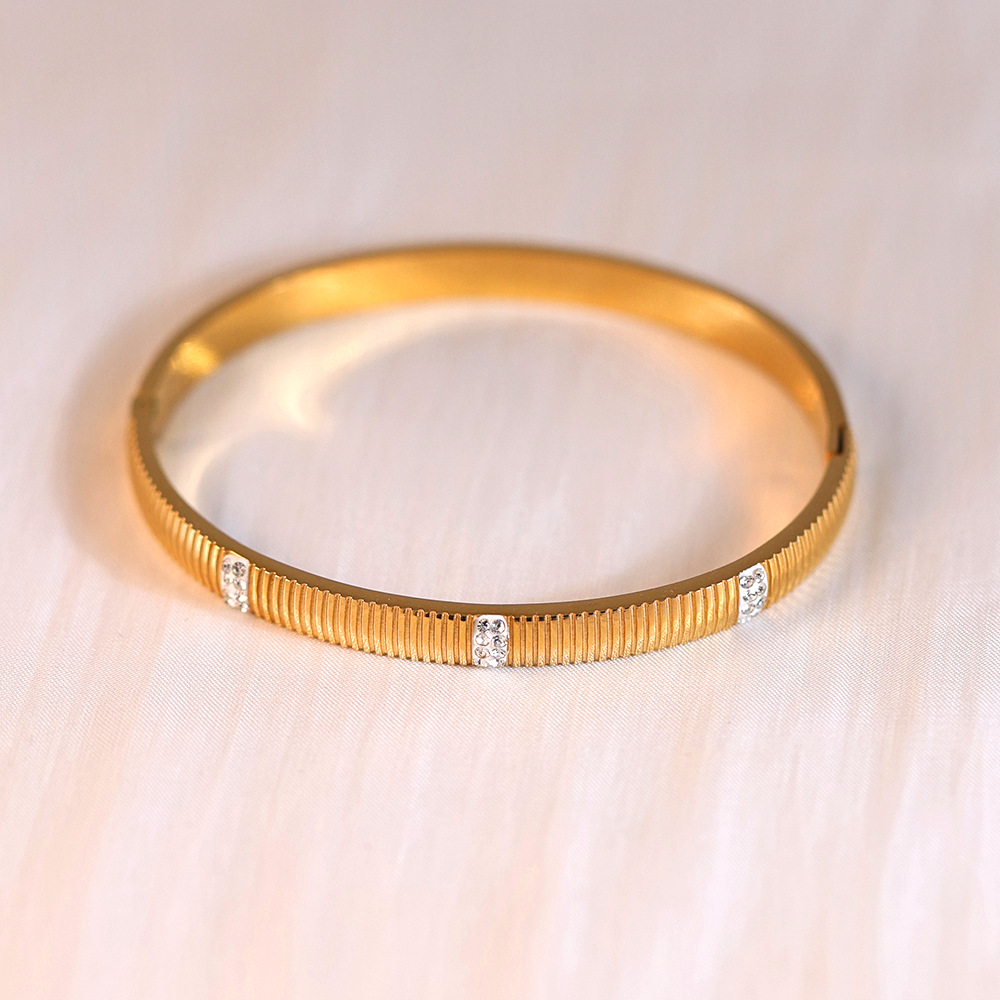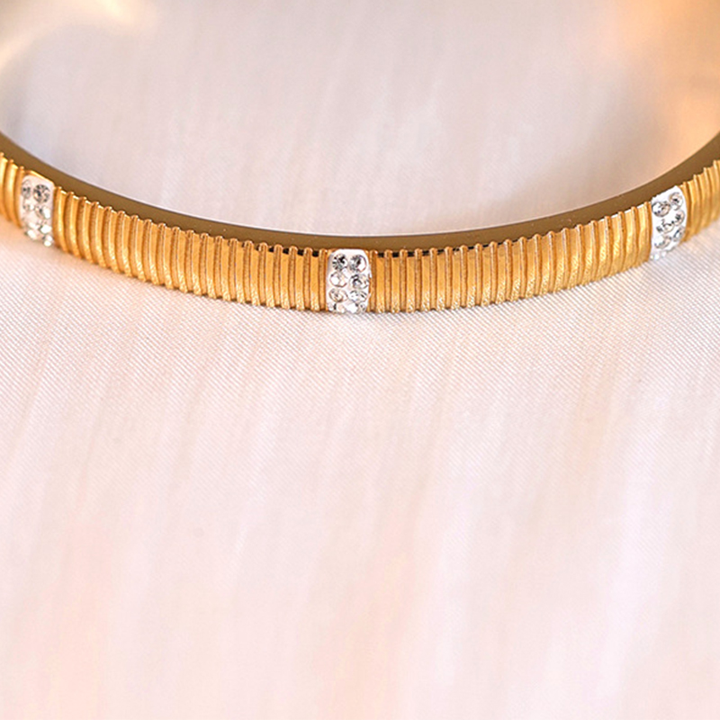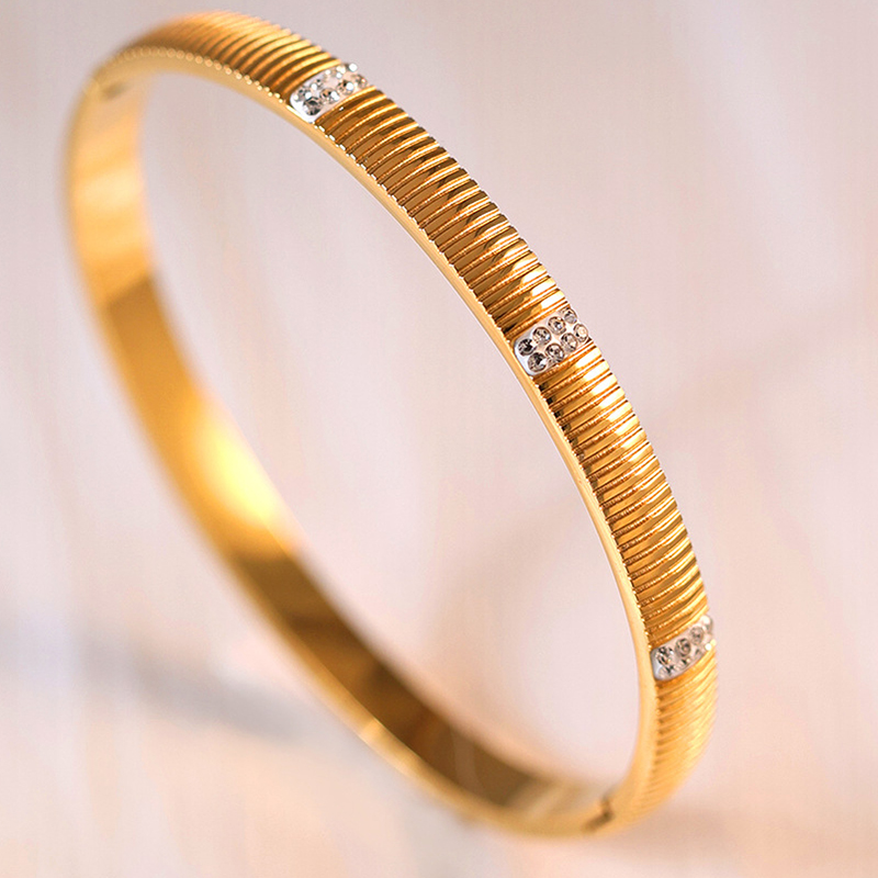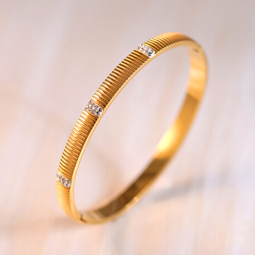 チタン鋼 ブレスレット, ゴールドメッキ, 女性用 & ライン石のある, 内径:約 60mm, 売り手 パソコン