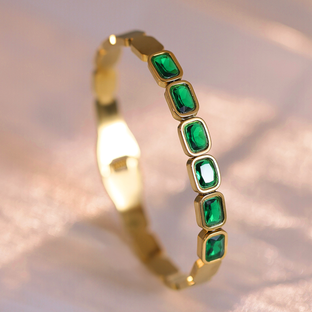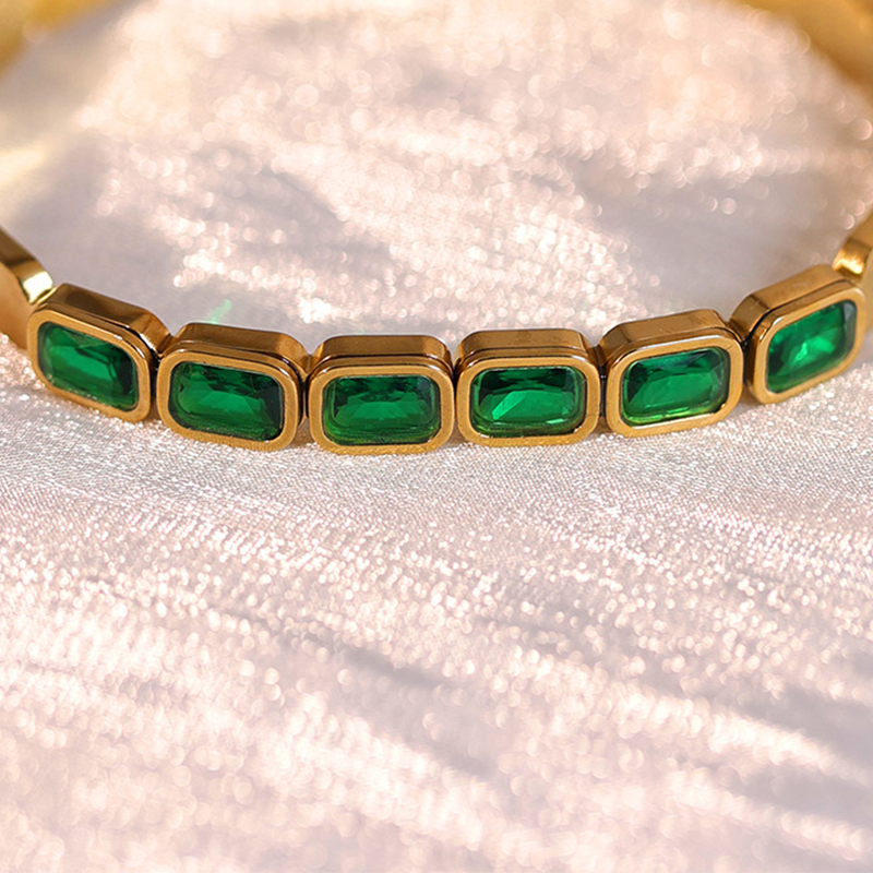 チタン鋼 ブレスレット, 幾何学パターン, ゴールドメッキ, マイクロパヴェジルコニア & 女性用, 内径:約 60mm, 売り手 パソコン