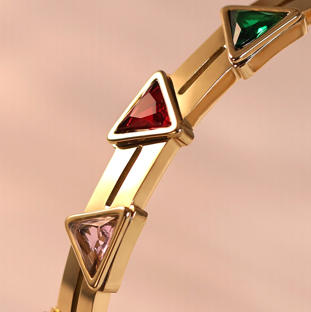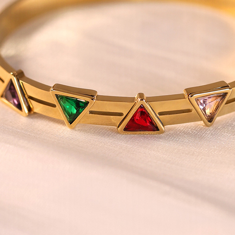 チタン鋼 ブレスレット, 三角形, ゴールドメッキ, マイクロパヴェジルコニア & 女性用, 内径:約 60mm, 売り手 パソコン