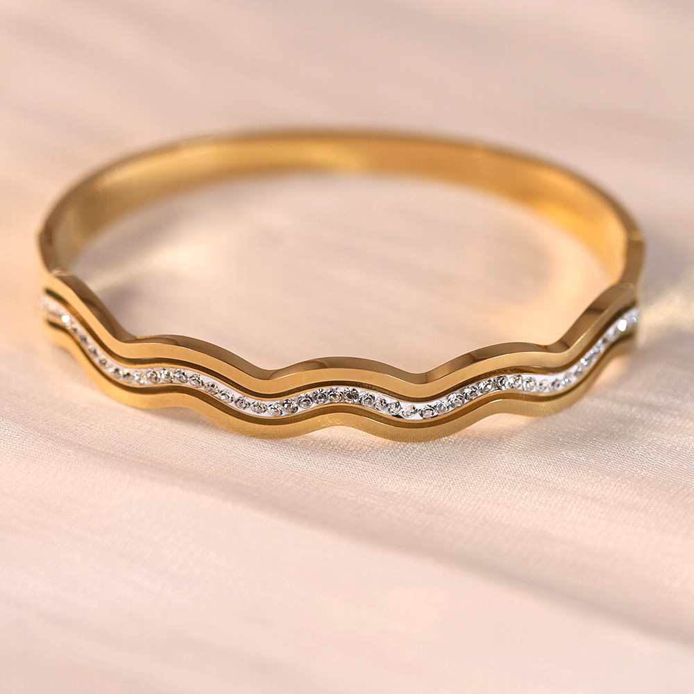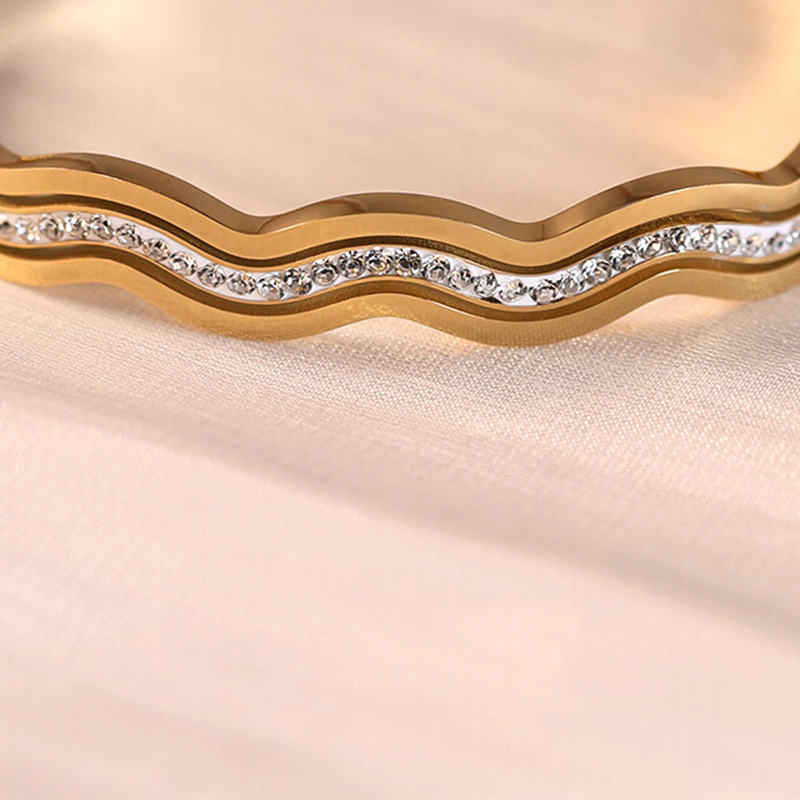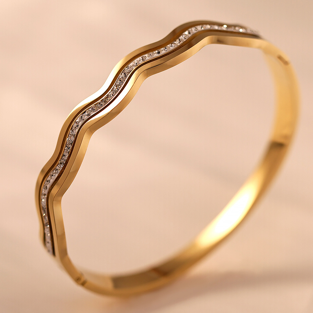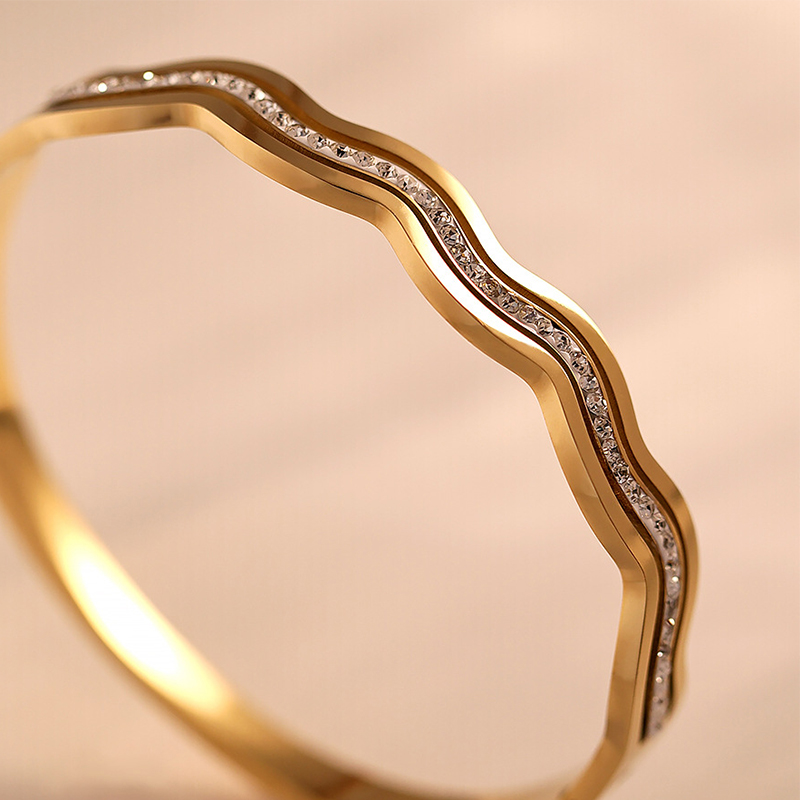 チタン鋼 ブレスレット, ゴールドメッキ, マイクロパヴェジルコニア & 女性用, 内径:約 60mm, 売り手 パソコン