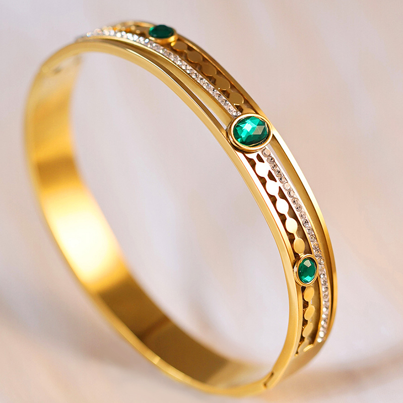 チタン鋼 ブレスレット, ゴールドメッキ, マイクロパヴェジルコニア & 女性用, 内径:約 60mm, 売り手 パソコン