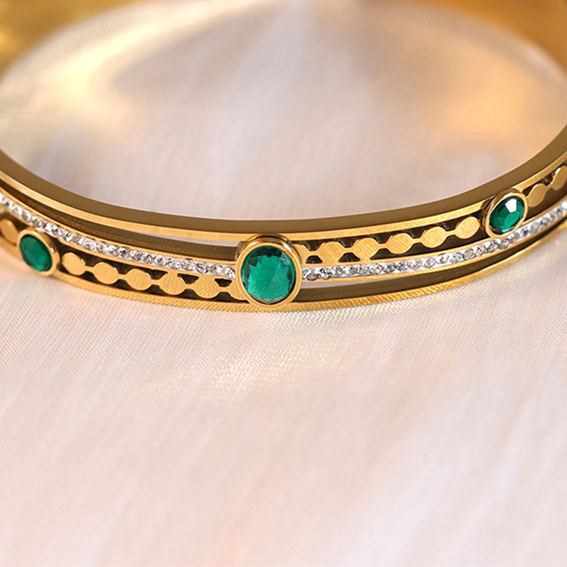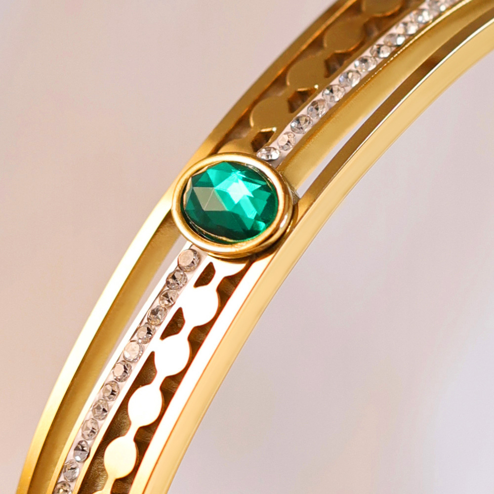 チタン鋼 ブレスレット, 卵形, メッキ, エナメル & ライン石のある, 無色 内径:約 長さ:約 7 インチ, 売り手 パソコン
