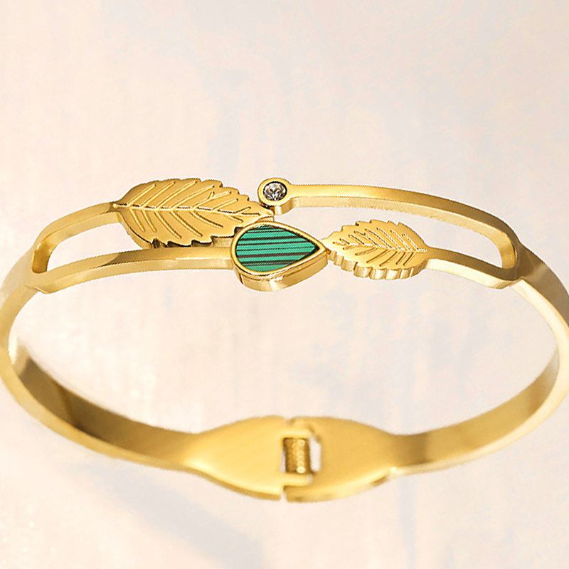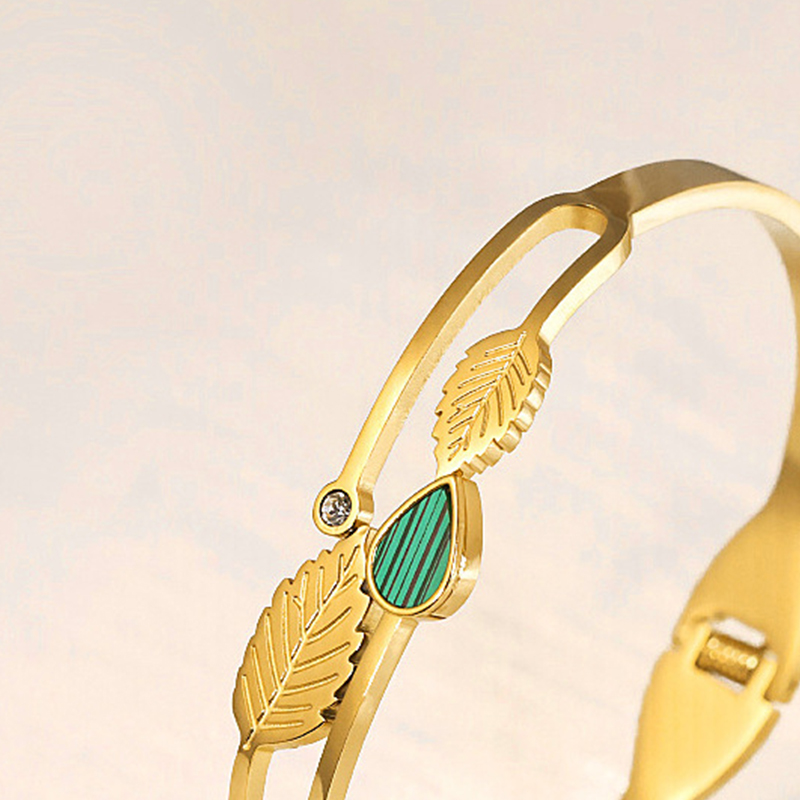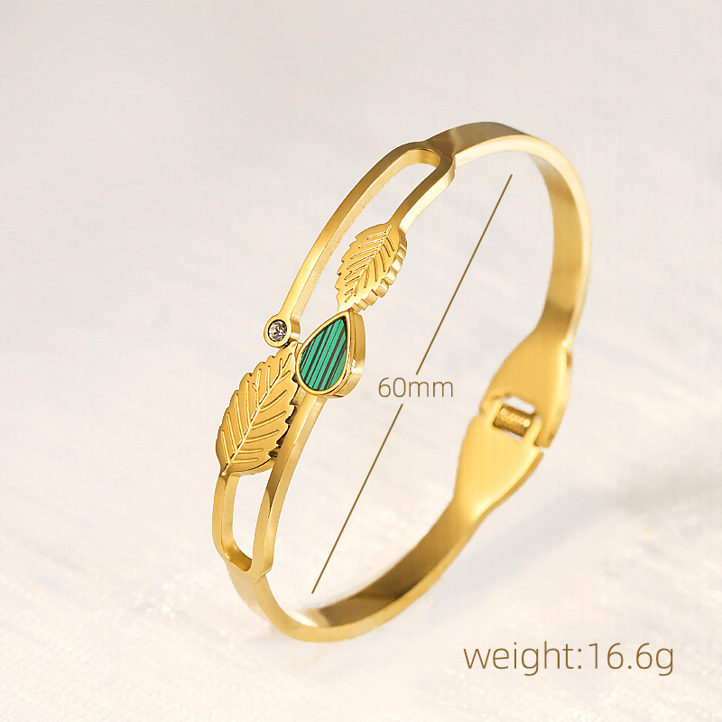 チタン鋼 ブレスレット, とともに 貝, ゴールドメッキ, 女性用 & ライン石のある, 内径:約 60mm, 売り手 パソコン