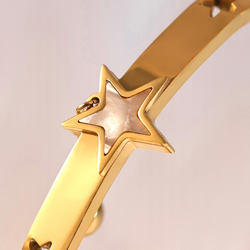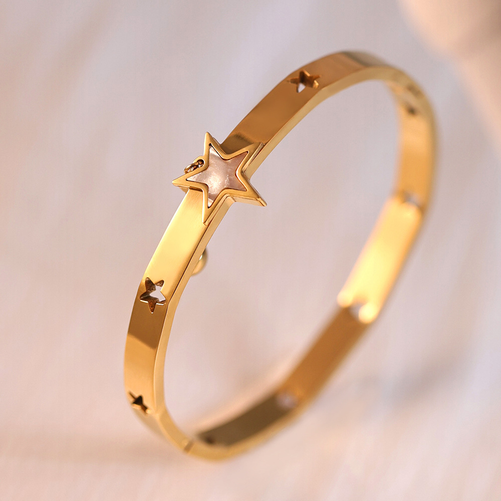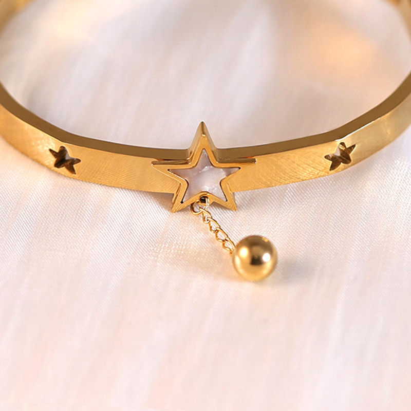 チタン鋼 ブレスレット, とともに 白い貝, 星, ゴールドメッキ, 女性用 & くり抜き, 内径:約 60mm, 売り手 パソコン
