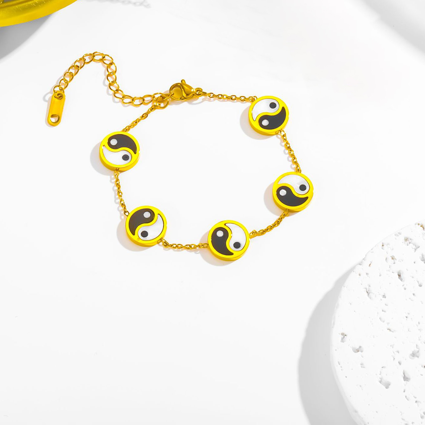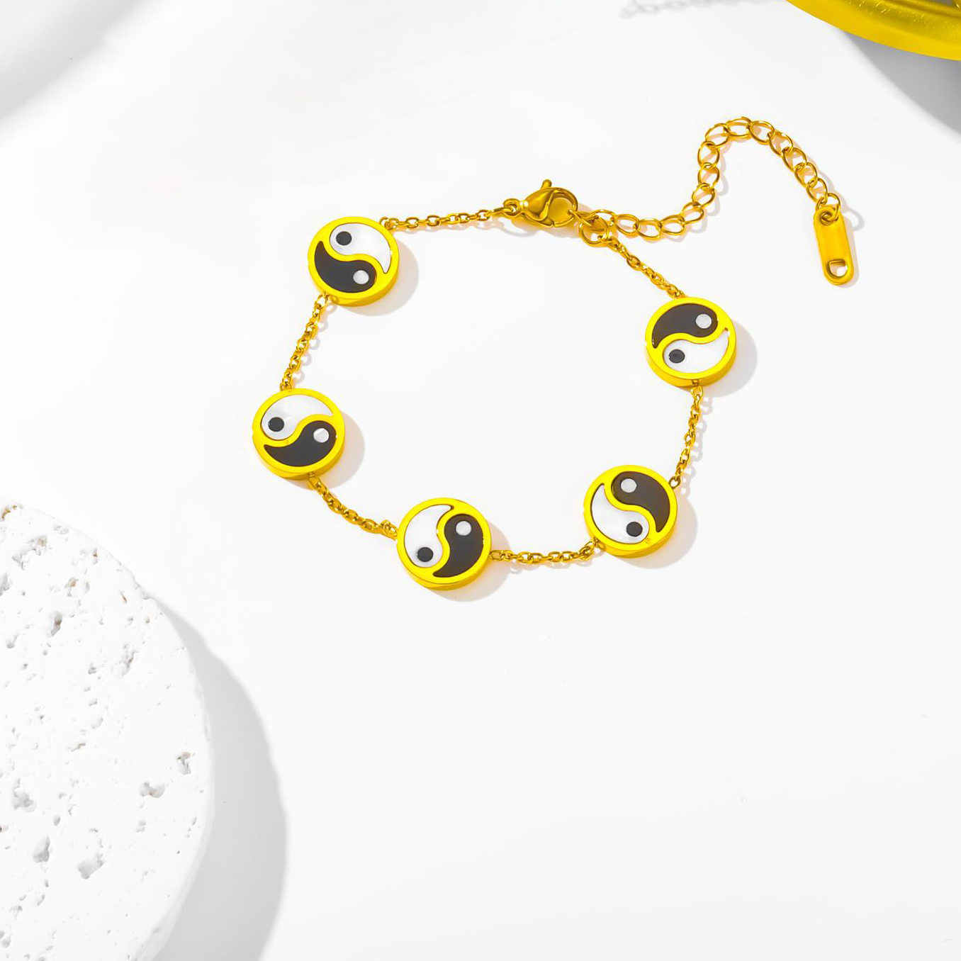 チタンスチールブレスレット&バングル, チタン鋼, とともに 黒い貝 & 白い貝, ラウンド形, メッキ, ファッションジュエリー & 女性用, 金色, 売り手 パソコン