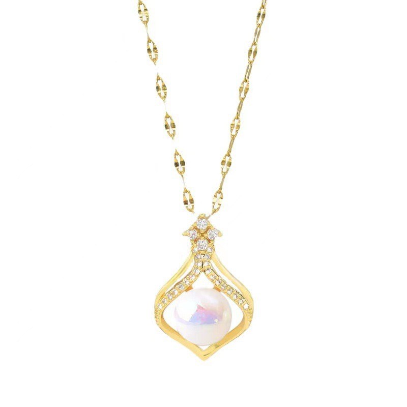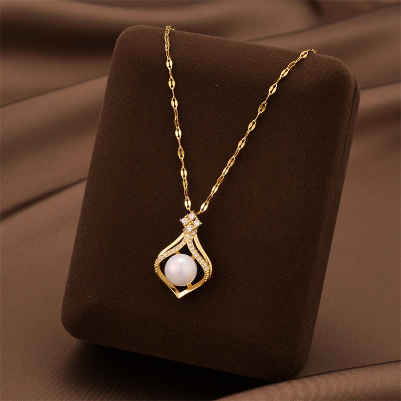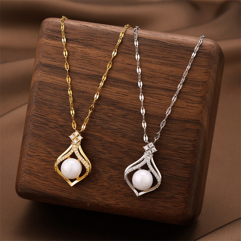 チタンジュエリーネックレス, チタン鋼, とともに ABS 樹脂パール & キュービックジルコニア, メッキ, ファッションジュエリー & 女性用, 無色, 長さ:約 41 センチ, 売り手 パソコン